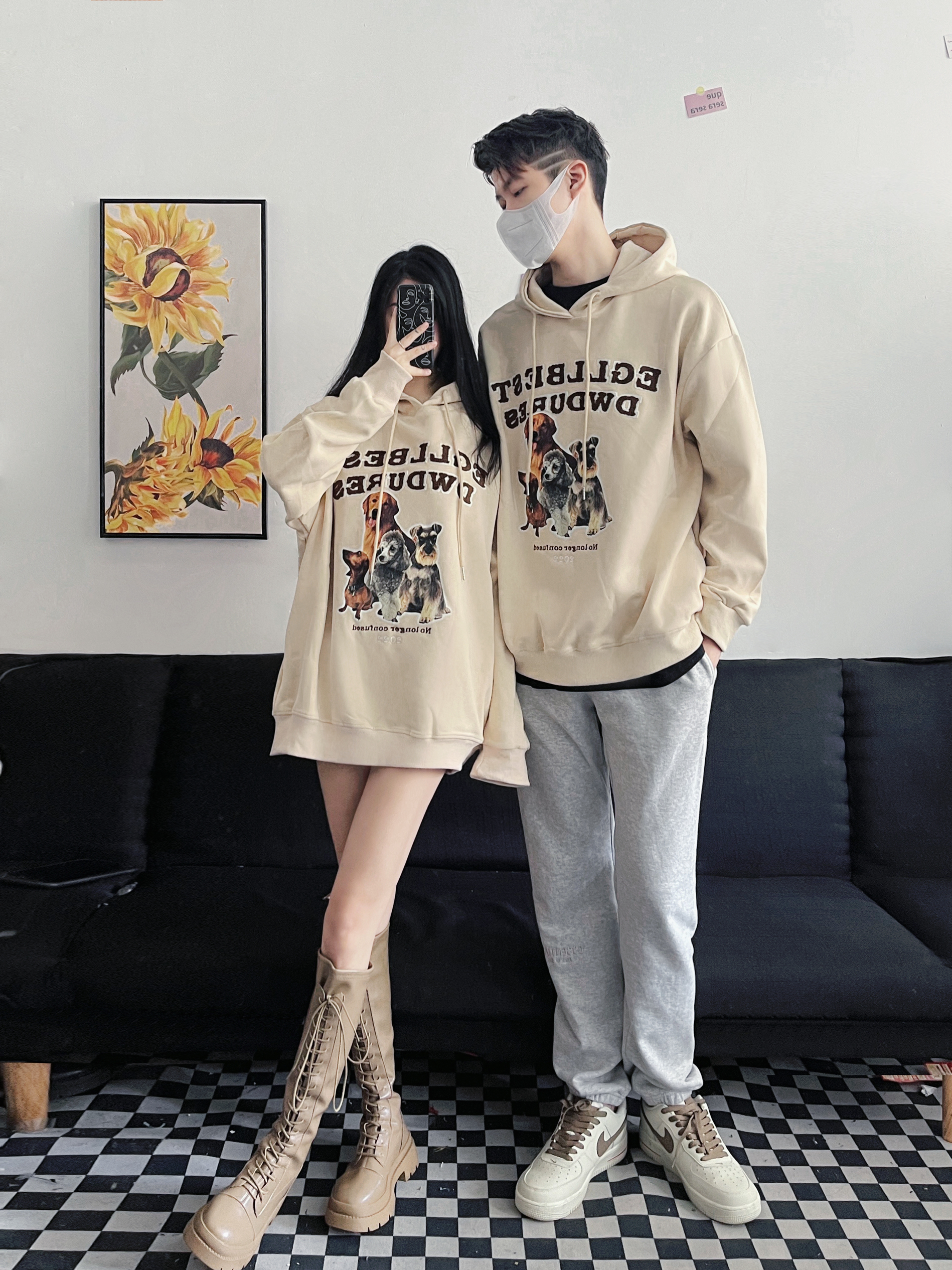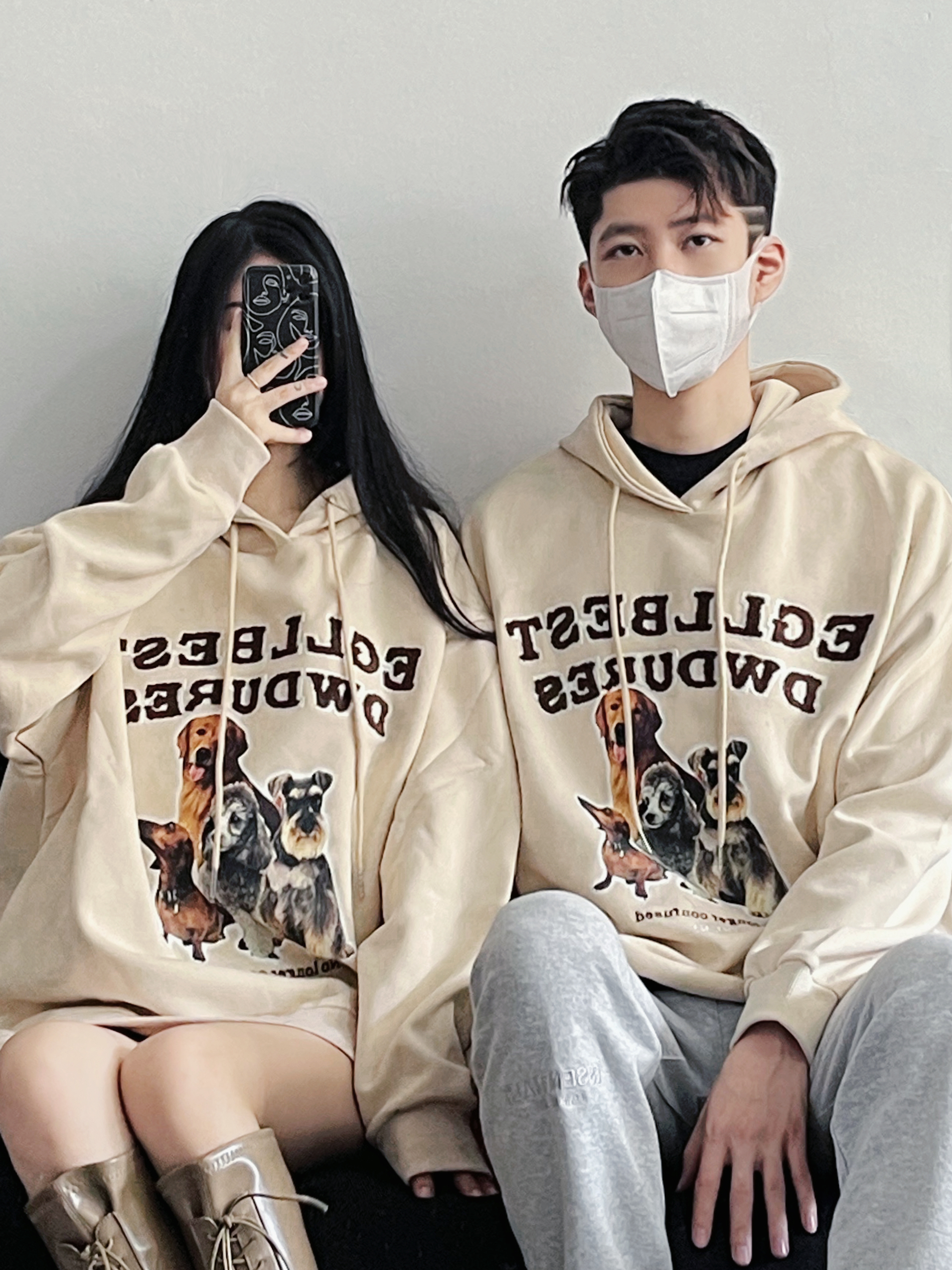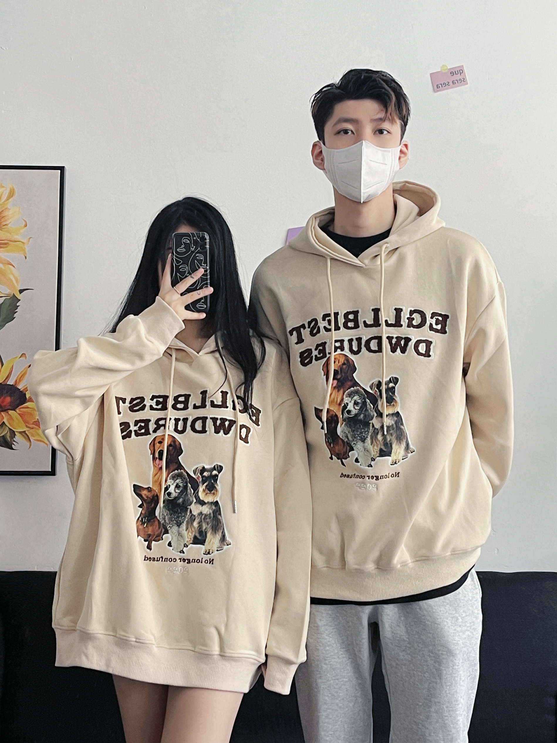 p1一款美式复古卫衣 杏色是一个蛮耐看蛮百搭的颜色~ 前面的狗狗图案超可爱 英文刺绣也很不错 而且面料很舒服 宽宽松松的oversize版型 搭配同色系的鞋子绝绝哒~ p2一款不会出错的少年感满满的套头卫衣 随意搭配个卫裤就很好看 衣服面料很轻肤 但蛮有质感滴 比较中性风运动风 男生女生穿都蛮🉑️滴