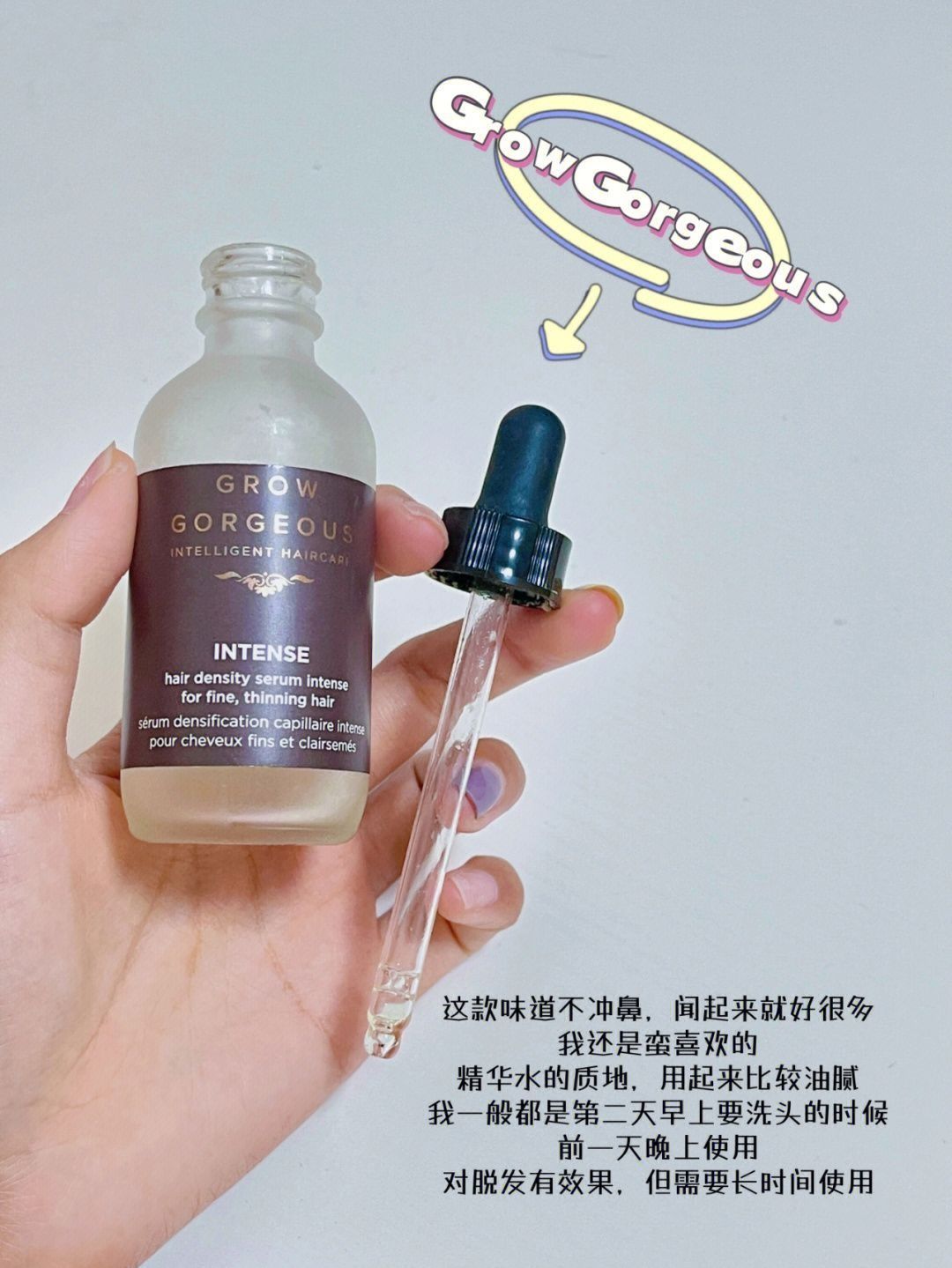 今天分享一下我的养发血泪史 因为长期的熬夜+压力大 我之前有段时间斑秃过 在后脑勺那个位置 后来去医院做了梅花针+红外线照射+蔓迪米诺地尔酊喷剂 后来治好了 又长出了新的头发 真的哭了 可能是因为经历过 所以格外的在意头发 我现在头发也是比较茂密了 跟大家真诚的分享几款 我在用的育发好物 - GrowGorgeous育发精华 这款当时也很火啊,有点小贵,但也还是入手了 气味:...