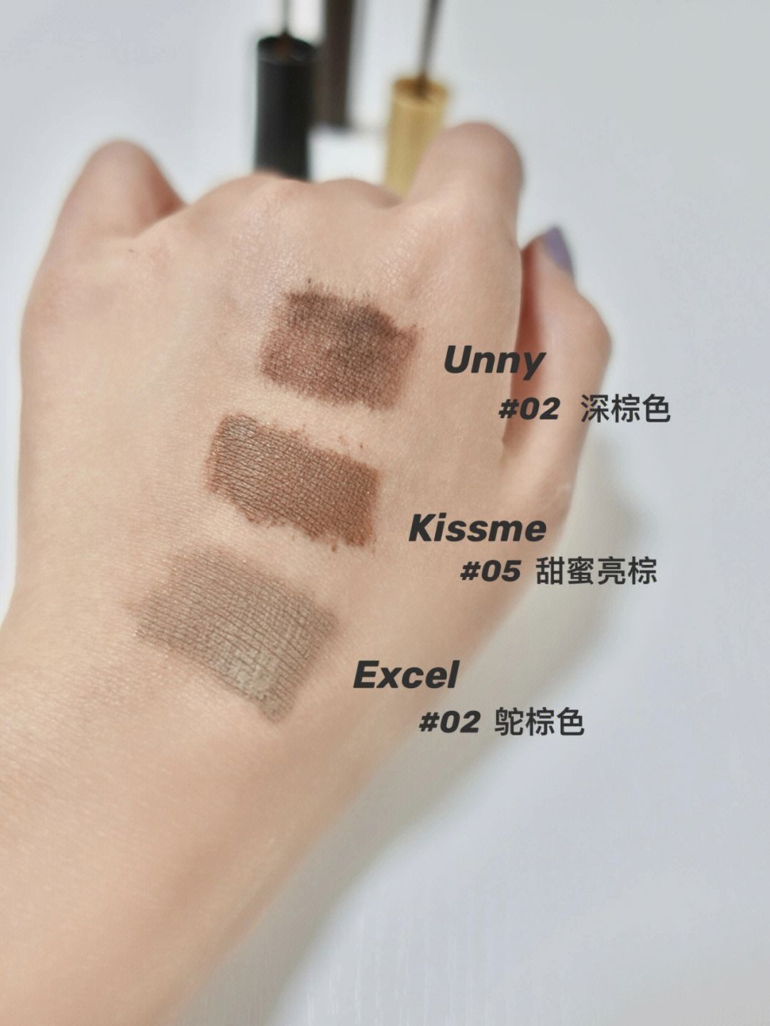 分享我自己这几年经常用的三款染眉膏~ 每一支我都很喜欢,大家在选择颜色的时候,一定要贴近自己发色,这样才自然❗️❗️❗️ ◼️ Unny #02 新手姐妹真的可以冲! 不骗人 它真的真的不结块 刷出来的眉毛 根根分明 上班出门到回家 眉毛完全不塌 定型能力是这三款最强的 唯一缺点就是 显色度稍微差了些 需要多涂几次 适合轻泰妆 - ◼️ Kissme #05 这款眉毛的...