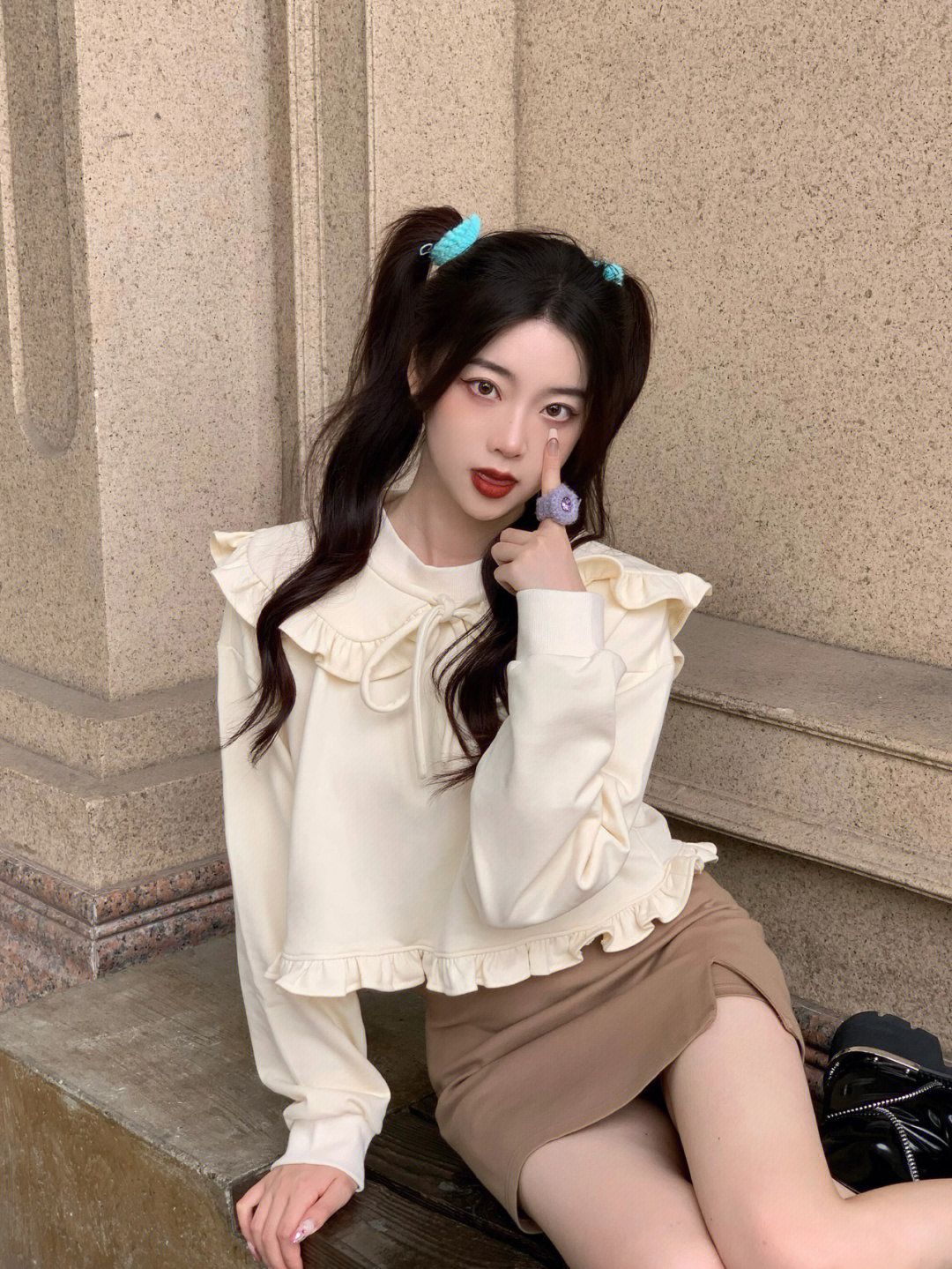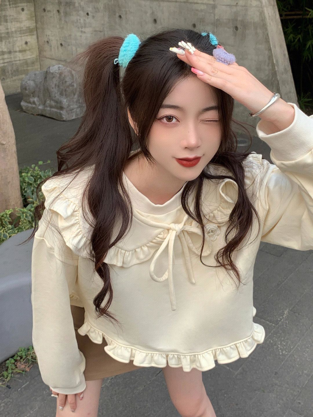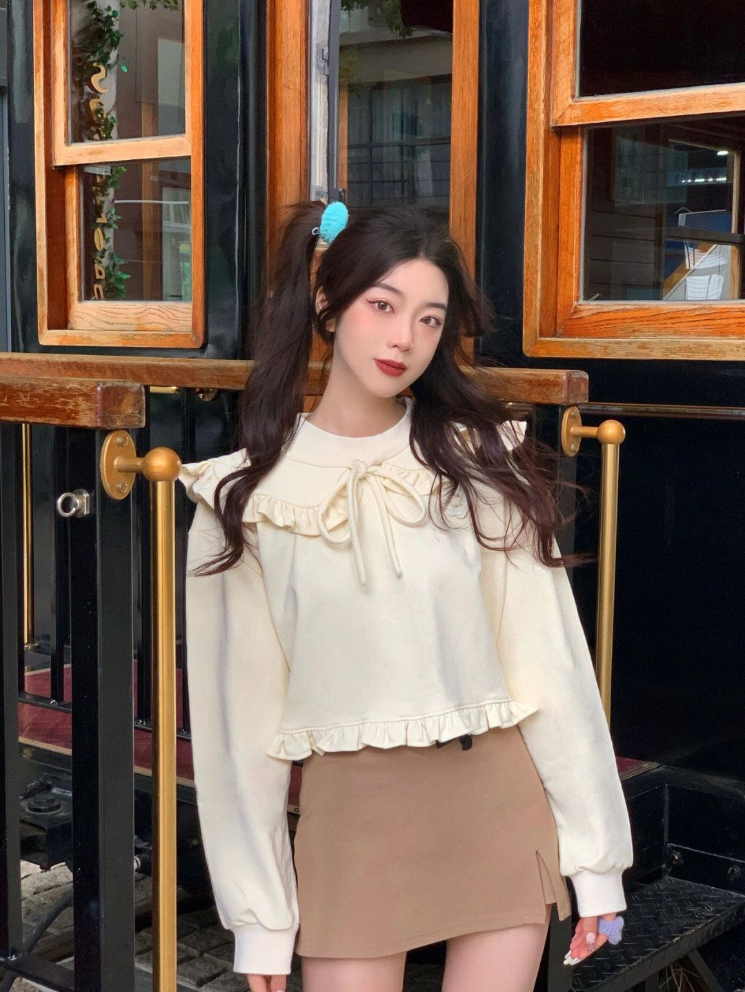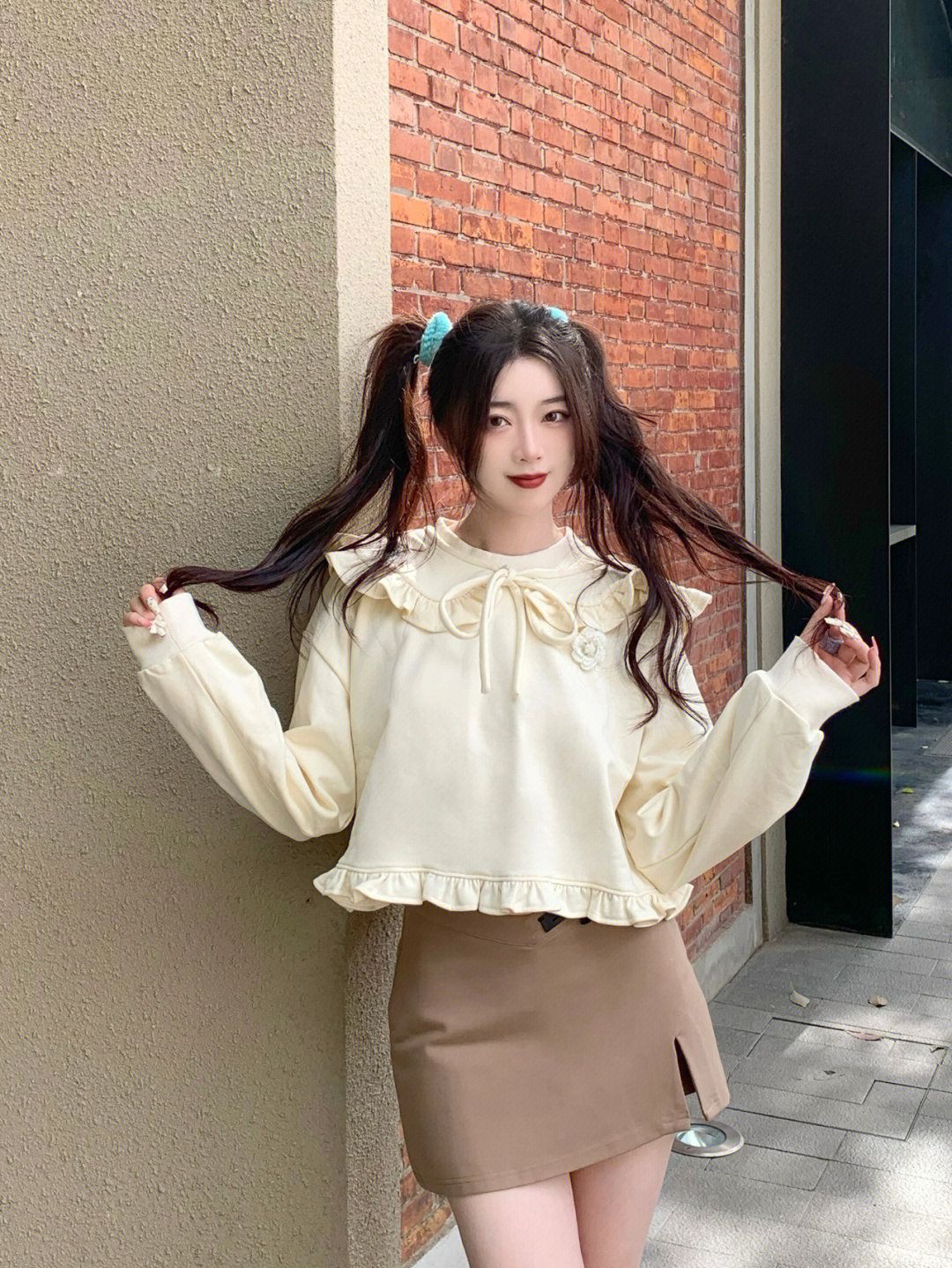 双马尾再尝试 减龄神发型 拽姐变甜妹(?) 168也可以甜美!!! - 和妹妹出门在家附近逛 今天选的娃娃领花边也好显幼噢 米白色嫩嫩的 搭配棕色的短裙裤瞬间入秋 感觉也很适合要开学的bb们 活力的大学生开学穿搭 说是高中生也不为过8(?) - 这段时间拍照开始渐渐“表情丰富” 厌倦了自己一成不变的臭脸/微笑 一些生动的生活感仿佛更喜欢捏 各种角度 仰拍俯拍都尝试看看 让照片不同一点 - OOTD...