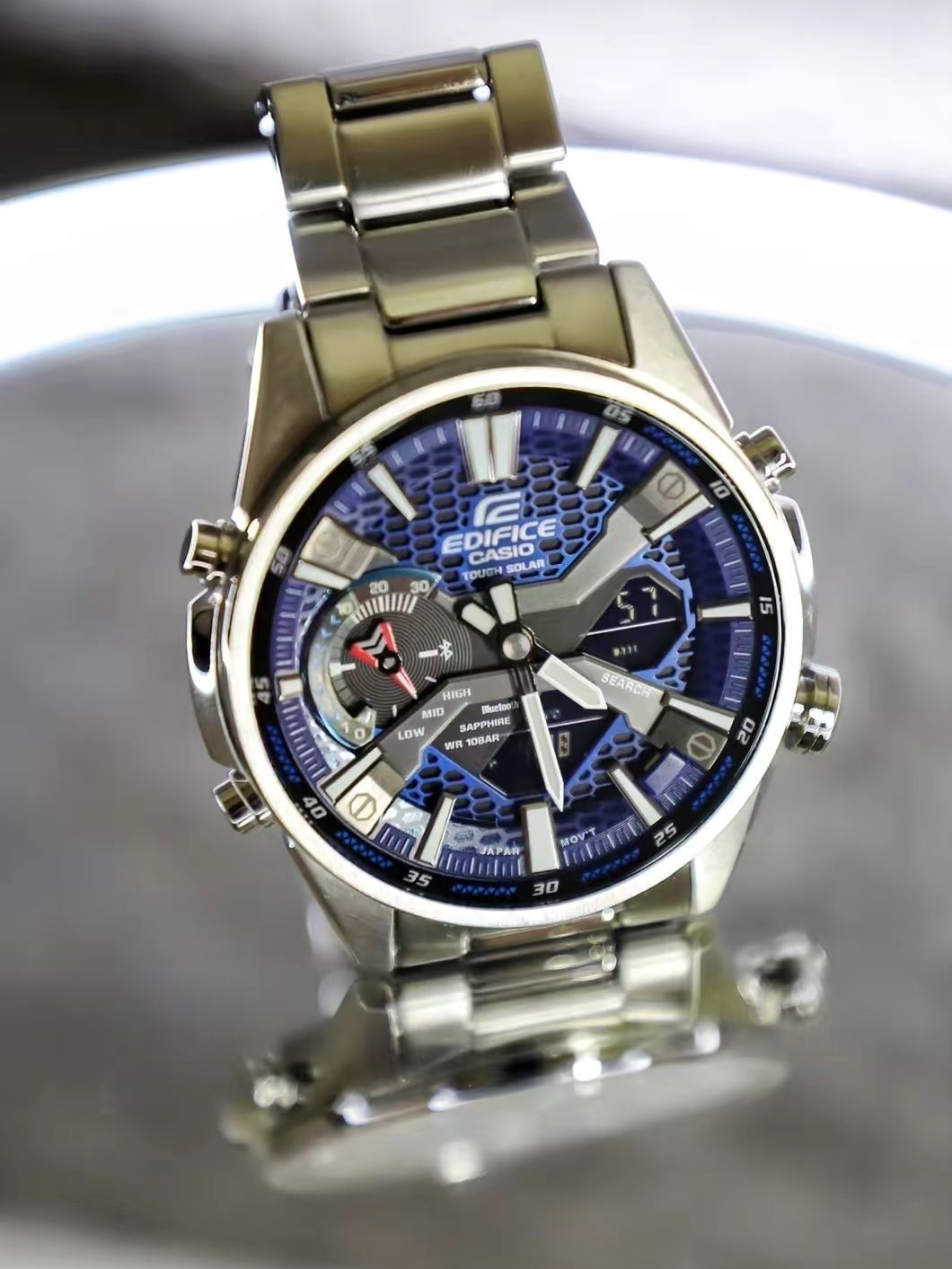 本篇笔记关联了Casio/卡西欧 EDIFICE 钢带轻薄蓝牙太阳能动力双显防水石英男士手表 银带蓝盘 ECB-S100YD-2A等商品,为用户提供真实的使用体验和购买参考。