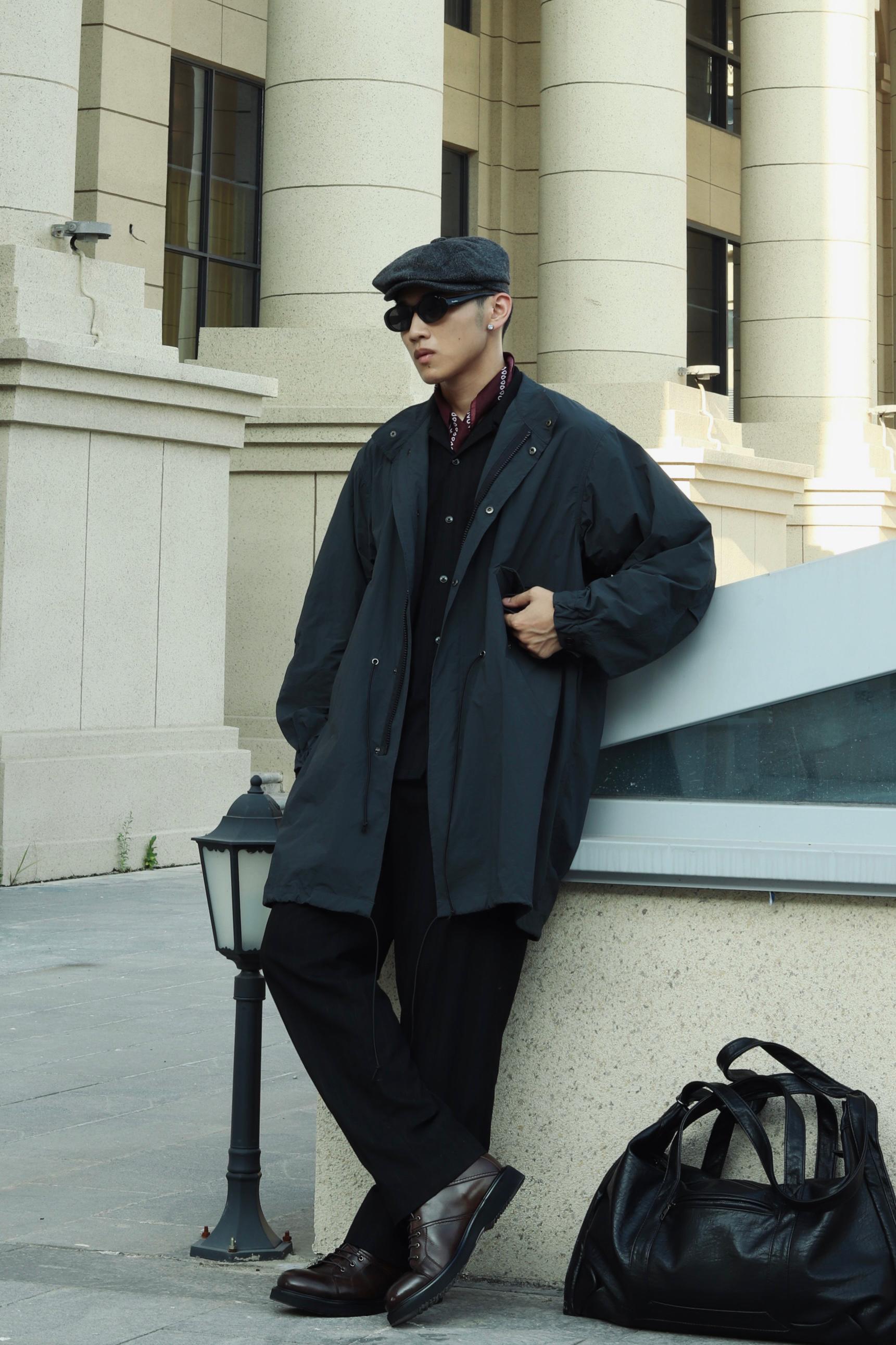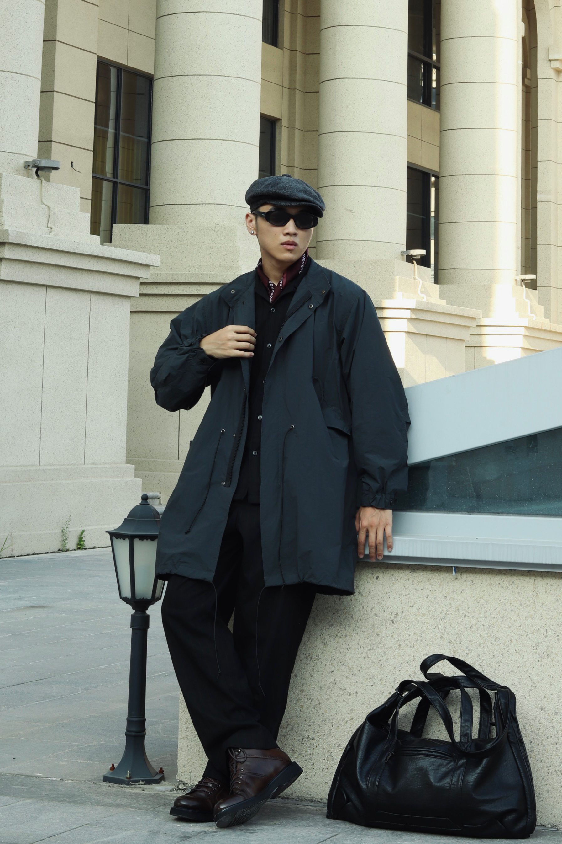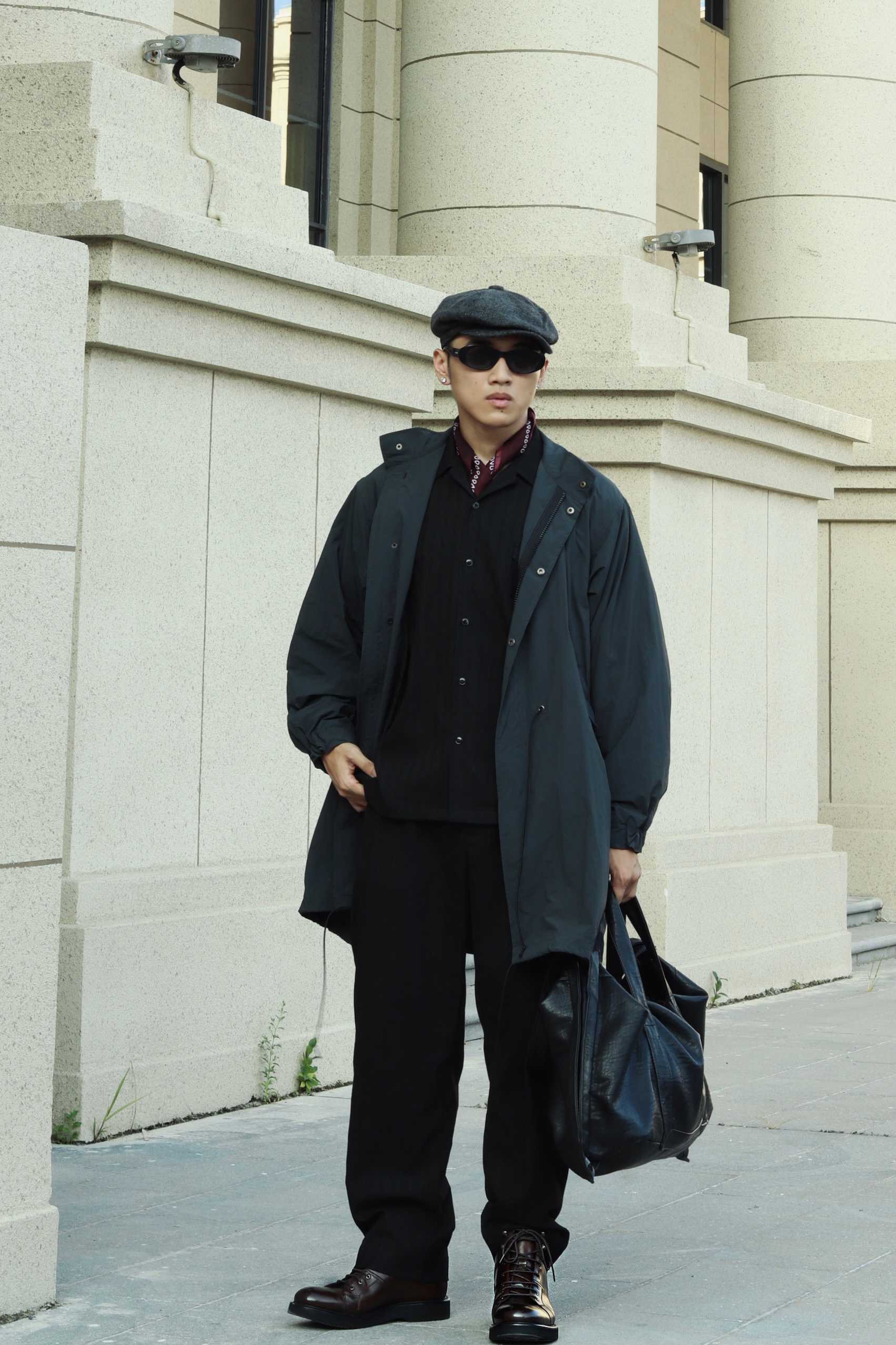 halo大家 这里是不会唱歌的章鱼章鱼哥 昨天看了汤姆哈迪演的《黑道之家》 里面的哈迪也太痞帅了 跟着电影的造型来学习一下他的穿搭 来看看我的搭配吧 一身黑金西装西裤做内搭 外穿一件黑灰色风衣 男人的马丁靴就是应该皮质感更足一些 鞋子来一双法国都彭的厚底工装马丁靴 咖啡色马丁靴复古味道就拉满了 而且这样皮面的光泽真的很有那味儿 都彭也算是承载了很多英法硬汉的属性了 当然马丁靴就要搭配贝雷帽 就很...