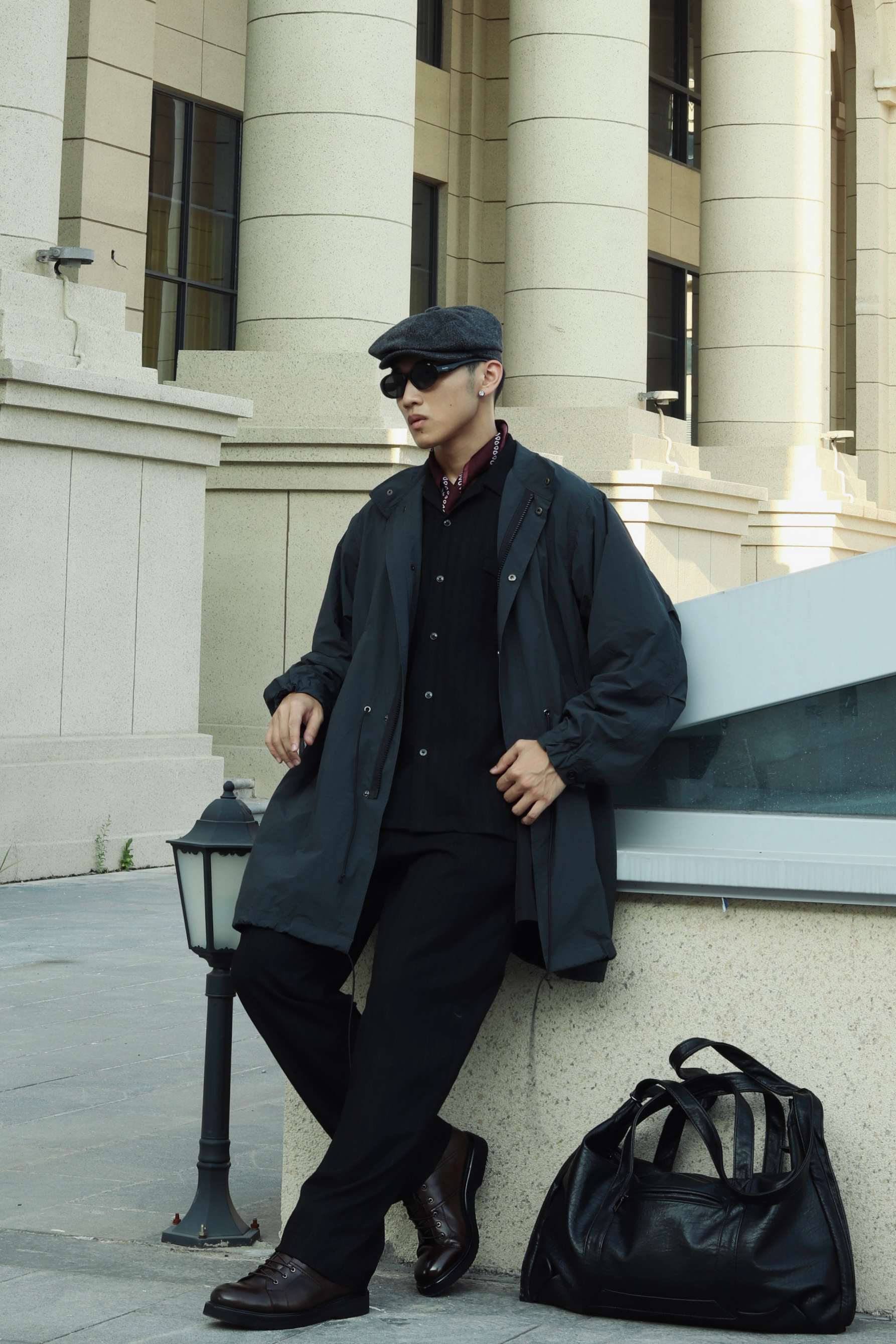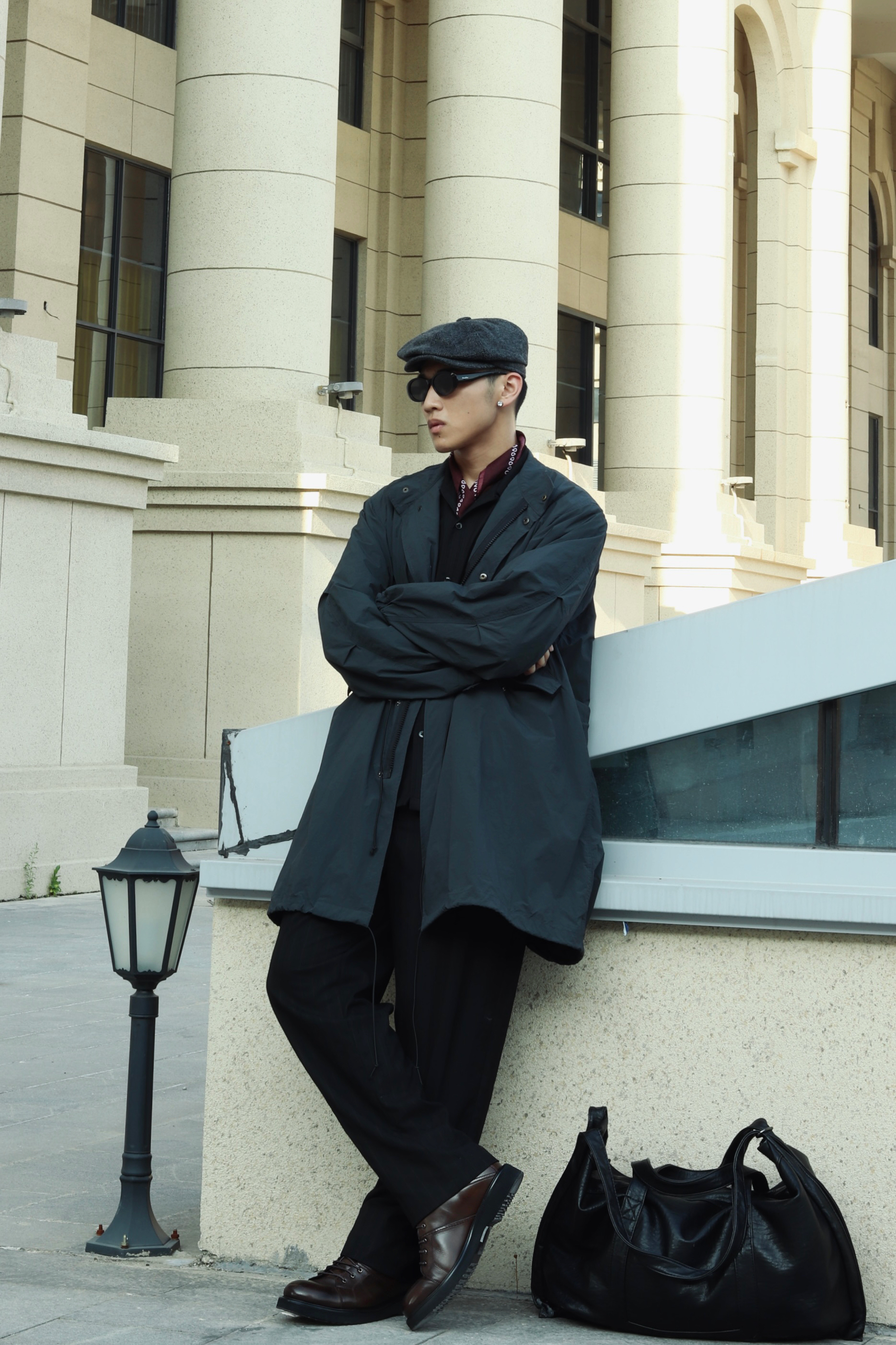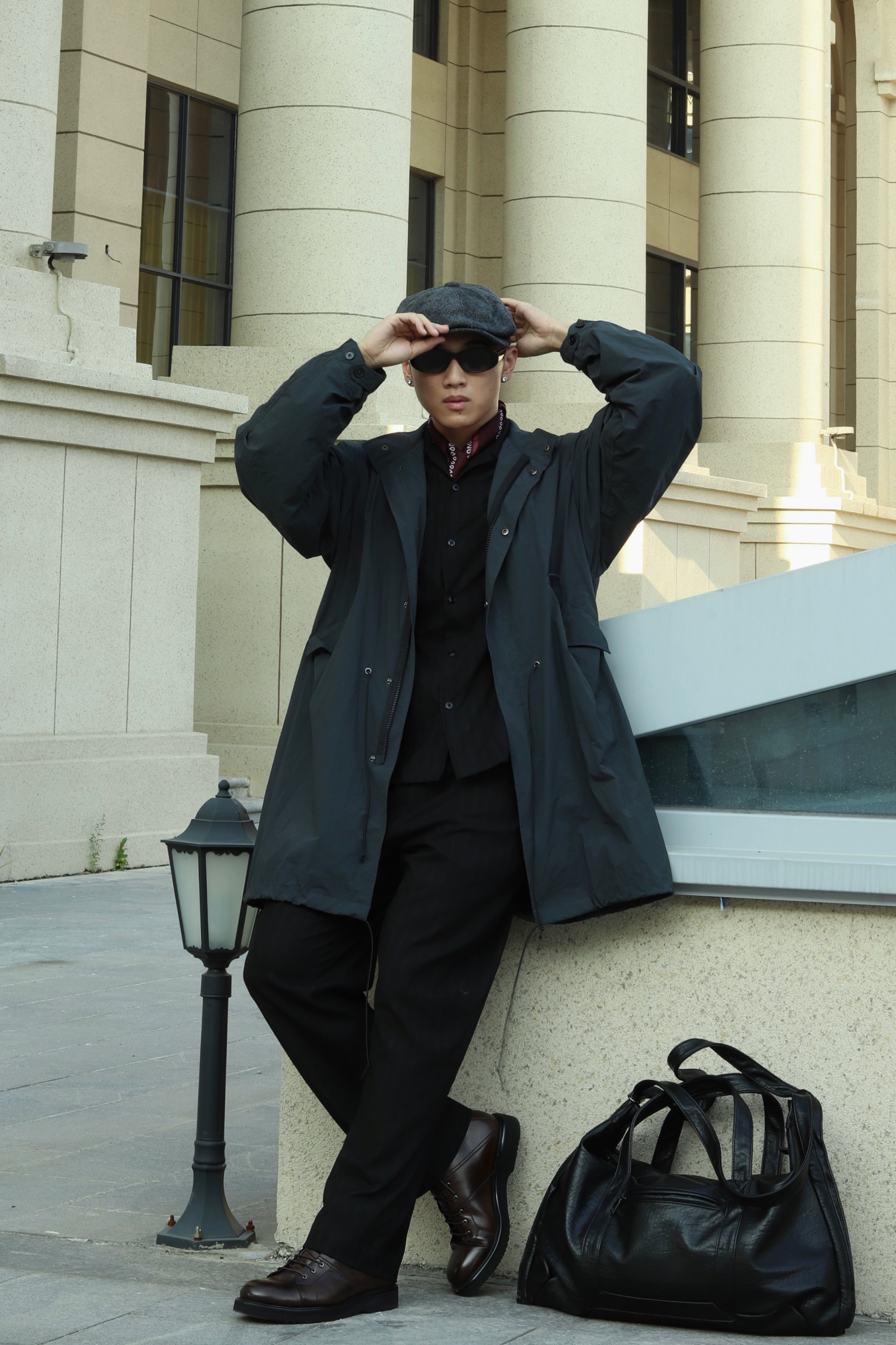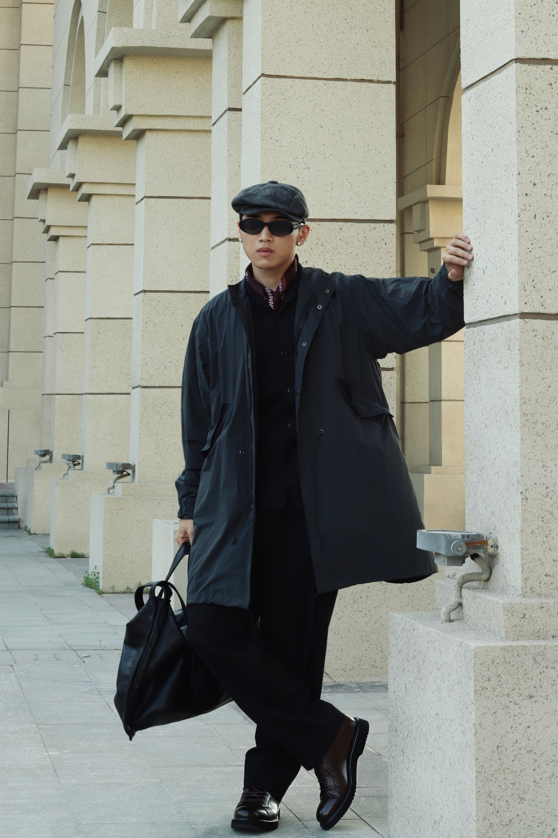 halo大家 这里是不会唱歌的章鱼章鱼哥 昨天看了汤姆哈迪演的《黑道之家》 里面的哈迪也太痞帅了 跟着电影的造型来学习一下他的穿搭 来看看我的搭配吧 一身黑金西装西裤做内搭 外穿一件黑灰色风衣 男人的马丁靴就是应该皮质感更足一些 鞋子来一双法国都彭的厚底工装马丁靴 咖啡色马丁靴复古味道就拉满了 而且这样皮面的光泽真的很有那味儿 都彭也算是承载了很多英法硬汉的属性了 当然马丁靴就要搭配贝雷帽 就很...