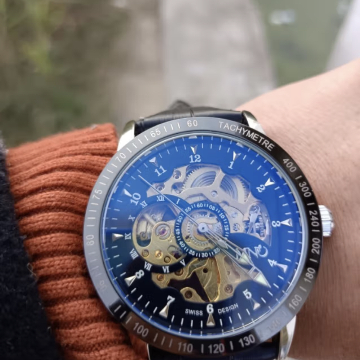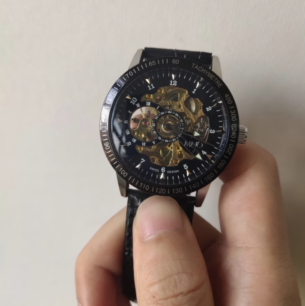 手表表盘大气品档次镂空的设计时尚又美观,底盘也采用玻璃的盖子让手表里面的机芯展现在眼前.里面每一个旋转的齿轮多能清晰的看见这样的设计非常的博人眼球。手表走时精淮,只要在佩載时手有一定的运动量就能给机械表提供动力,手表还有夜光功能在黑漆漆的夜里也能看清时间,大大的解决了手表在夜间看不见时间的烦恼。 图源网络侵删