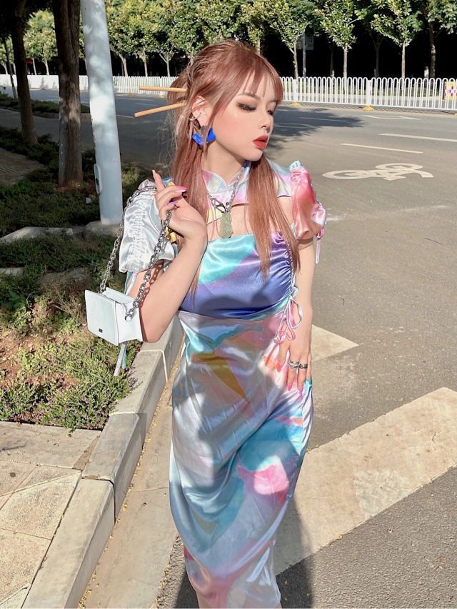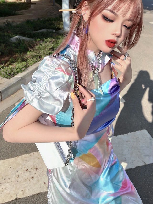 我也来尝试国风穿搭了 旗袍一整个爱住! 和我新指甲简直绝配 配饰也有小心机你get到了吗! 微胖的mm不要害怕旗袍 会打开新世界店大门 学着扎了一个新发型 ~插上筷子有内味了嘻嘻 发色是施华蔻蜜糖醇棕 粉棕色这个色我可能染了四次了 泡泡染发剂的缺点就是太容易掉色了 洗两次就掉黄了 但是总体感受还是施华蔻的泡泡染最不伤发 秃子亲测 最近换发色了 可以期待一下新发色~(^з^)-☆ 耳环:EEKE 包...