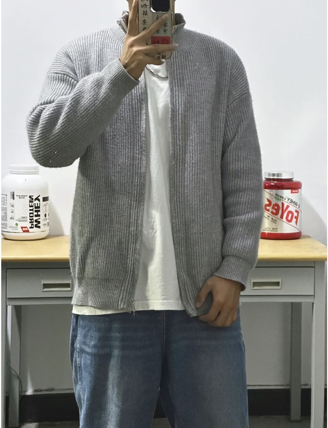 ✔️这件灰色毛衣真的男女都可以驾驭,多种穿搭,风格也是多种多样,可以搭配任何风格,可酷可温柔。 ✔️作外套可以里面穿打底,简约高级;也可以束起拉链,极简的风格非常衬托气质和颜值噢~和朋友出门可以简单搭配,随心穿都好看~ 👔TGNS