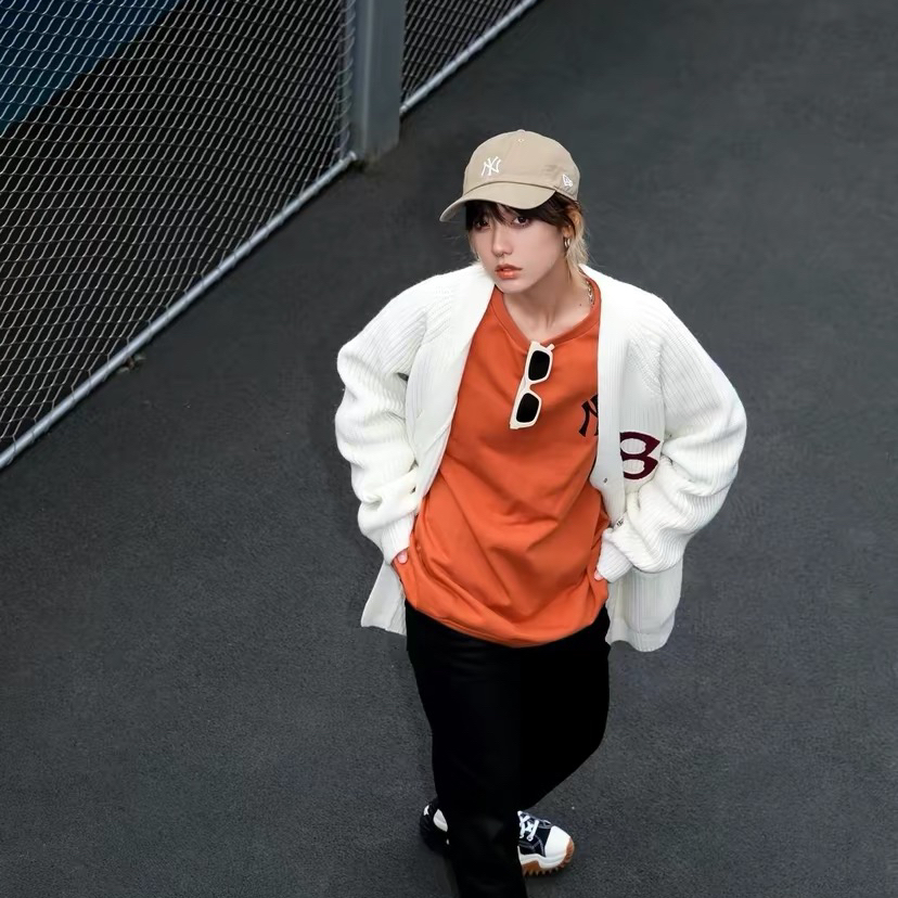 🌕秋冬阴阴的天需要一点亮色来增加活力 看起来就很暖的大毛衣再适合不过了 🌔米色毛衣外套十脏橘色卫衣十咖色棒球帽b同色系单品怎么搭都很和谐就对了 显白又有活力 街头氛围感拉满。 🌓搭配牛仔裤和颜色呼应布鞋 一套有少年感的无性别穿搭 我太爱了 🌘毛衣:NewEra 🌒帽子/卫衣:NewEra
