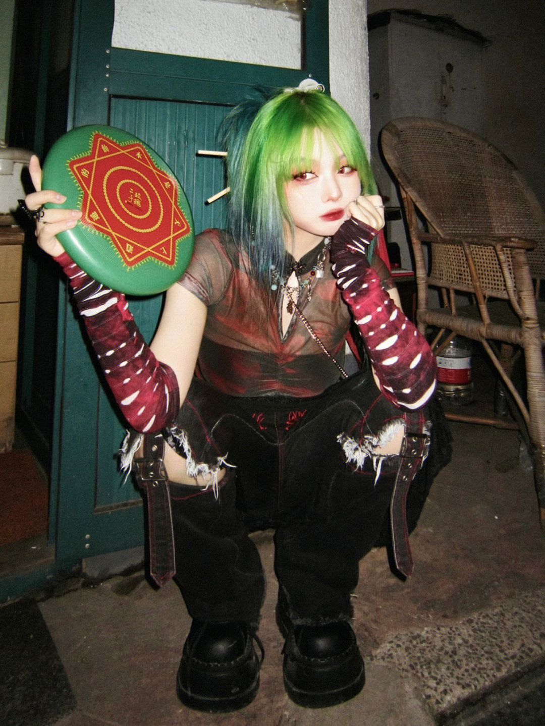 这位客官 上菜咯~ 游戏里在中华街工作的新中式点菜员? 真的好喜欢国风的元素 尝试做了一些混搭感觉还不错! 在外面拍照好多叔叔阿姨以为我cos某个游戏npc嘻嘻 这个嗖嗖的飞盘其实是MT外卖x二手玫瑰的联名飞盘 偶尔兼职在中华街送外卖也不错哈哈~ 红配绿真的蛮好看的 绿色头发我也是狠狠爱了 真的超级有意思灵感是以东北手绢做的 so cool! #EGIRL #新中式穿搭 #国风 #飞盘外卖 ...