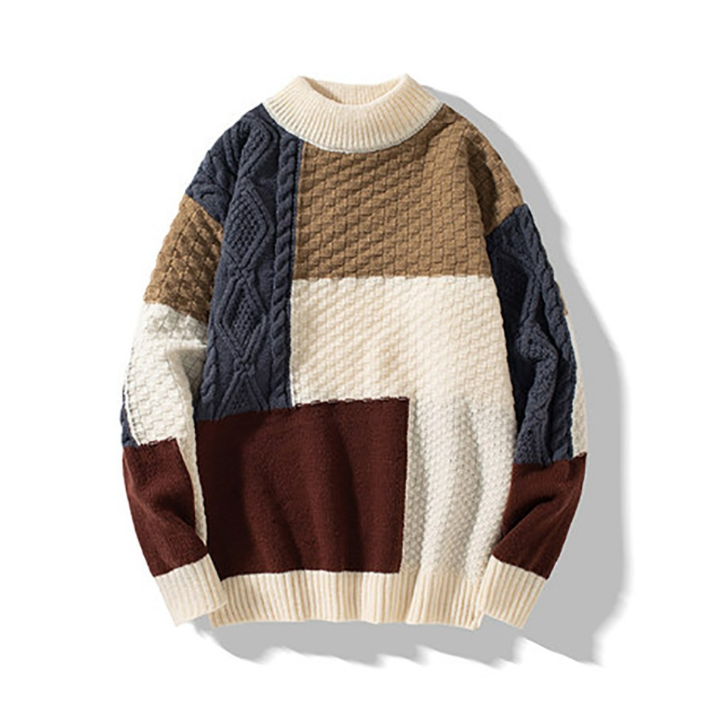 大色块撞色嵌花设计,大气出彩,时髦又有新意。 每个色块的位置和比例都颇有巧思。双层罗纹圆领设计,恰到好处的漏出颈部线条的同时,立体挺廓有型。男生穿毛衣立显温柔,拼色设计又颇有个性,秋冬穿上它,时尚与保暖性兼顾。 (图片来自网络,侵删)