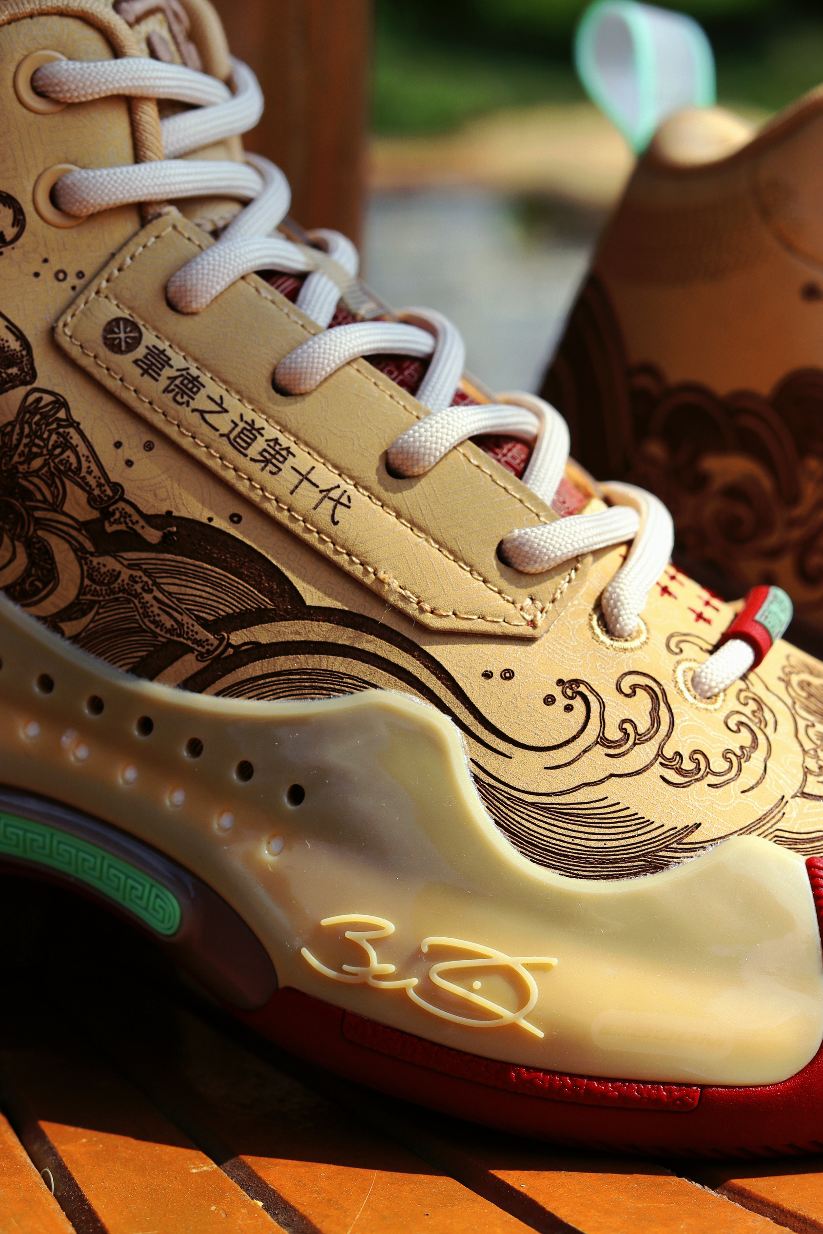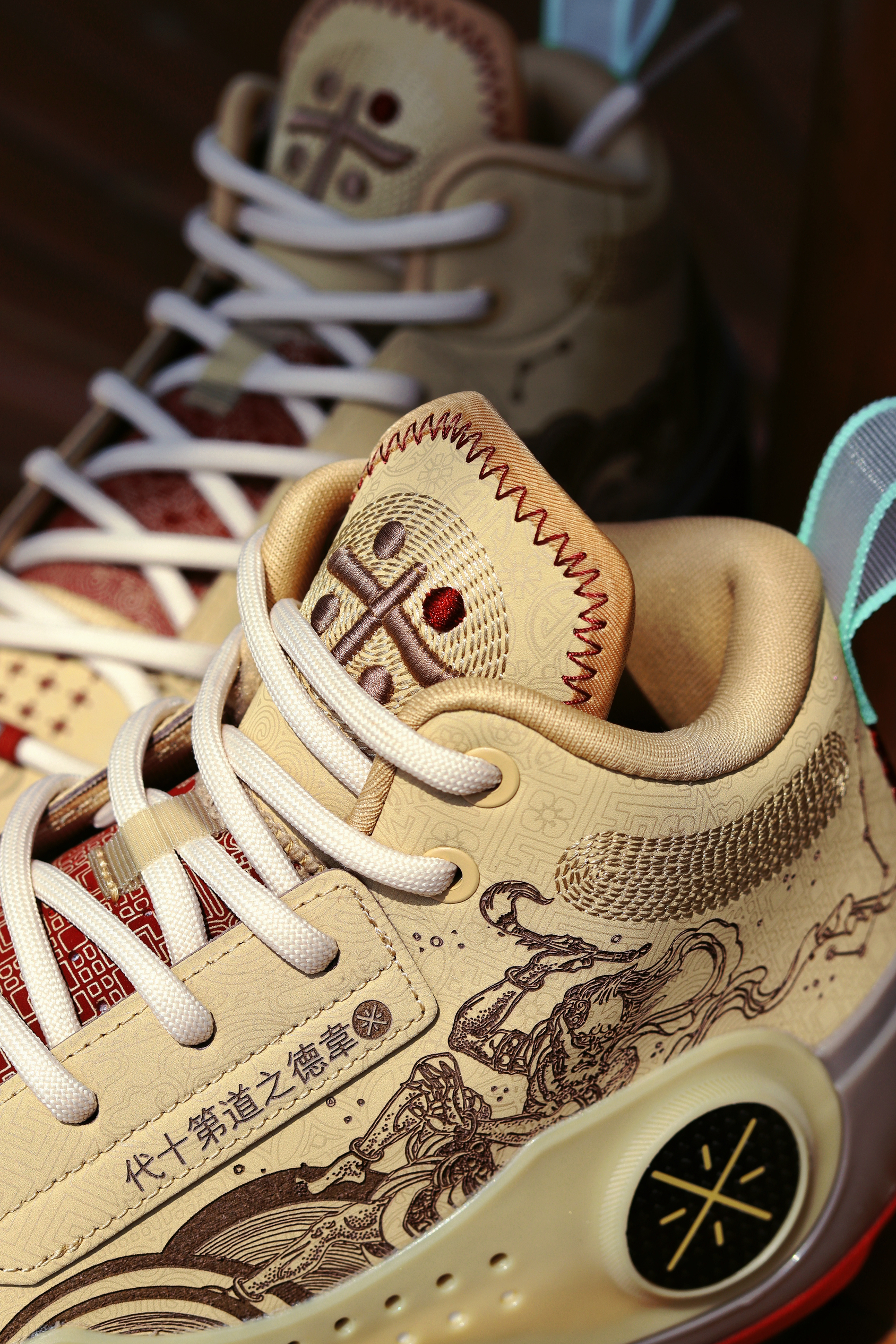 继续给大家发来秋季实战好鞋分享,今天带来的是一双来自于李宁的韦德之道10“魁星点斗”,国风拉满的一双实战鞋~ 鞋面部分采用了奶棕色作为球鞋的基础配色,宛如古代书籍纸张颜色一般,李宁还在这双球鞋的整个鞋面部分加入了大量中国风印刷图案设计,彰显了中国传统文化的魅力、诠释了浓厚复古韵味。细节方面鞋舌外部的韦德之道logo用了刺绣与电镀工艺相结合的独特工艺;其次,在这双球鞋的鞋头部位还加入了李宁logo...