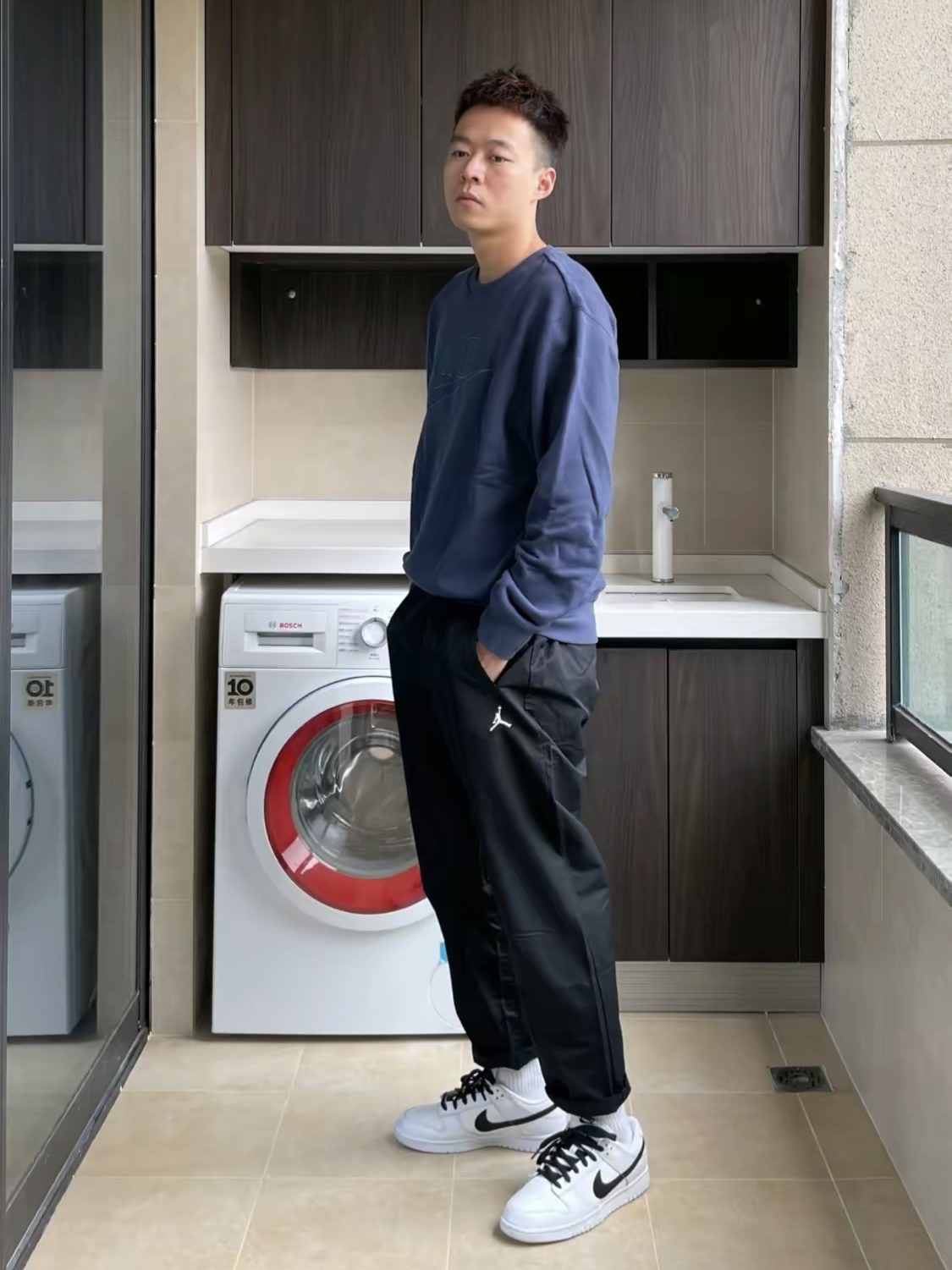 🔥搭配小技巧:天气回暖,适合秋天的套装,卫衣休闲裤,便是常见的选择,舒适度很高,修饰身材比例型! 🧚♀️版型:版型让你看起来不在刻板,休闲裤裤长不宜太长,稍微有点垂坠感就很可! 🌈单品吐槽:颜色是黑色,和图片相比有色差,我觉得会比实物淡一些。 图片来自博主本明杰0926侵权删