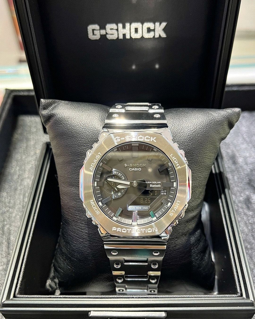 ⭐期待已久的金属农家橡树终于到手了,这次不用自己改装也有全金属的八角形G-SHOCK了 ⭐「金属八角」系列实现了金属进化,表圈的各部位采用不同的拋光技术打磨,搭配同色系金属表带,流淌质感光泽、打造高品腕表 ⭐刻度则以3D立体标识设计结合蒸镀饰面处理,突显表盘金属质感。手表搭载了蓝牙连接功能🔗太阳能动力🌞让手表操作更方便及长动力
