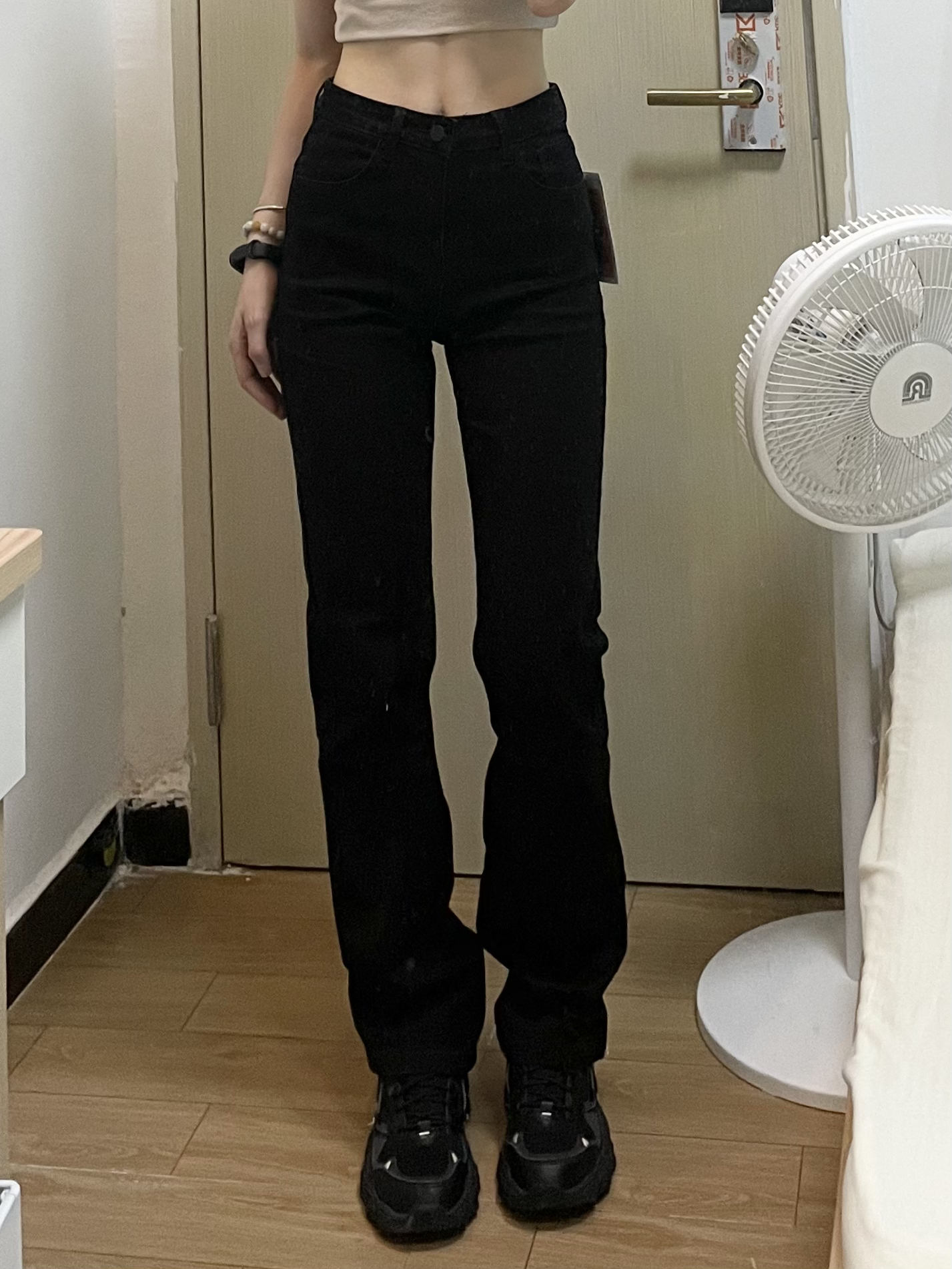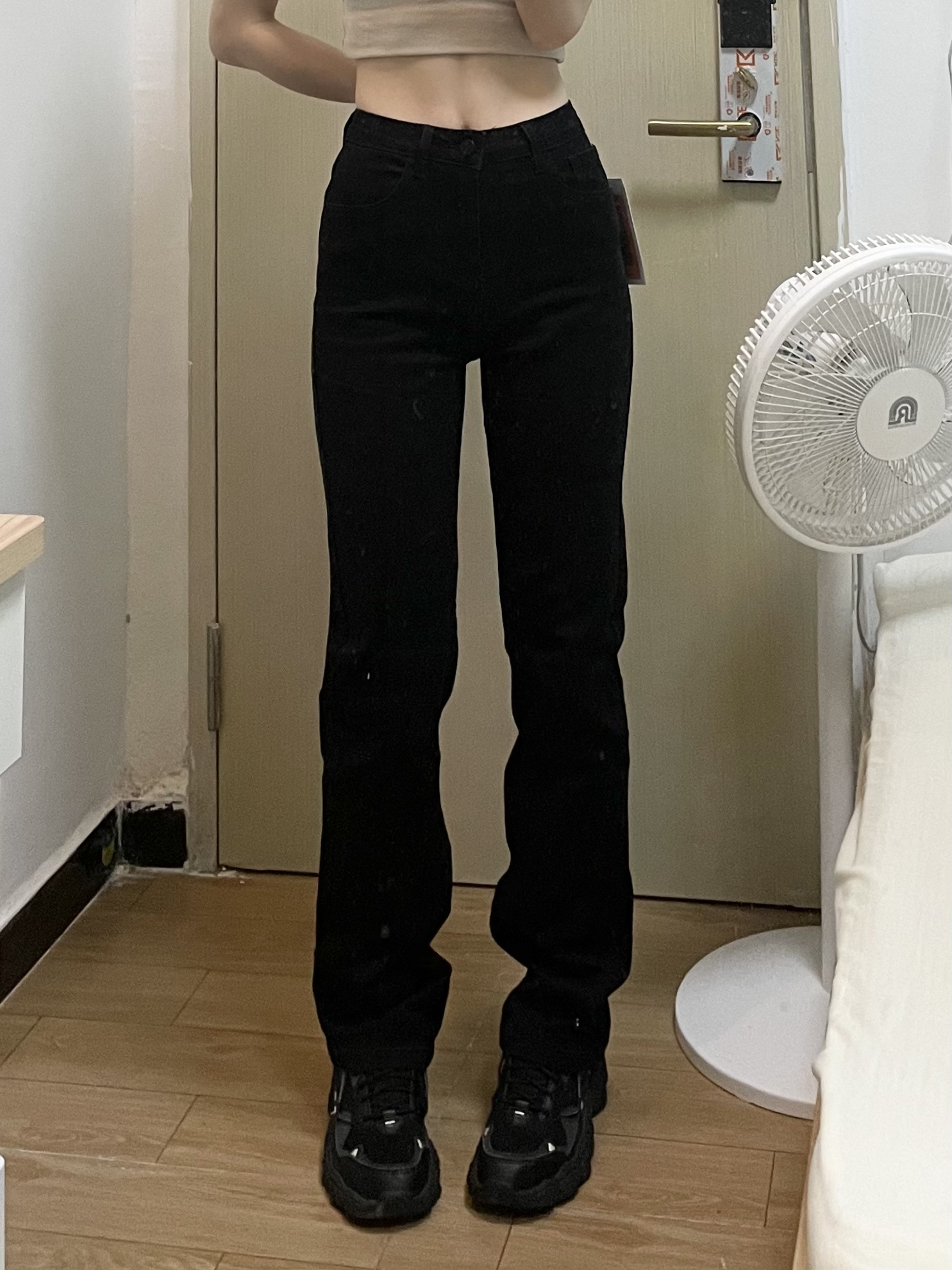 姐妹们 直筒裤太牛了 都给我买吧 我小腿有点粗 穿上这条裤子直接把我的肉肉给遮住了 显得腿又细又直 果然黑色才是最牛的😭😭