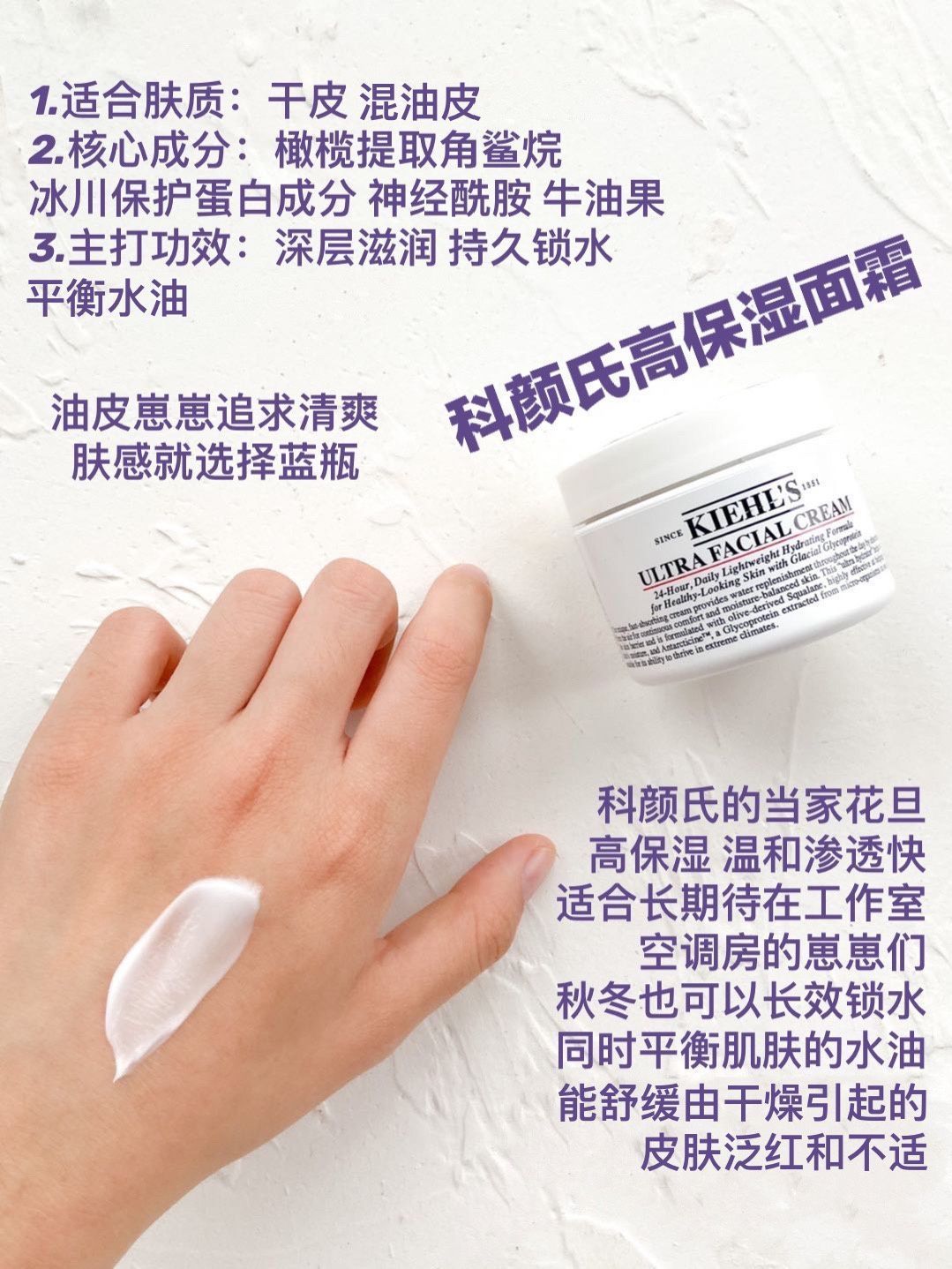 本篇笔记关联了Kiehl's/科颜氏 角鲨烷高保湿面霜 补水滋润修护舒缓防干裂 【2.0】旧经典版、Curel/珂润 润浸保湿面霜 修护舒缓 版本1、origins/悦木之源 咖啡因保湿面霜 水亮 清爽型等商品,为用户提供真实的使用体验和购买参考。