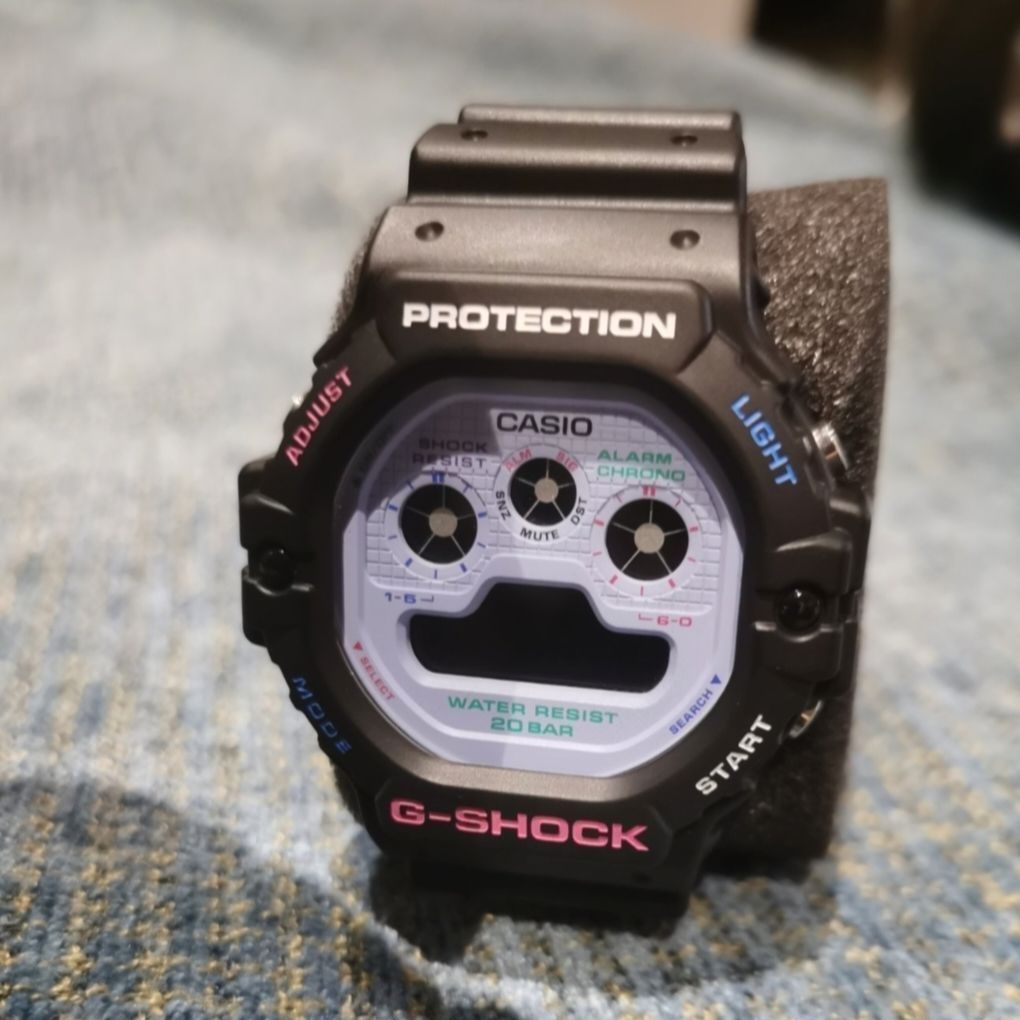 ⭐以夏日户外活动为主题设计的全新多彩系列,缤纷撞色设计,展现专属的活力😚 ⭐DW-5900DN系列设计概念来自夜间霓虹配色,以黑色与紫色配色,连细节表壳处的文字也充满童心的加入缤纷色彩,表盘上方采三眼设计,并维持G-SHOCK既有的耐冲击构造、防水200米、闹铃、计时码表、倒数计时…等多项功能。