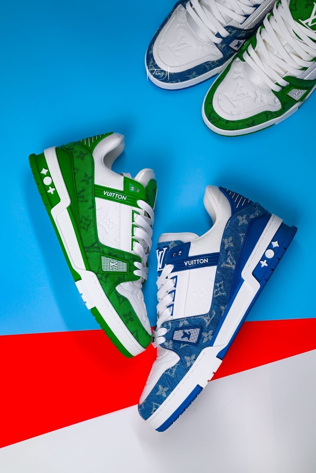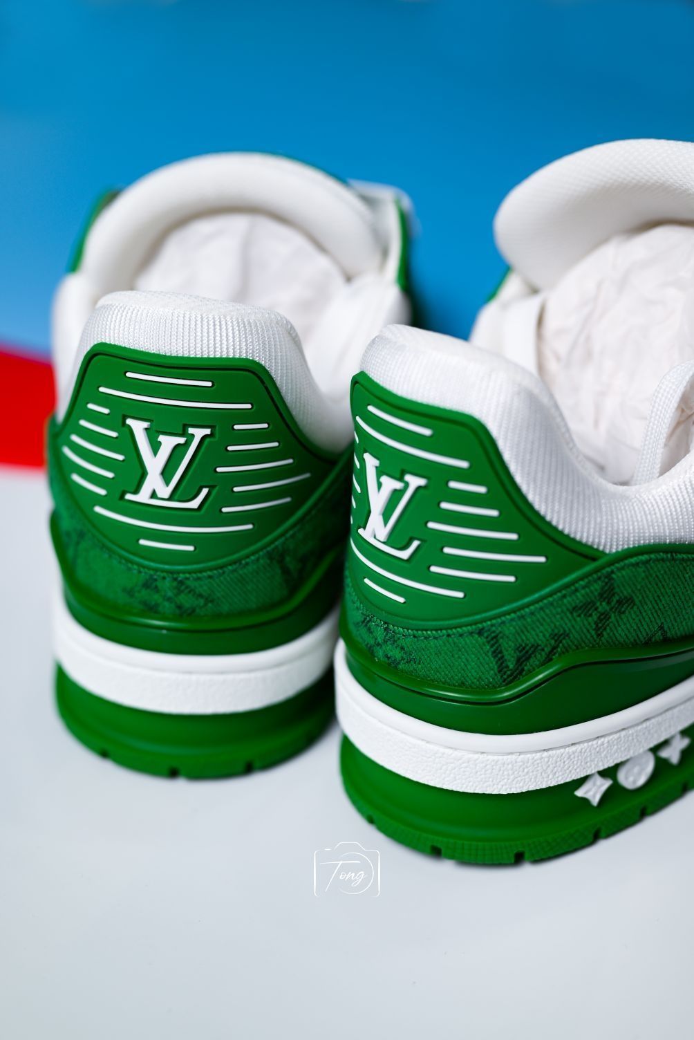 LV Trainer的火爆已经毋庸置疑,万元级别的售价也完全配位奢侈品的身价。 这双21季的绿牛仔,算是近年来Trainer的颜值巅峰之一了。 大面积的优质意大利小牛皮压印LV经典老花,低调中充满细节和美感,鞋身多处的LV logo也巧妙融合在设计细节中,丝毫不像以往LV给人带来很大压迫感和装X感,显得更时尚更街头却又不失格调。