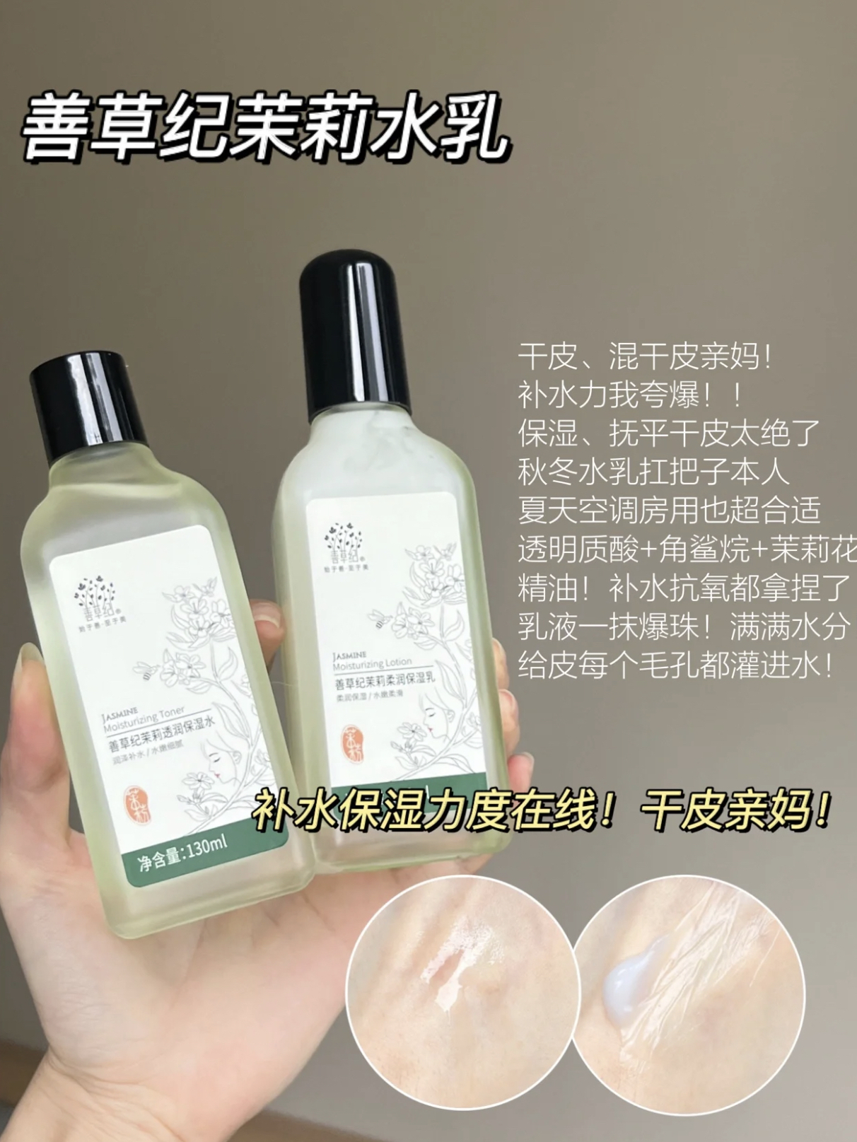 我逢人就推的宝藏品牌!善草纪! 第一次茶树水乳时惊为天人! ! 后来又陆陆续续买了他家其他产品 基本.上都没有踩雷! ! 我夏天皮肤比较油,会泛红 冬天又很干燥紧绷! 换季的时候很容易烂脸 可以说皮肤问题很严重了 各种肤质在他家的产品里都能找到合适的!绝绝子 而且全部产品都是平价的,学生党也可以放心冲! ! 善草纪茉莉水乳 干皮、混干皮亲妈! 补水力我夸爆! 补水保湿、抚...
