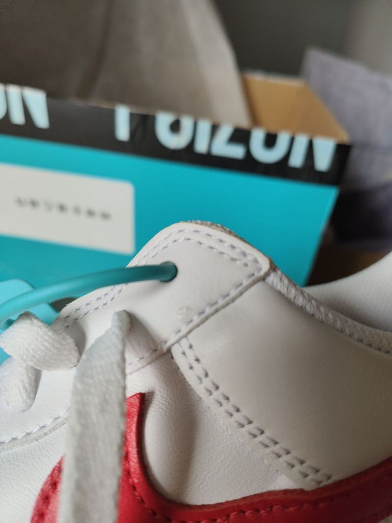 兄弟们有懂的吗?帮忙看一下这个新买的是真的还是仿品?斜边儿有点儿裂开,还有一跤什么的,然后鞋里塞的是一团纸。