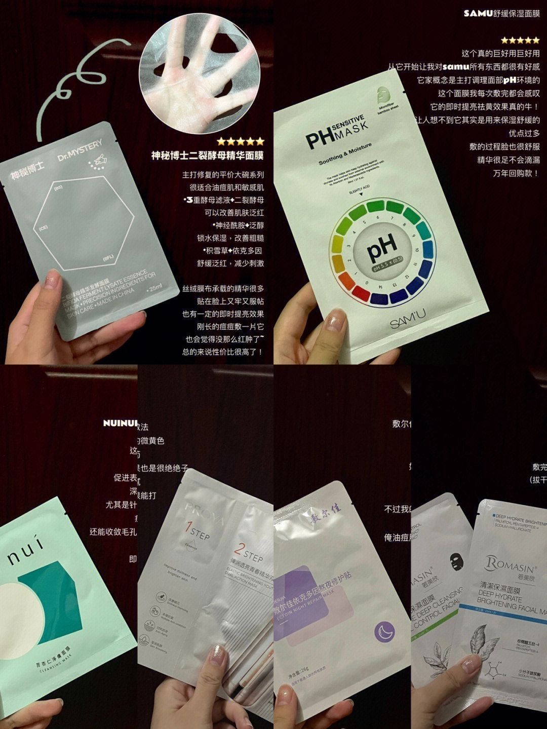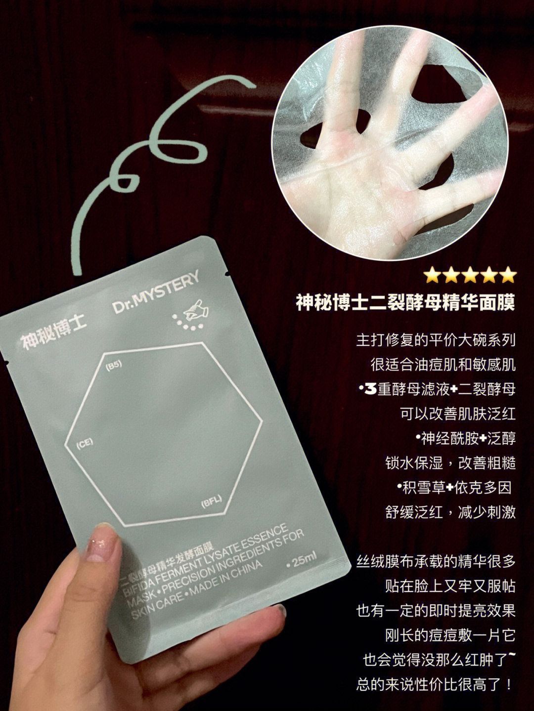 油痘肌必备面膜丨Plog21|||发发最近常敷的面膜吧~ 大部分都很适合俺们油痘肌! 🍃SAMU舒缓保湿面膜💯 🍃神秘博士二裂酵母精华面膜💯 🍃NUI NUI苦杏仁净肤面膜💯 🍃珀莱雅双抗面膜💯 🍃敷尔佳依克多因熬夜修护面膜❌ 不适合我,但不是说它不好 🍃若美欣清洁/控油保湿面膜❌ 胜在便宜大碗,但感觉没啥效果 神秘博士面膜 以三种发酵滤液作为基液🌸 深层舒缓修护肌肤 减轻肌肤泛红问题 添加...