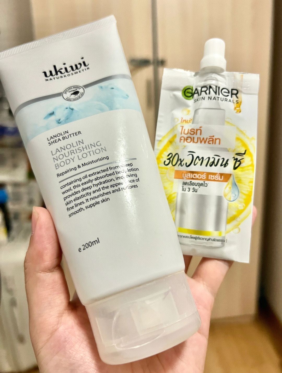 来一套组合拳👊 抗氧化+美白 the ordinary 白藜芦醇+卡尼尔美白精华 脸部+身体双管齐下 图二是我正在用的身体乳,滋润类型的,我一般 挤两泵出来在加入一点卡尼尔,搅合均匀涂抹 图三是卡尼尔的质地,类似于乳液,有点粘 the ordinary 白藜芦醇类似于油的质地,涂上脸热 热的 这个夏天坚持天天涂,想不白都难