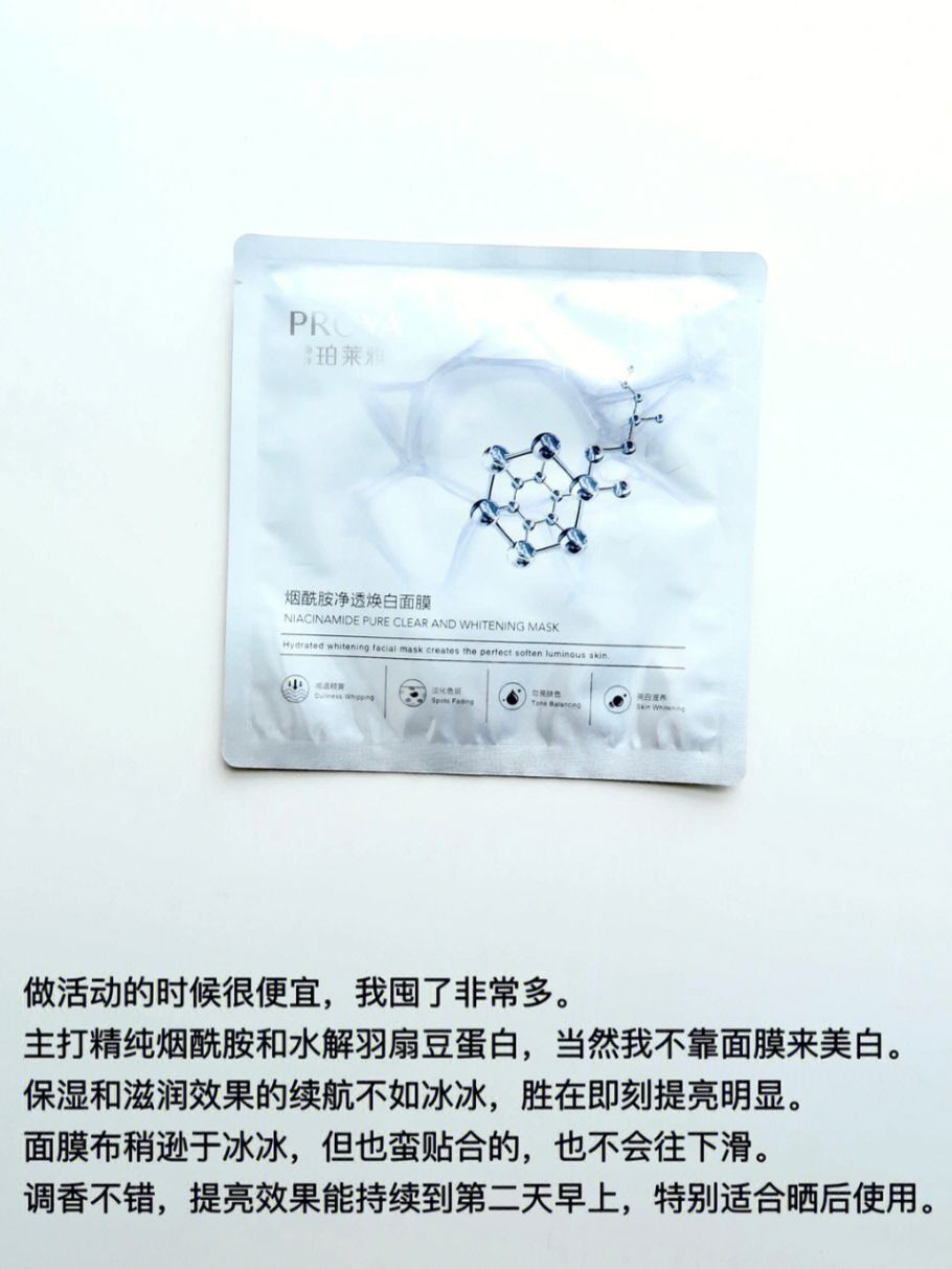 本篇笔记关联了珀莱雅 烟酰胺净透焕白面膜 补水亮白、CHANDO/自然堂 安瓶面膜 维稳焕亮烟酰胺保湿舒缓肌肤油痘肌 1%泛醇精华等商品,为用户提供真实的使用体验和购买参考。