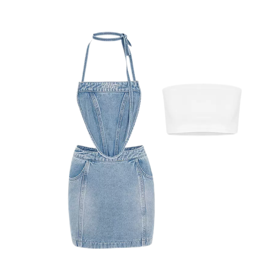 美到窒息甜辣女孩的炸街利器,穿上就是初夏小野马,趣味性MAX,佛游走在QQ秀里的千禧辣妹! 穿了新品子抹胸牛仔裙,是长裙的版型很显瘦很高!颜色是比较经典法式的感觉,要是搭配一件白色衬衫更加日常,也不担心会露,夏天当防晒也可! 适合身材:抹胸是做的小短款版型刚好可以露出肩颈的线条衣长大概在腰线位置,漏腰设计凸显腰身拉长身材比例!