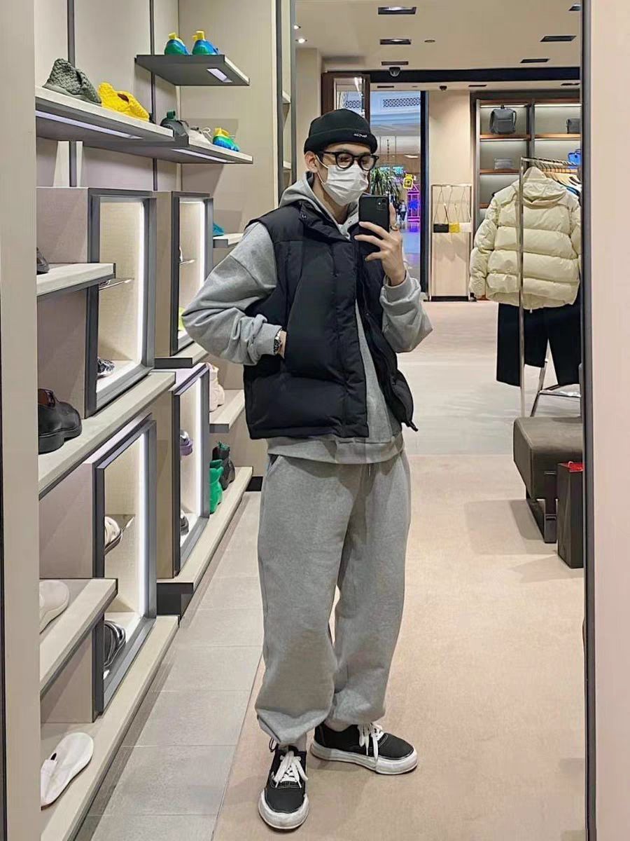 👚 灰色休闲连帽卫衣+黑色简约马甲羽绒 👖 薄款侧边拉链束脚运动裤 ✅适合人群 这一身妥妥的休闲运动feel 很适合喜欢宽松款式的朋友 没有紧绷束缚的感觉 上身很NICE 💕面料材质 面料适合秋天 不过冬天可以在里面穿打底裤 也不会臃肿 🌟性价比 这个价格能买到 我吹爆 国产真的顶呱呱 图片来源网络,侵删。