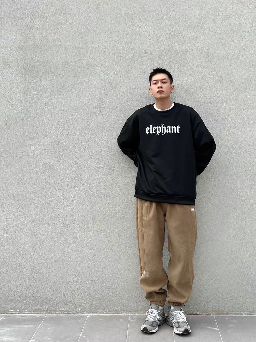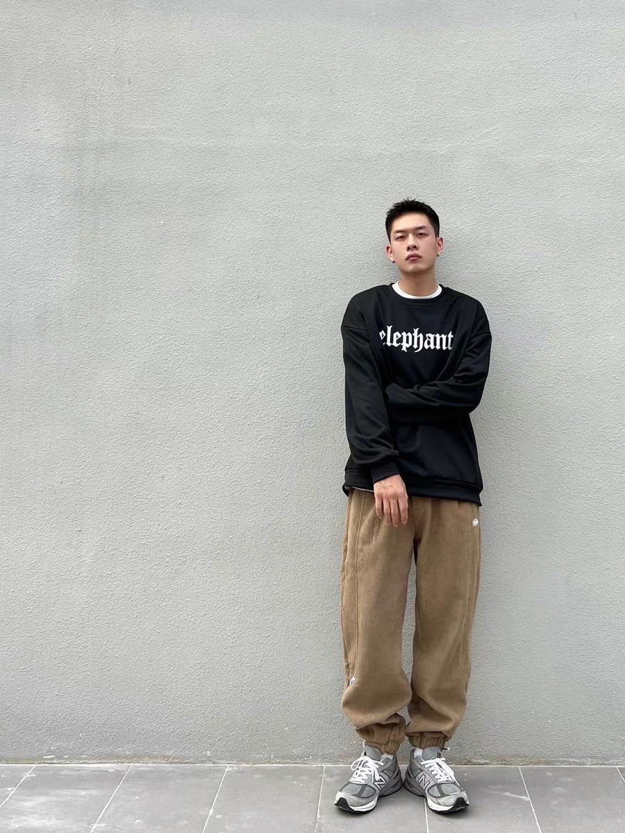 📷今日Look:➡️黑色基础圆领卫衣➕棕色条绒长裤⬅️ 🌟这个黑色的连帽卫衣就是那种很有质感的款式,整体就是那种很柔软的面料~ 🌟触感质感double体验,黑色卫衣真的简单又好搭配,哥特式字母印花真的是太酷了,不愧是“小心机”单品~😏 🌟内里穿一件白色T恤,衣身略大于卫衣,露出白边,就显得很有层次感。 🌟下装搭配的是宽松的束脚条绒长裤,整体黑棕配不要太搭啦🤗 (图源网络侵删)