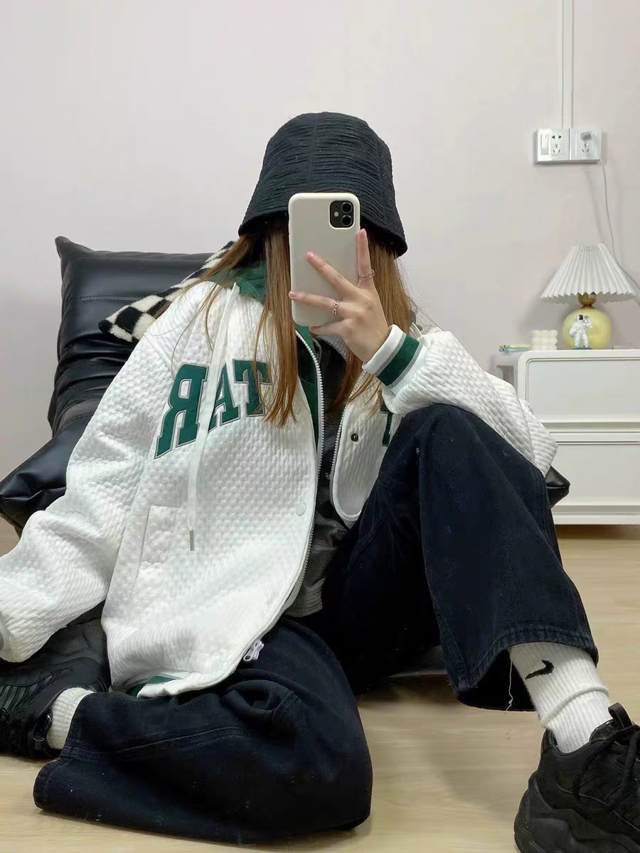韩里韩气的一套!一眼就相中的设计感假两件棒球服外套~是夹克的那种款式,宽松版型嘎嘎正!🥳 它的面料摸起来手感舒适特别,温柔的白色系加上绿色的点缀元素,整体简约但不简单,随心搭配也可以悄悄的惊艳全场😍 下半身可以搭配黑色长裤,无论是春秋哪个季节上身都是很好看的存在❤️ 图源自网络侵删
