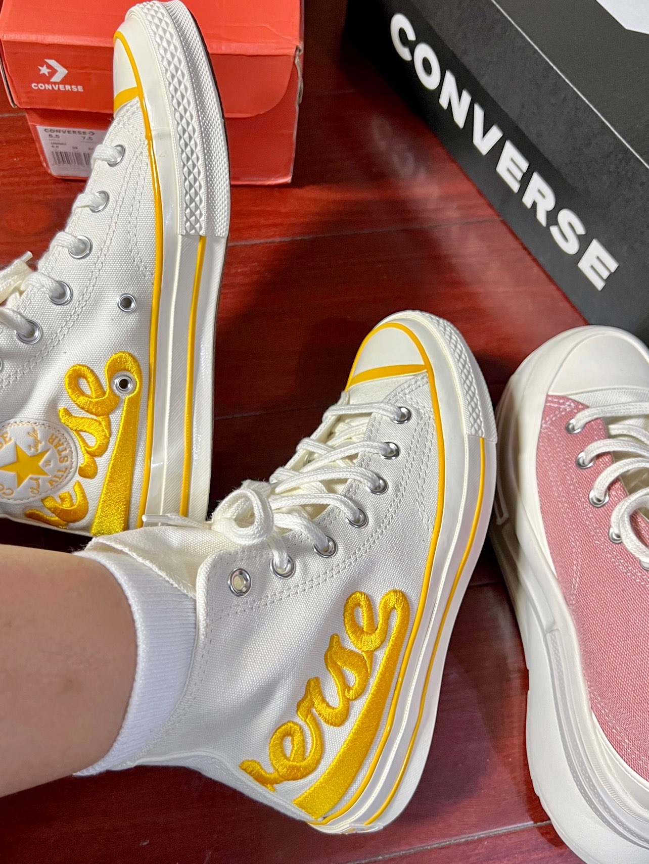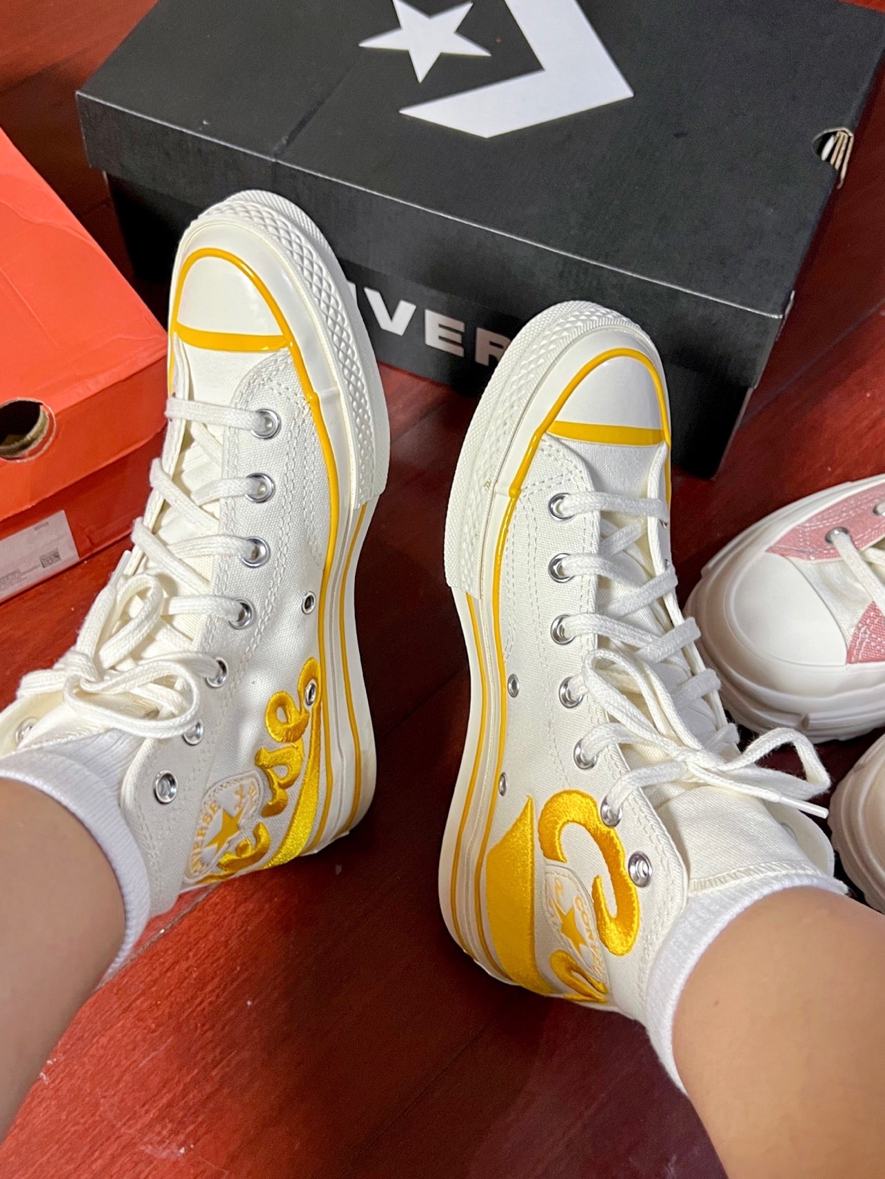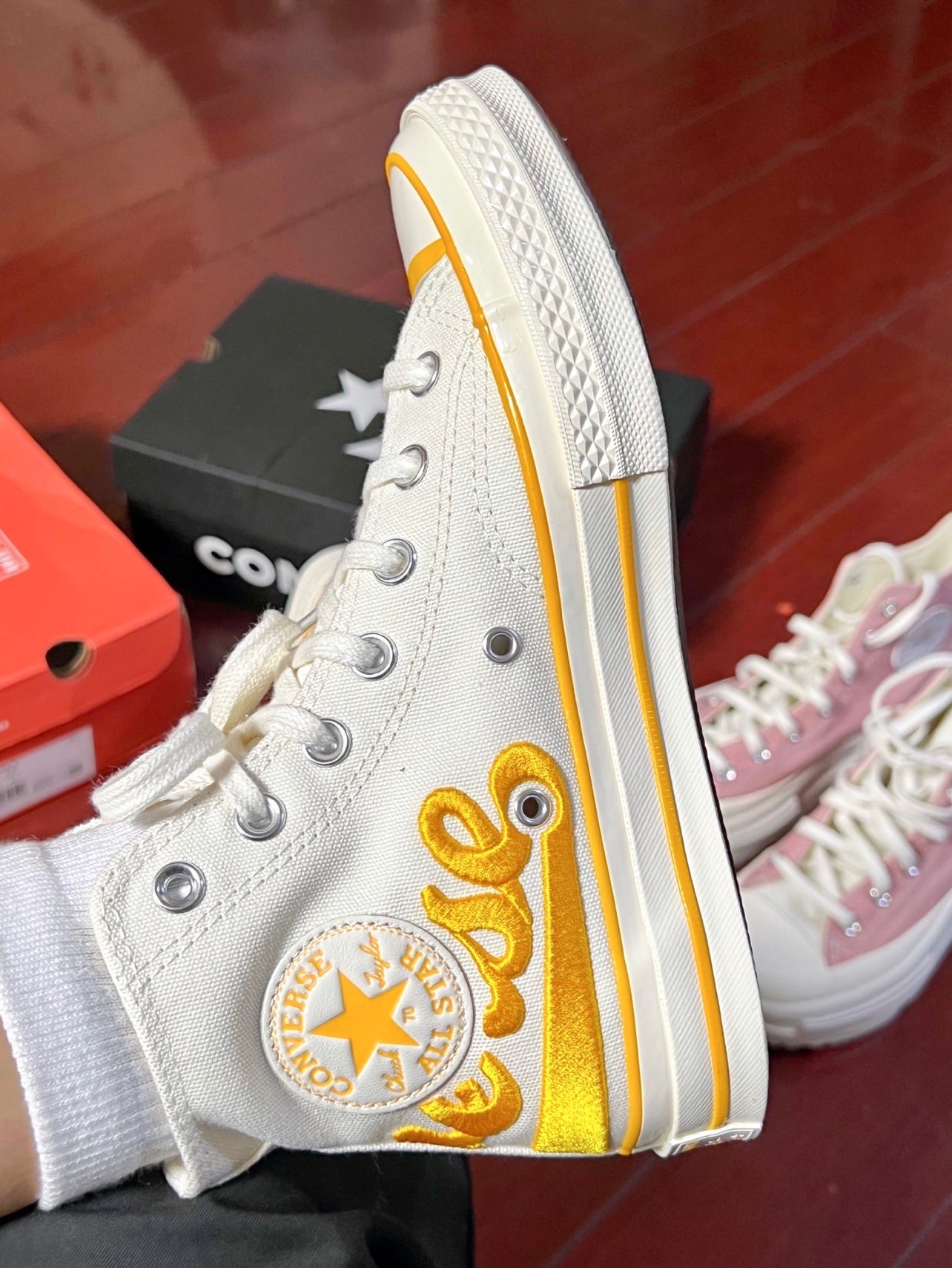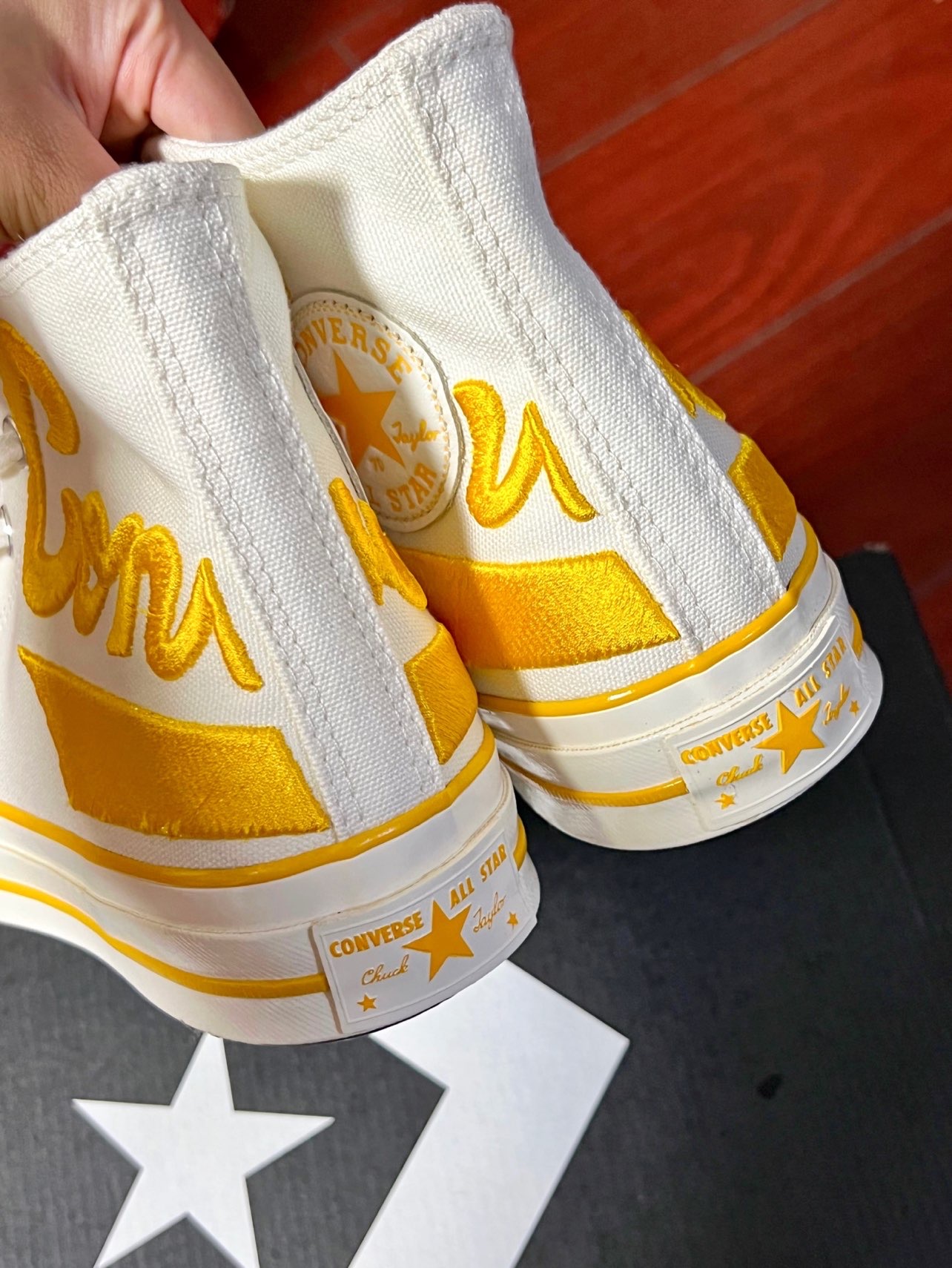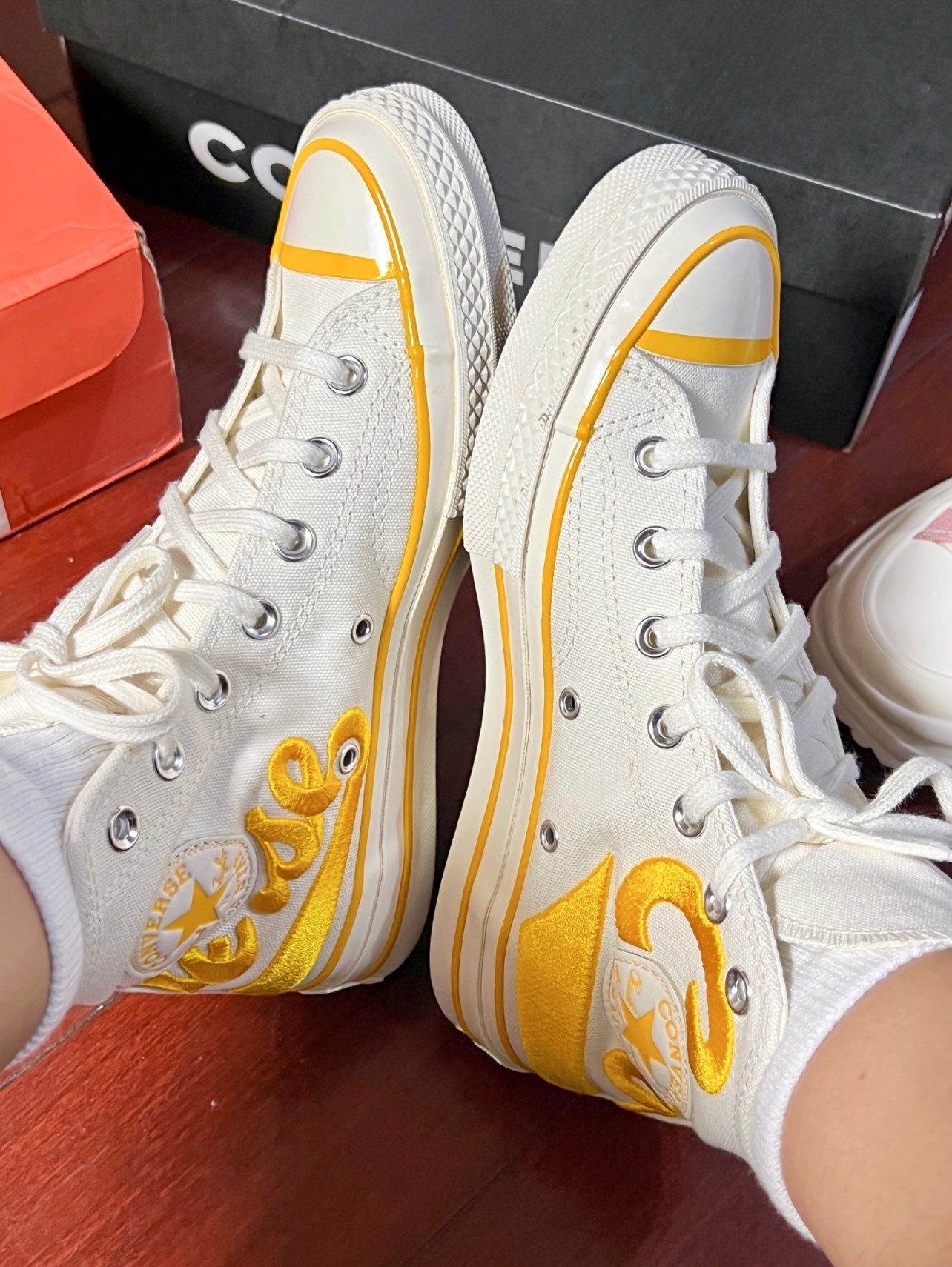 hello我的老果子们🫶🏻 这双柠檬黄刺绣的匡威真的超级亮眼,以前一直买的都是1970s的纯色款,第一次入手这种亮眼配色! 高帮匡威刚开始穿真的需要适应一下,穿惯了低帮一下子穿高帮怪怪的感觉哈哈哈哈哈。 #这双鞋让我心动拉满 #心动女鞋穿搭合集 #晒晒我的匡威1970s #今天只晒鞋