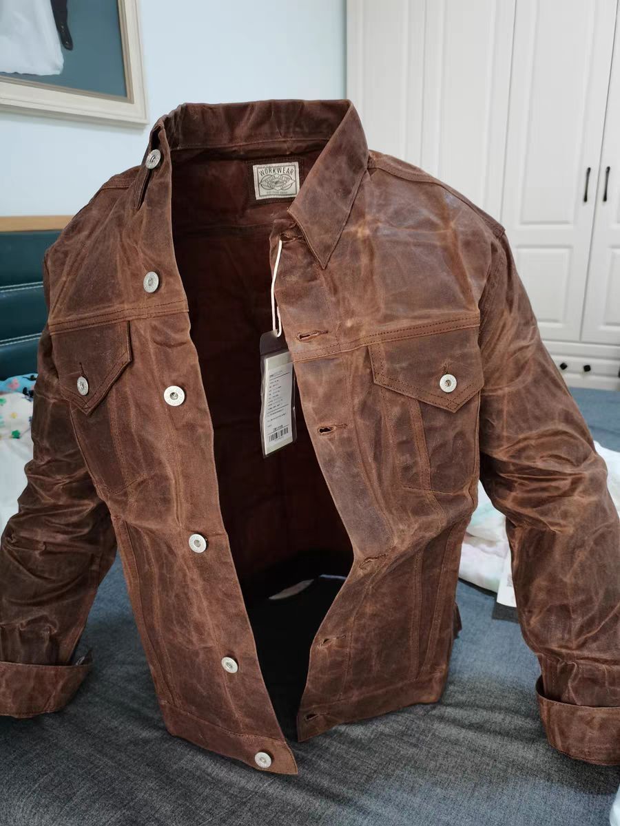 这件油蜡夹克是真的硬,放在床上完全可以立起来。挑战一辈子不洗衣服