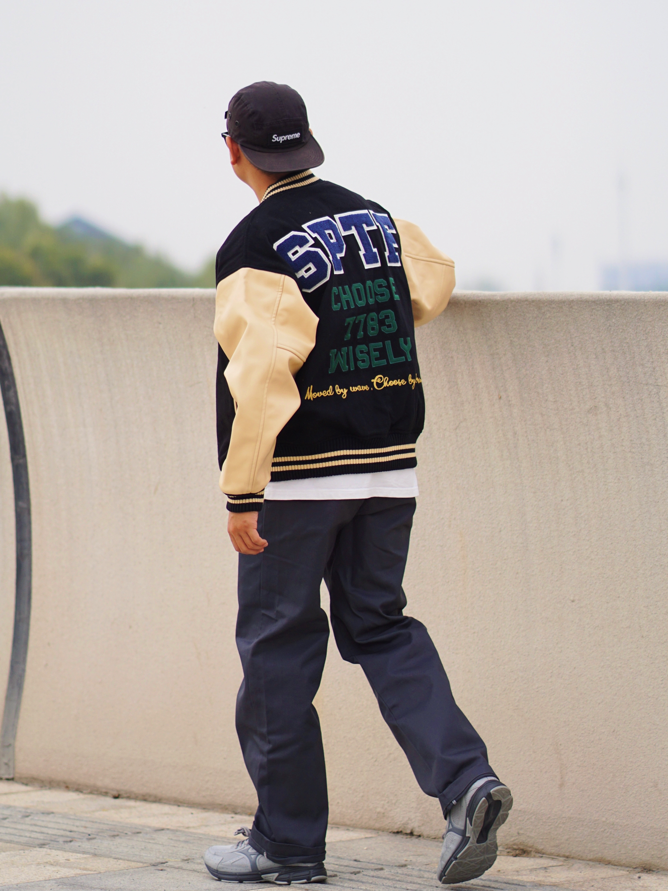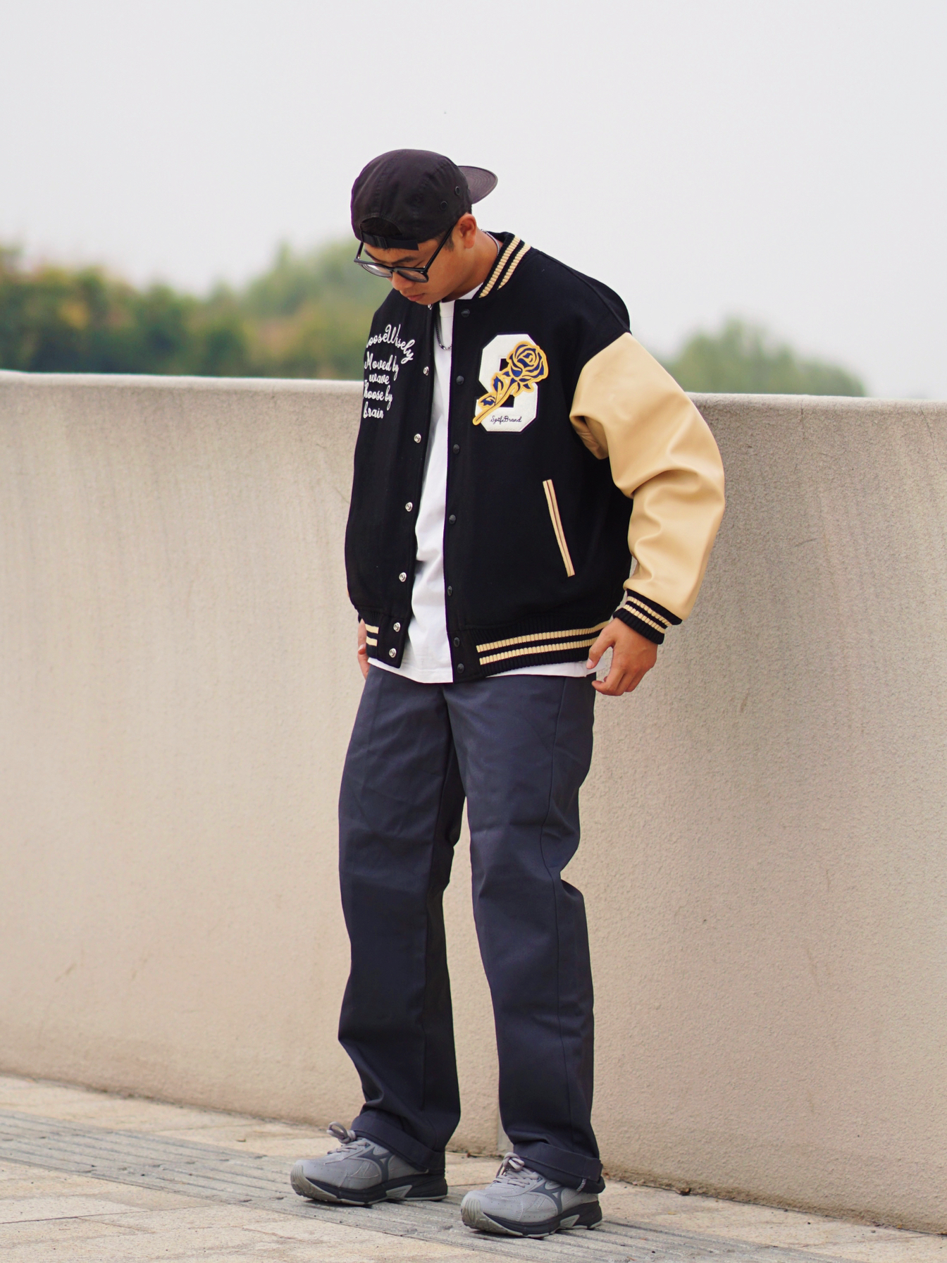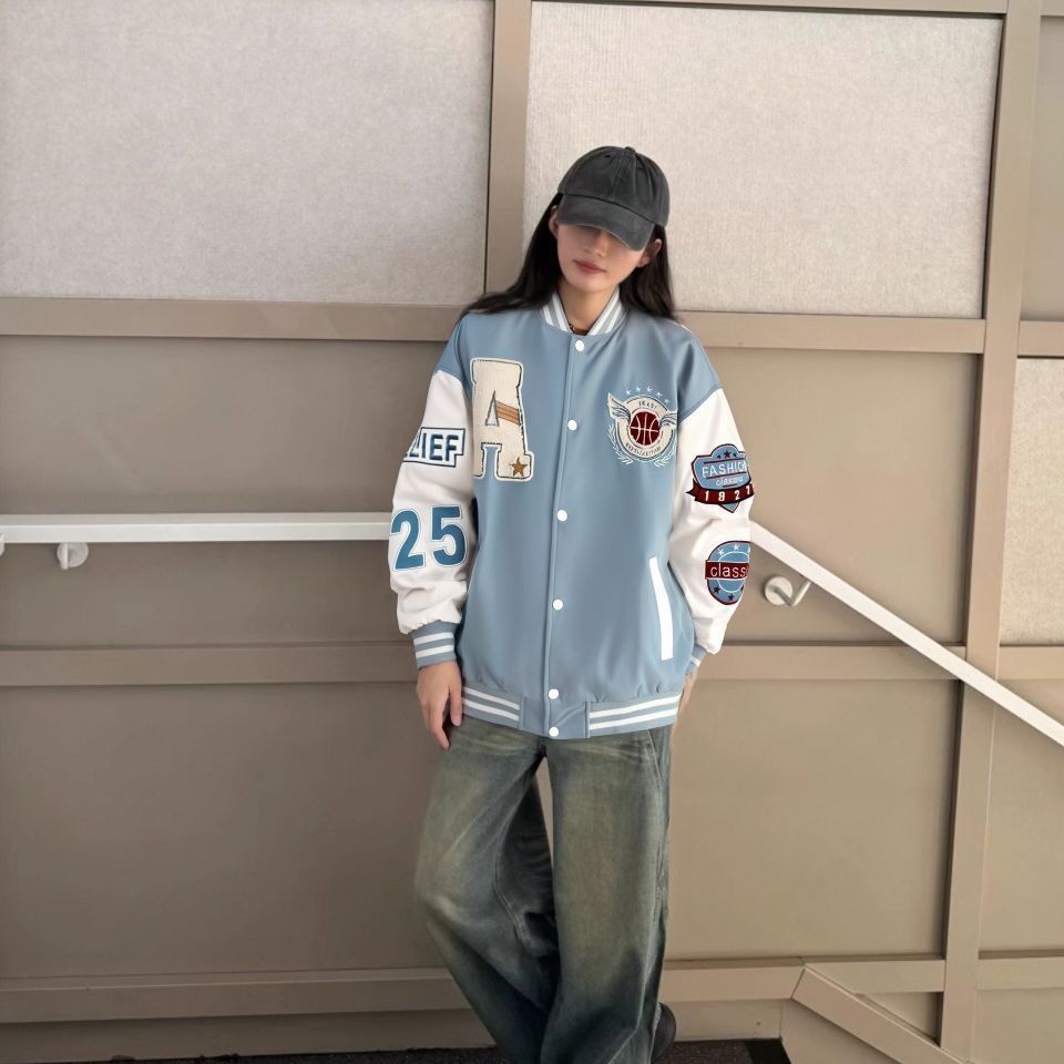 棒球服高级百搭,pu皮袖质感满满 杏色➕黑色的高级感色彩拼接,高级耐看 刺绣细节处处都有,搭配白色内搭浓浓美式学院风📻 —— 874和美津浓适配度十足 美式复古元素点缀,同色系搭配起来不费力👌🏻