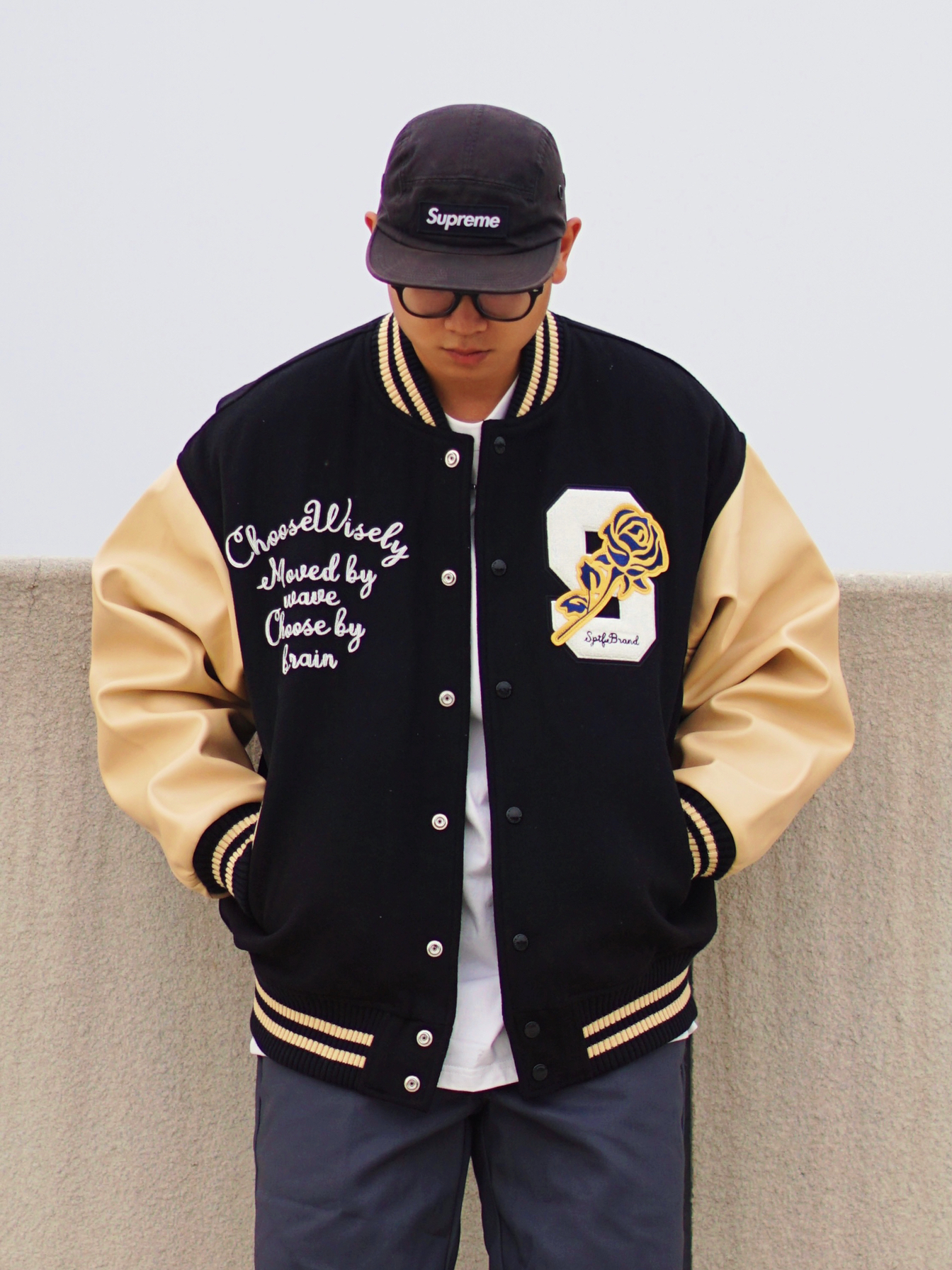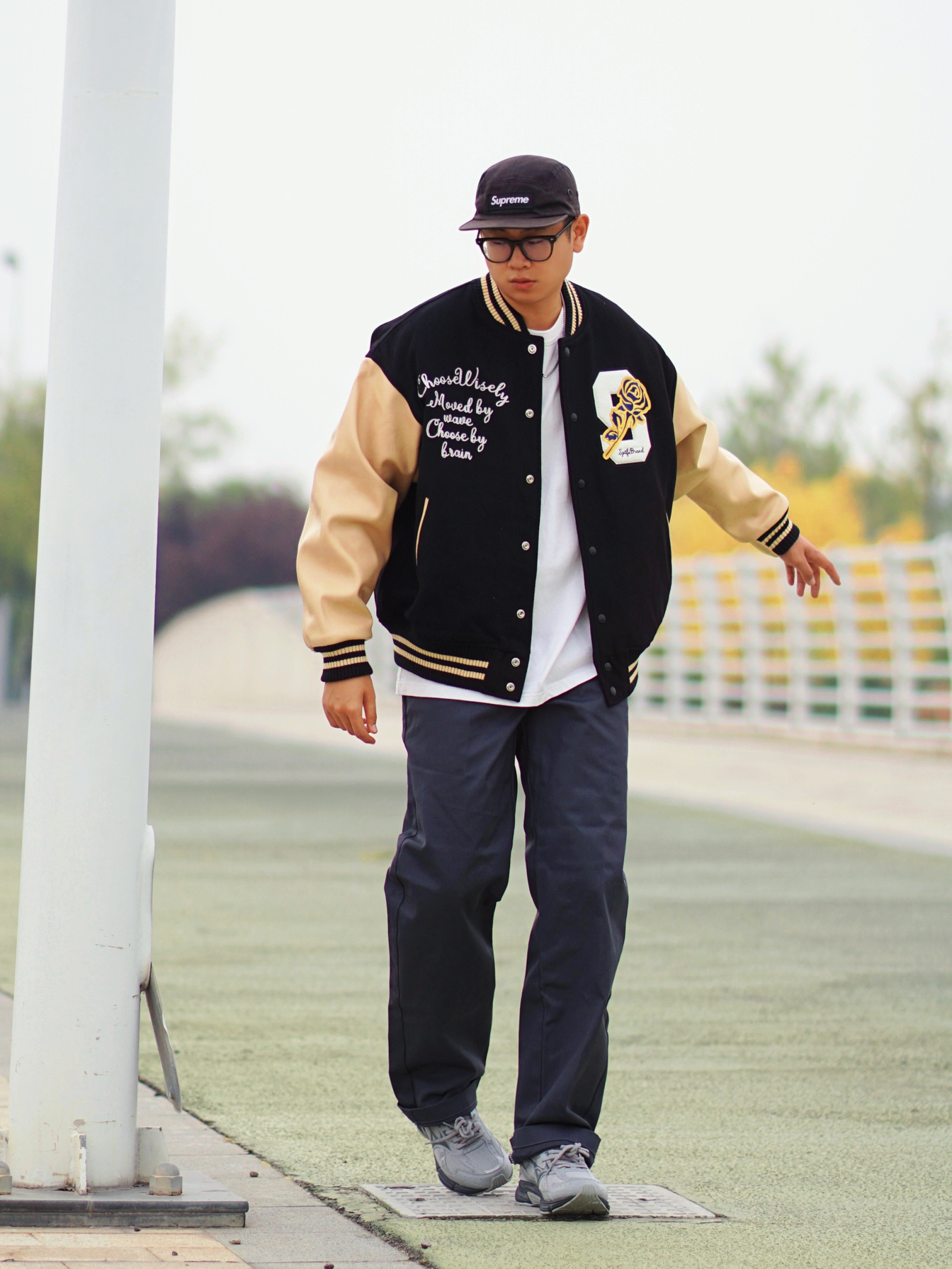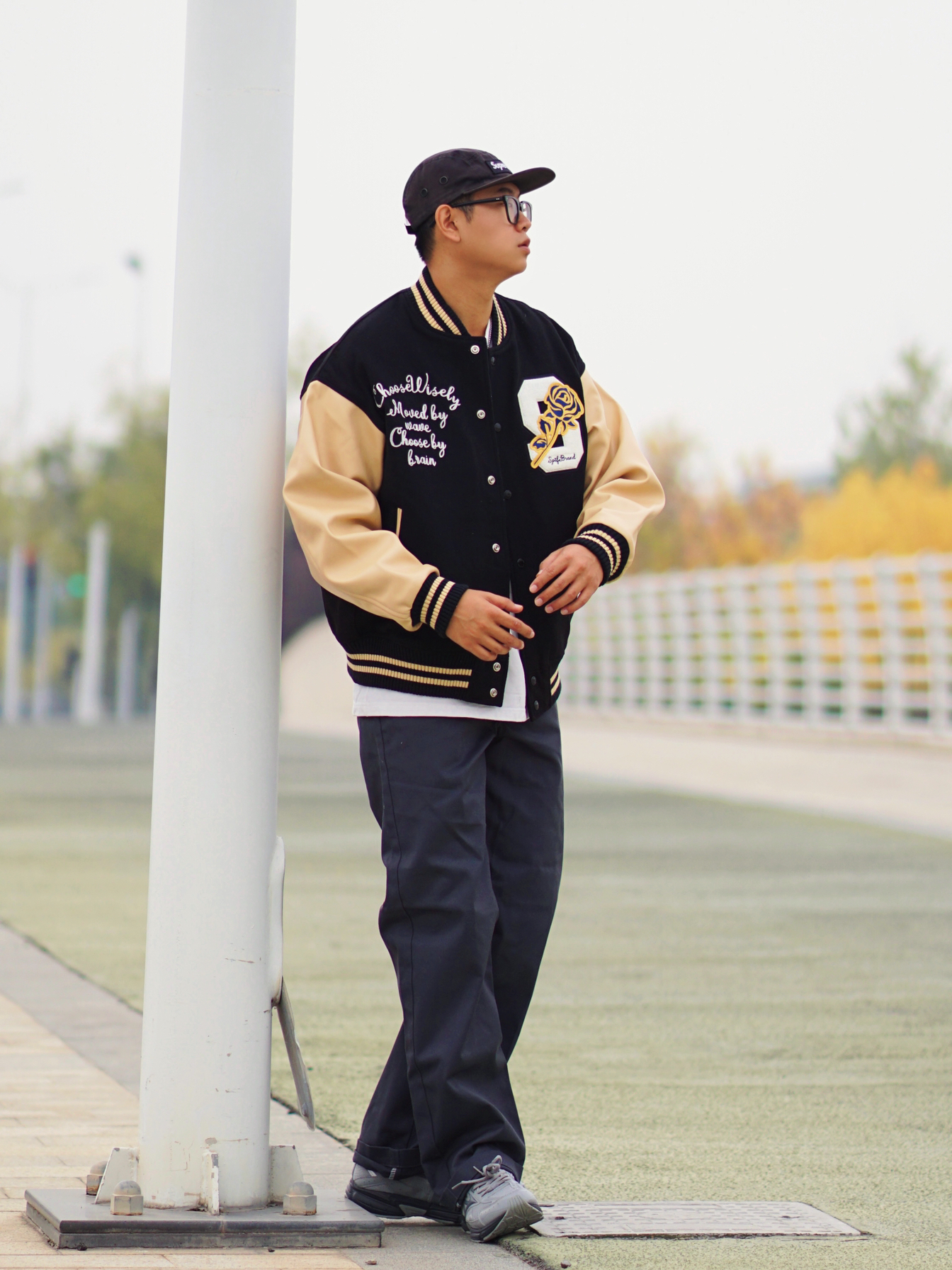 棒球服高级百搭,pu皮袖质感满满 杏色➕黑色的高级感色彩拼接,高级耐看 刺绣细节处处都有,搭配白色内搭浓浓美式学院风📻 —— 874和美津浓适配度十足 美式复古元素点缀,同色系搭配起来不费力👌🏻