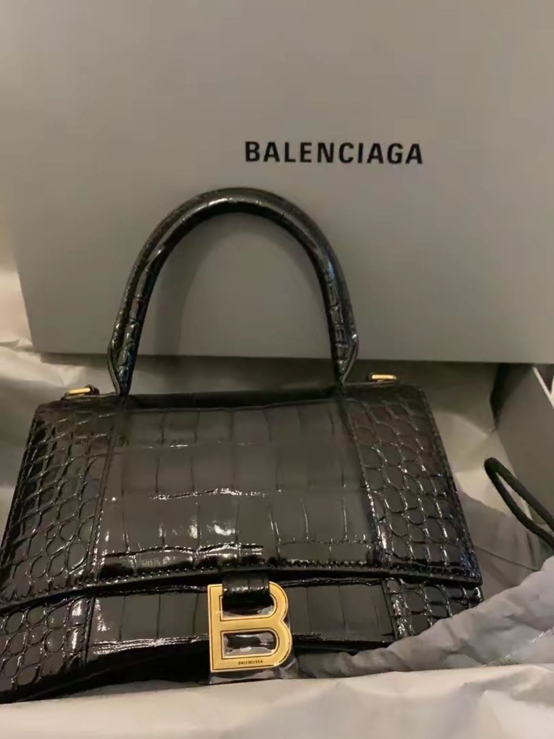 本篇笔记关联了Balenciaga/巴黎世家 Hourglass 小号 鳄鱼纹牛皮金扣沙漏包手提单肩斜挎包 黑色亮面等商品,为用户提供真实的使用体验和购买参考。