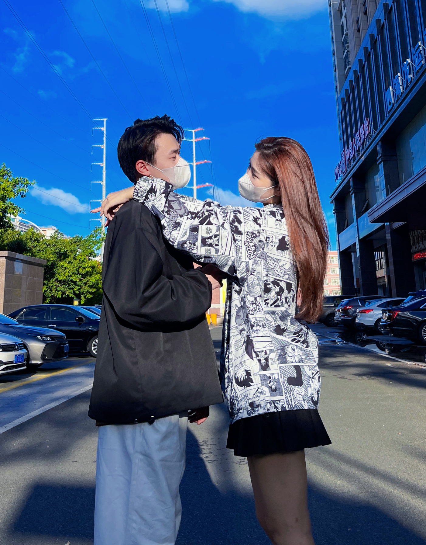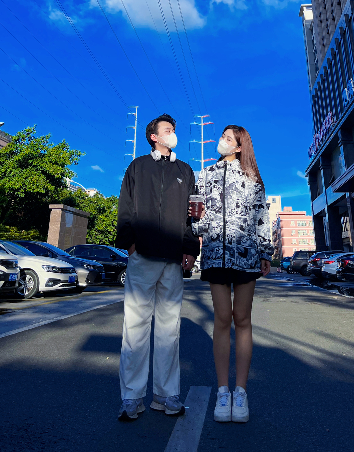 一件衣服两种风格,一面是黑色的夹克外套,一面是卡通满印图案给这件外套增添了一些亮点,不管哪一面都有独特的风格,摸起来手感很舒服,里面简单的内搭就再合适不过了,换季必备单品,跟男朋友一起穿起来吧