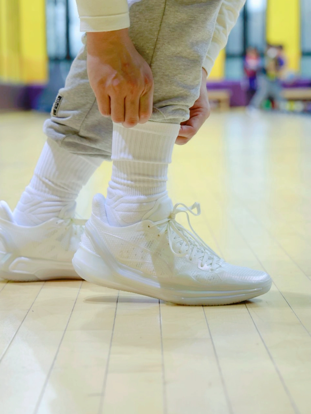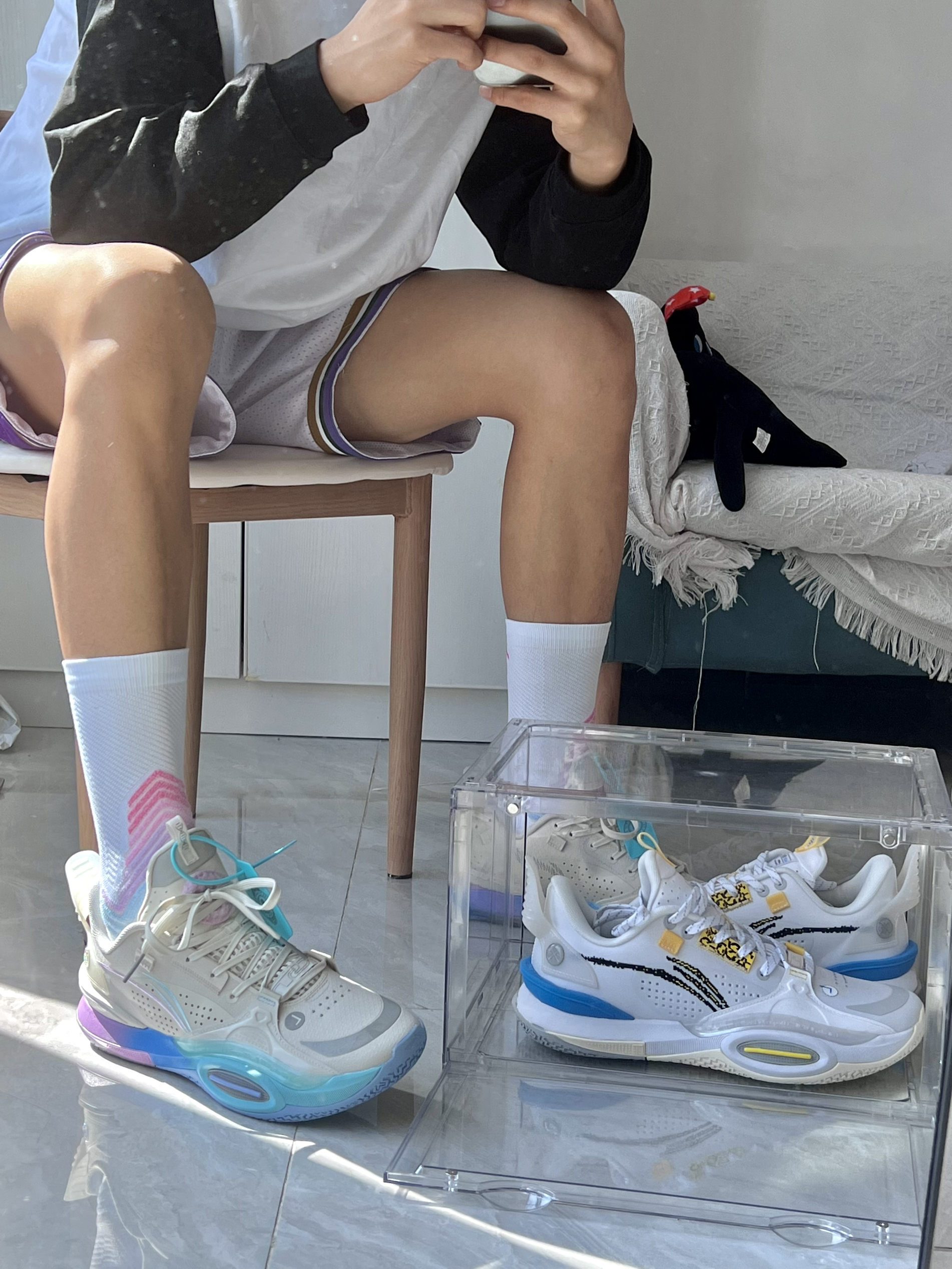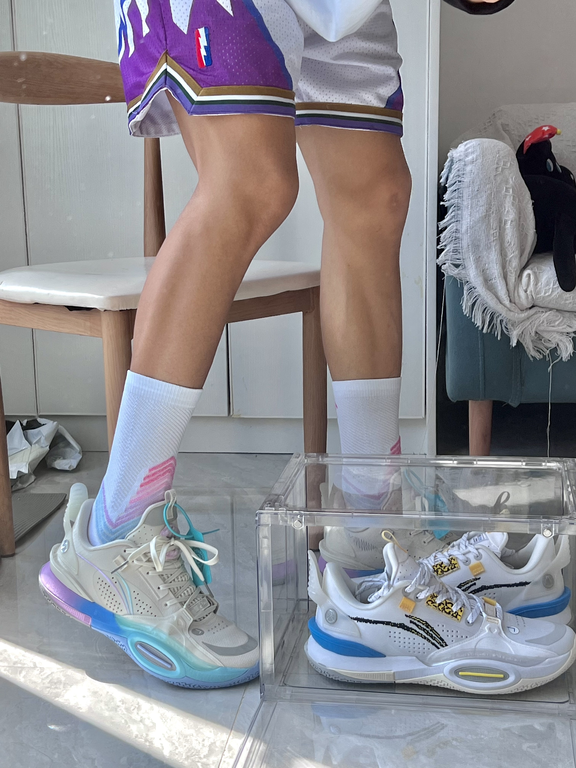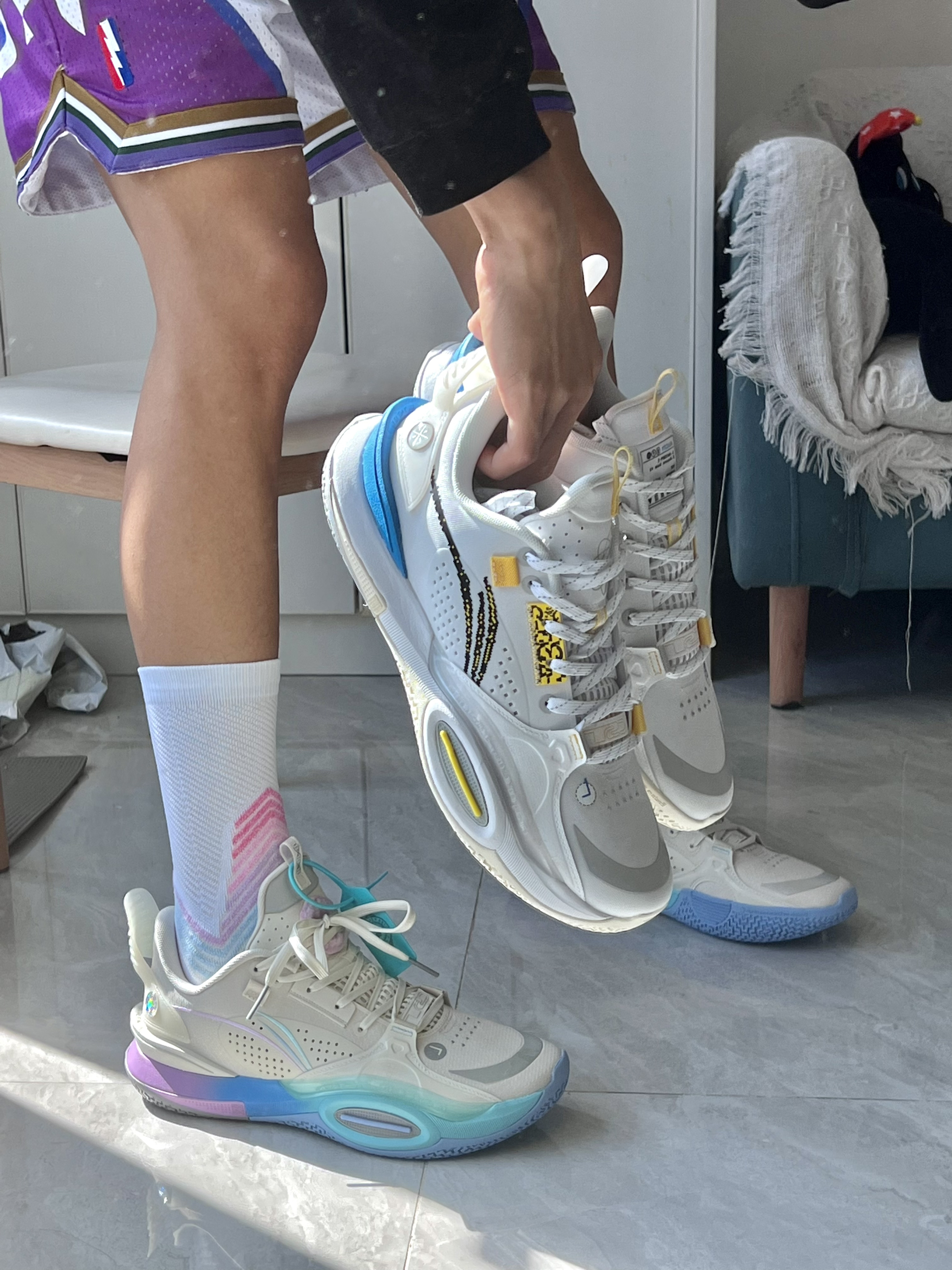 全城10也是一双很好穿的鞋这两个配色我觉得都挺好看的除了一些小毛病之外实战性能还是不错的抓地力是真的很稳看鞋底纹路就知道嘎嘎稳喜的厚度的话是很薄的轻体重穿上去很难感受到露的回弹不过穿几场之后踩开之后脚感会好很多一人说一双后卫好些吧!