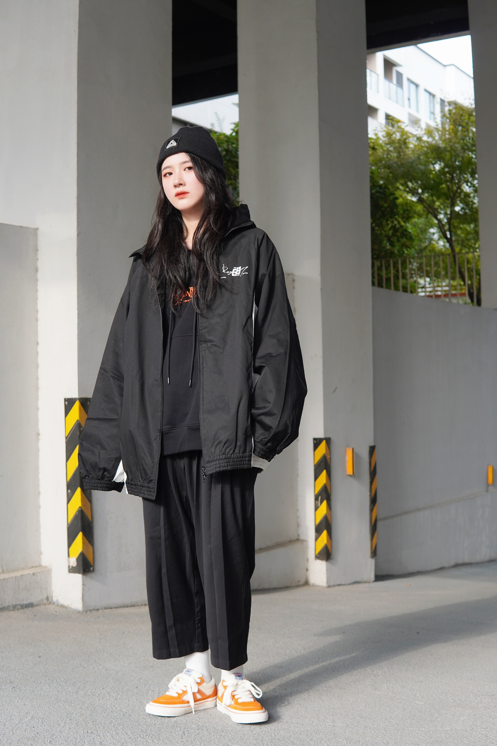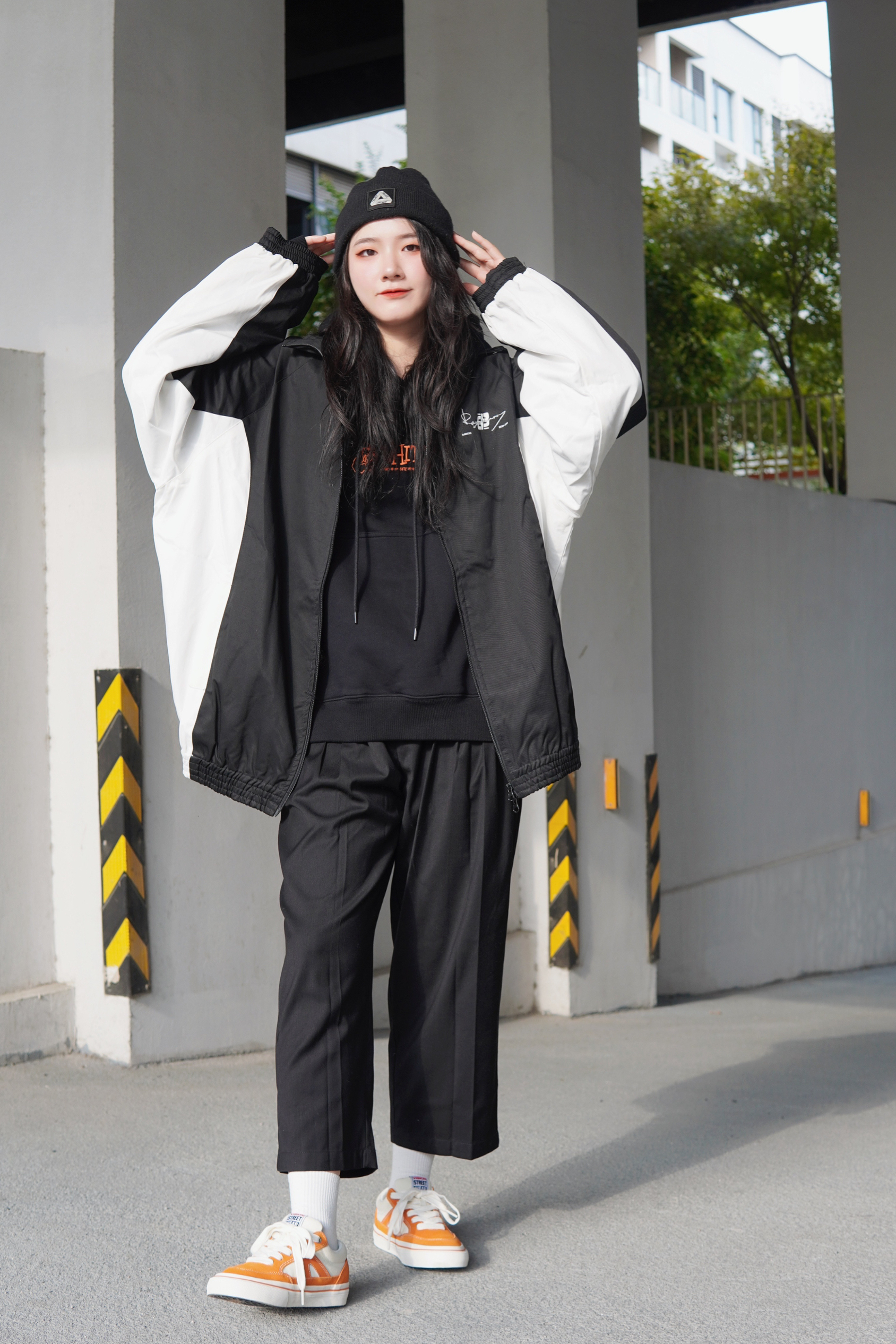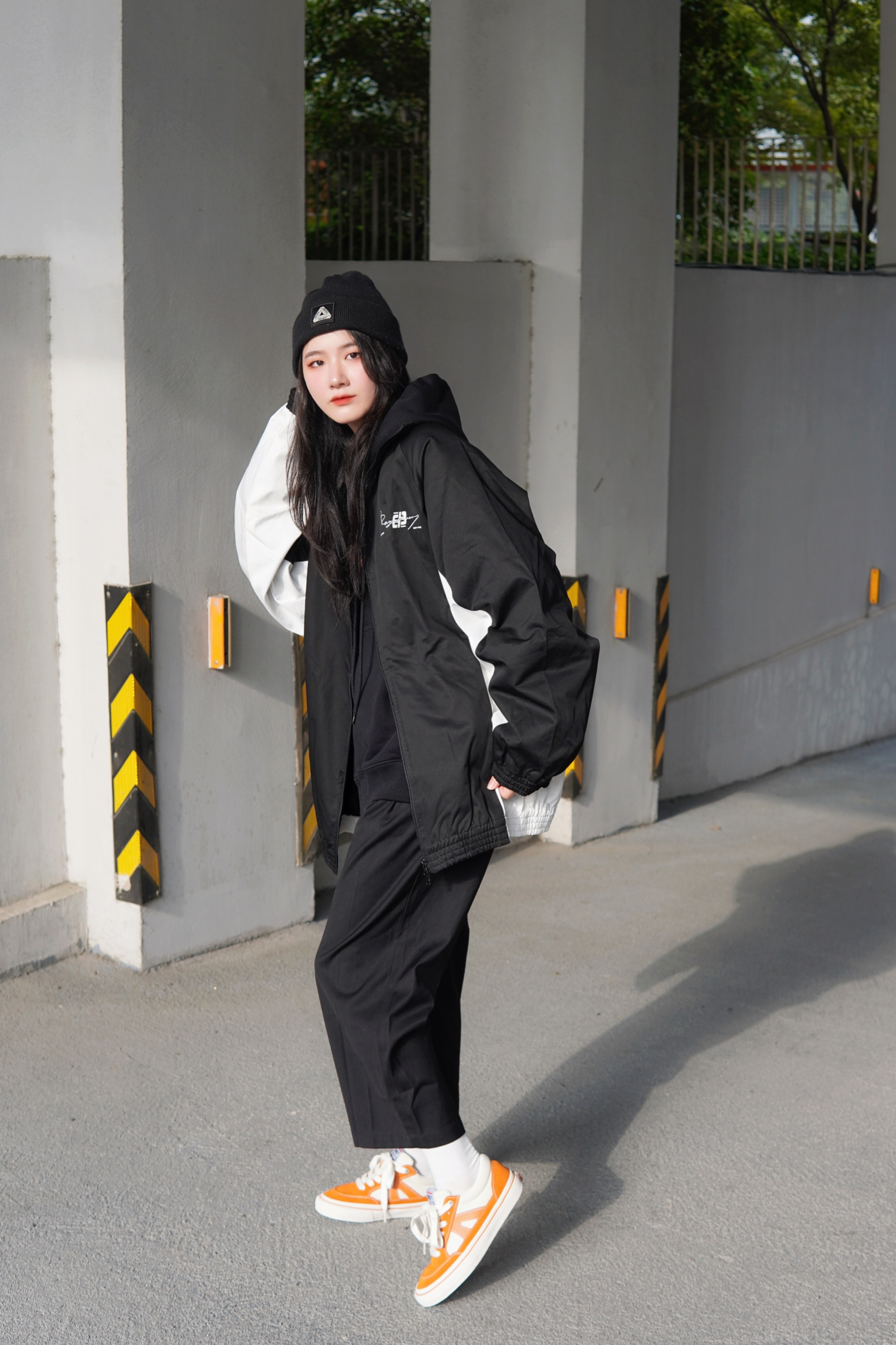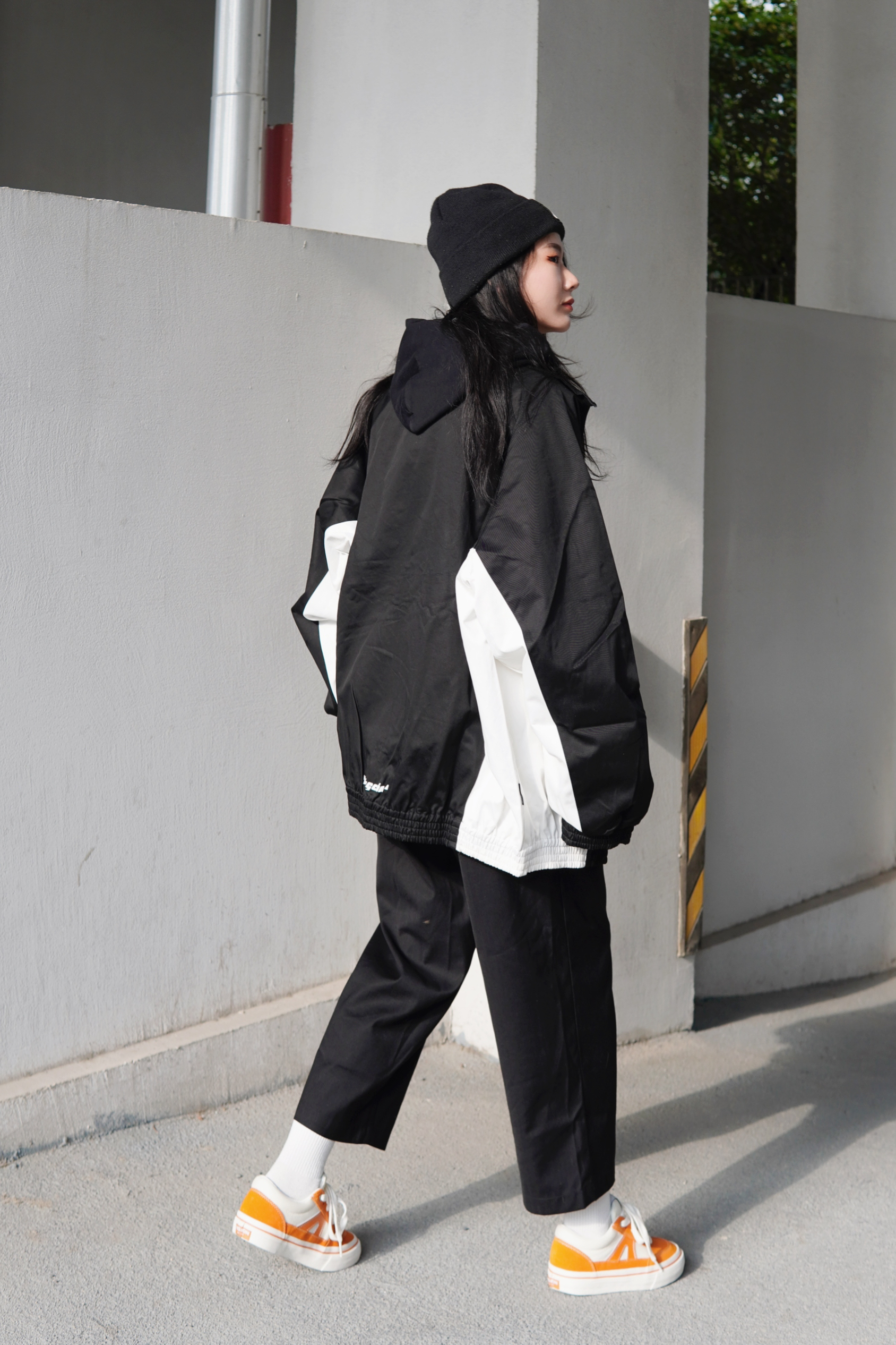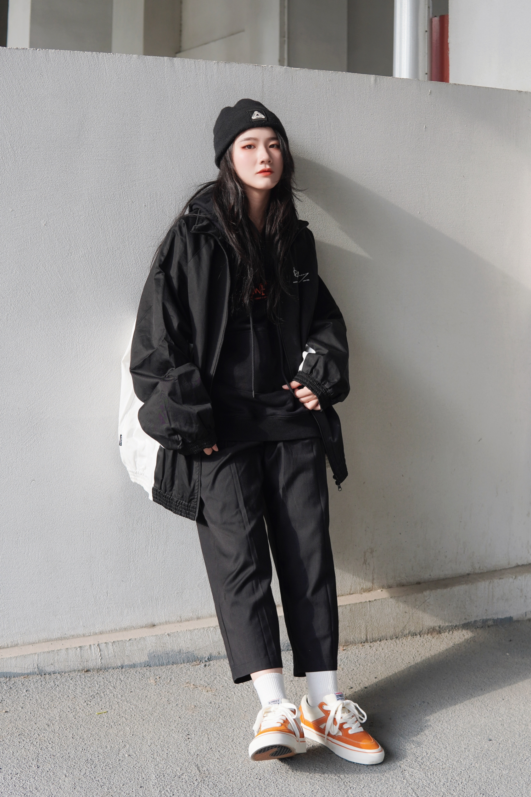 Hello 宝子们👏🏻 这里是穿搭百变的170高个子梨形女孩苏苏👧 黑白撞色夹克真的是我秋冬最爱 防风夹克就是随时出门都很好穿 随便搭配就很好看的单品👍 连帽卫衣➕翻领外套也是我很爱的穿法 看起来层次感很好而且也很保暖 搭配九分西装裤就很🆒 鞋子我选择了比较亮眼的橙色滑板鞋 橙白配色也很吸睛 可以直接点亮整套Look✨ 最后加一个黑色的针织帽 虽然一身黑 但是处处有撞色 完全不会单调的超🆒搭配...