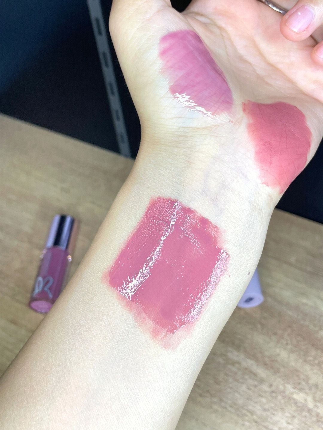 今年流行的灰粉色真的很爱!|||黑兔的唇蜜➕唇泥 这两个颜色搭配好美! 唇泥单涂就很美了 叠涂一层唇蜜 整个嘴巴都肉嘟嘟滴