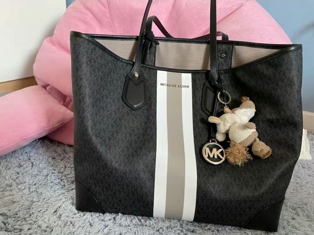 这个是火了很久的爆款啦,MK eva系列黑白条纹文艺气质托特包! 外观颜值 真的很好看呀,超级文艺复古范,还赠送一个小包包,本质上是一个子母包,真的太超值啦! 实物质感 牛皮材质很柔软很有质感,摸起来很舒服,应该挺耐用耐磨的,很不错。 搭配建议 非常百搭,各个场合都适用,每个季节都OK,无论是学生党还是上班族都很合适的一款包包。