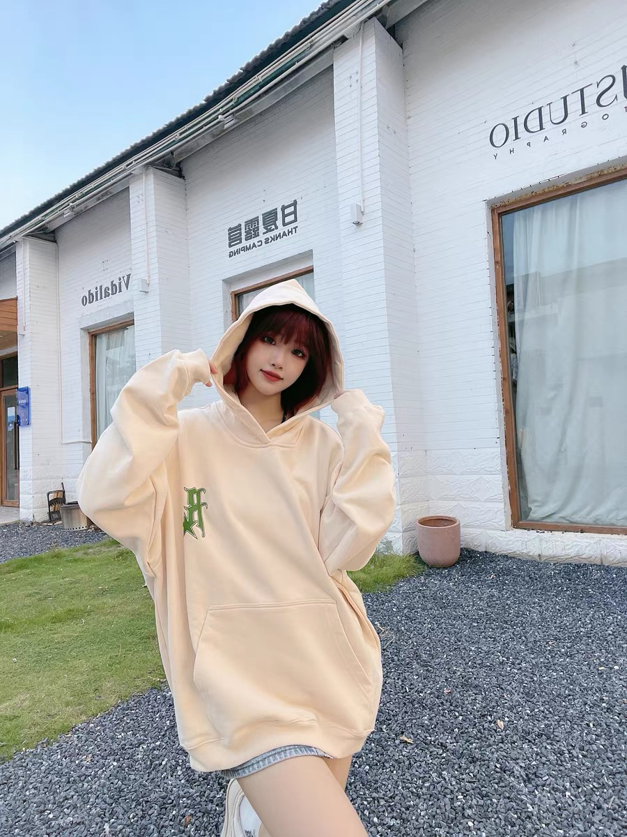 这款连帽卫衣质量出奇的好,手感好也暖和,比其 他卫衣厚实。 胸前的绿色刺绣1ogo非常独特好看,主要就是这 个设计吸引我,连帽卫衣秋天刮风也不怕啦。 平时下半身喜欢穿超短裤玩下半身消失,活泼个性又可爱。 图源于网络