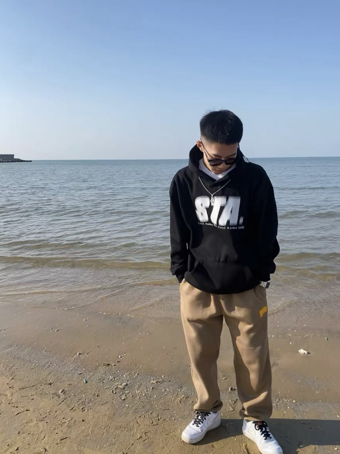 5G入秋大地色清爽干净的一套男女都爱~ 日常生活通勤同色系穿搭. 上衣黑色幻影卫衣 裤子选择棕色束脚裤 休闲又带点运动感 利用棕色点缀整体配色,早八人三色法则~细节同色不可少鞋子跟袜子。干净又舒适当🧩 这套是之前一直都没尝试过的轻熟风,入冬大地色穿搭回整体以纯色系为主视觉清爽.发现黑皮运动男孩穿也很合适休闲运动又有点韩 这样搭配干净又好看推荐你也来试试! 图源自网络侵删