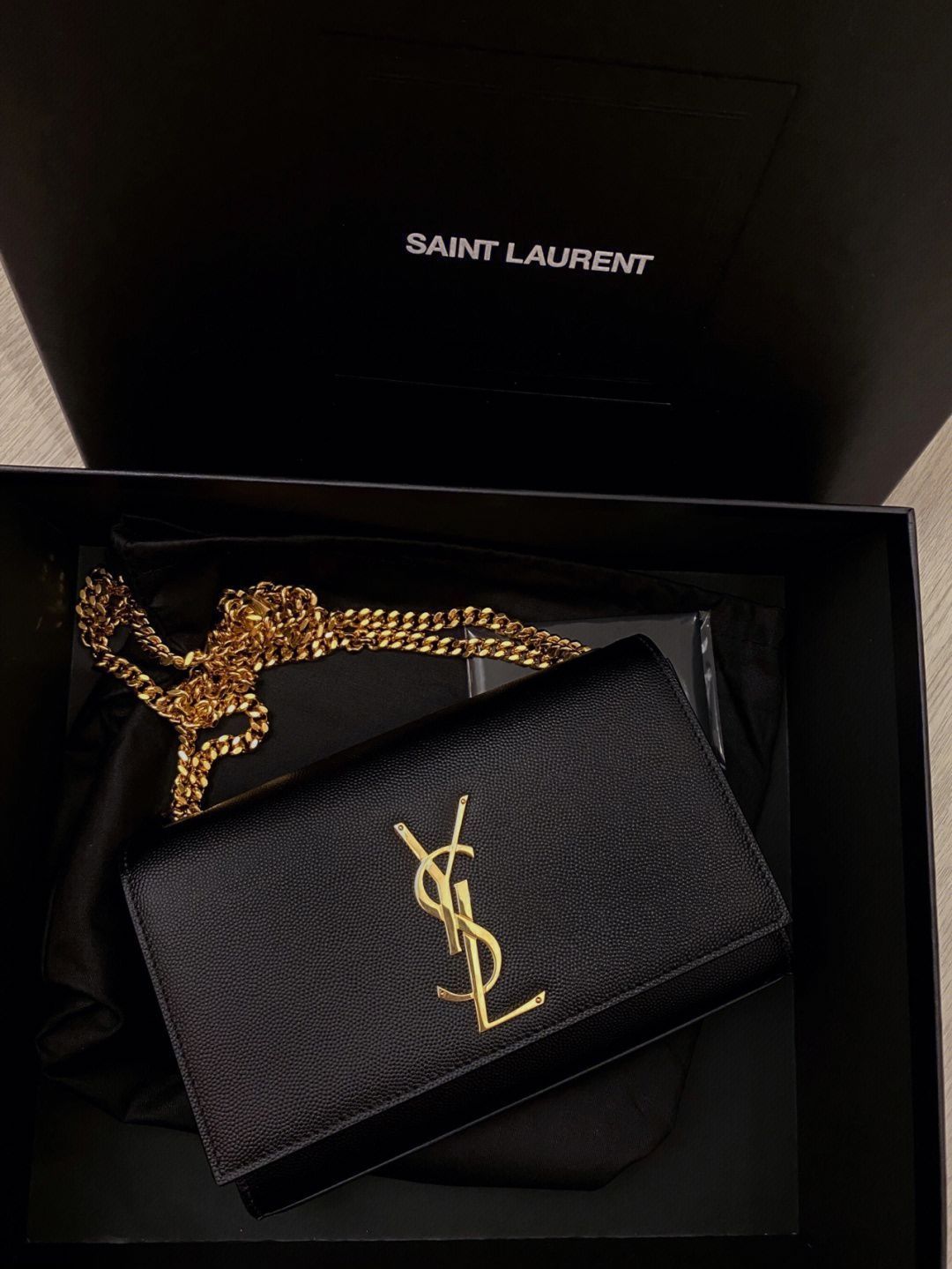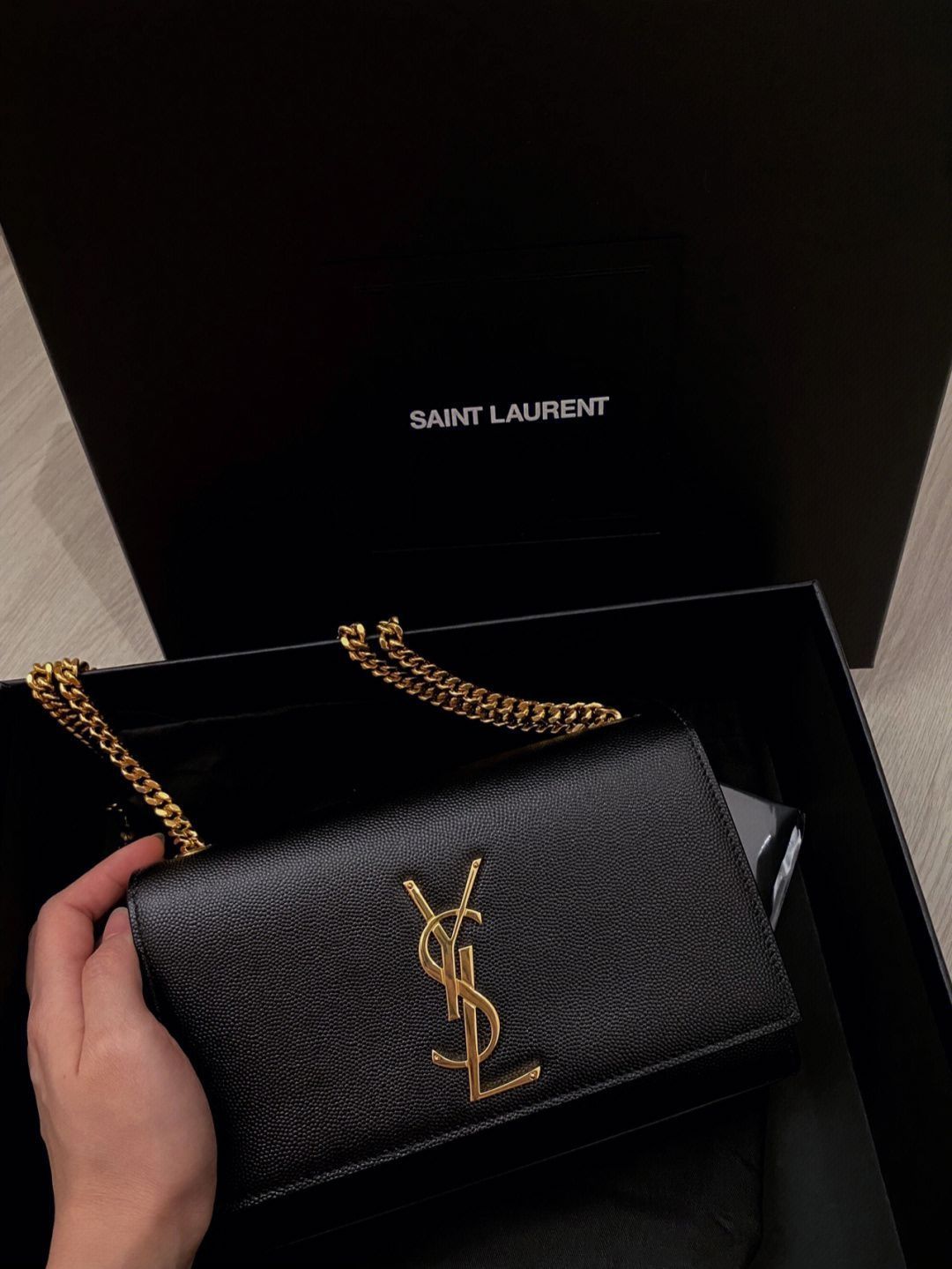 本篇笔记关联了【金晨同款】YSL/圣罗兰 Kate 小号 Logo亮面粒面压印牛皮革链条单肩斜挎包 黑色-金色链条等商品,为用户提供真实的使用体验和购买参考。