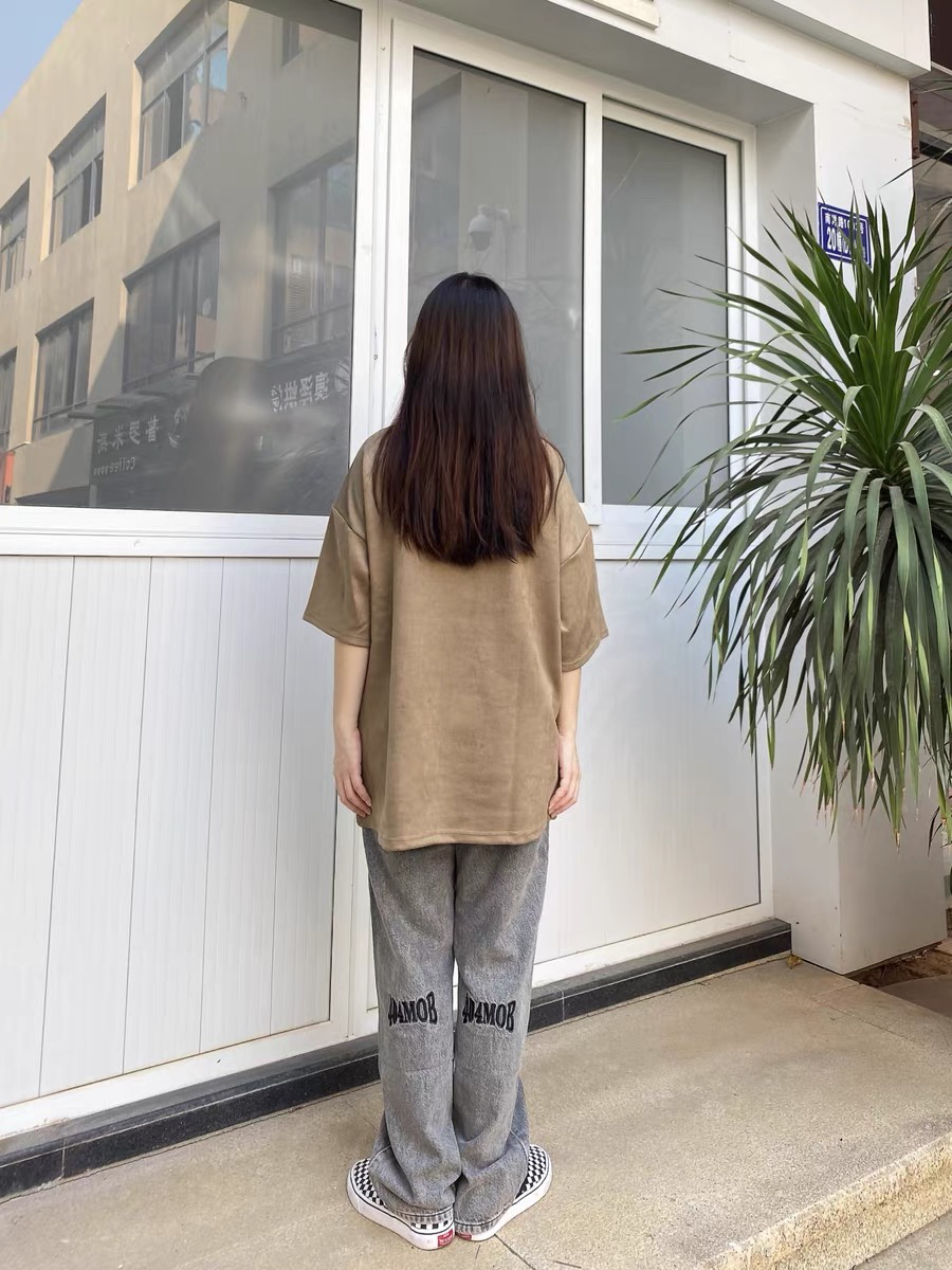 🌺版型风格:我非常喜欢。 🌸身高体重:我身高155体重90 穿起来量然长长的,但是要的就是这个感觉。 🌼穿搭设计:烟灰色布料穿着很舒服,完美遮肉,搭配着小白鞋,简直是学生党的最爱,休闲又简约,酷酷的好看。