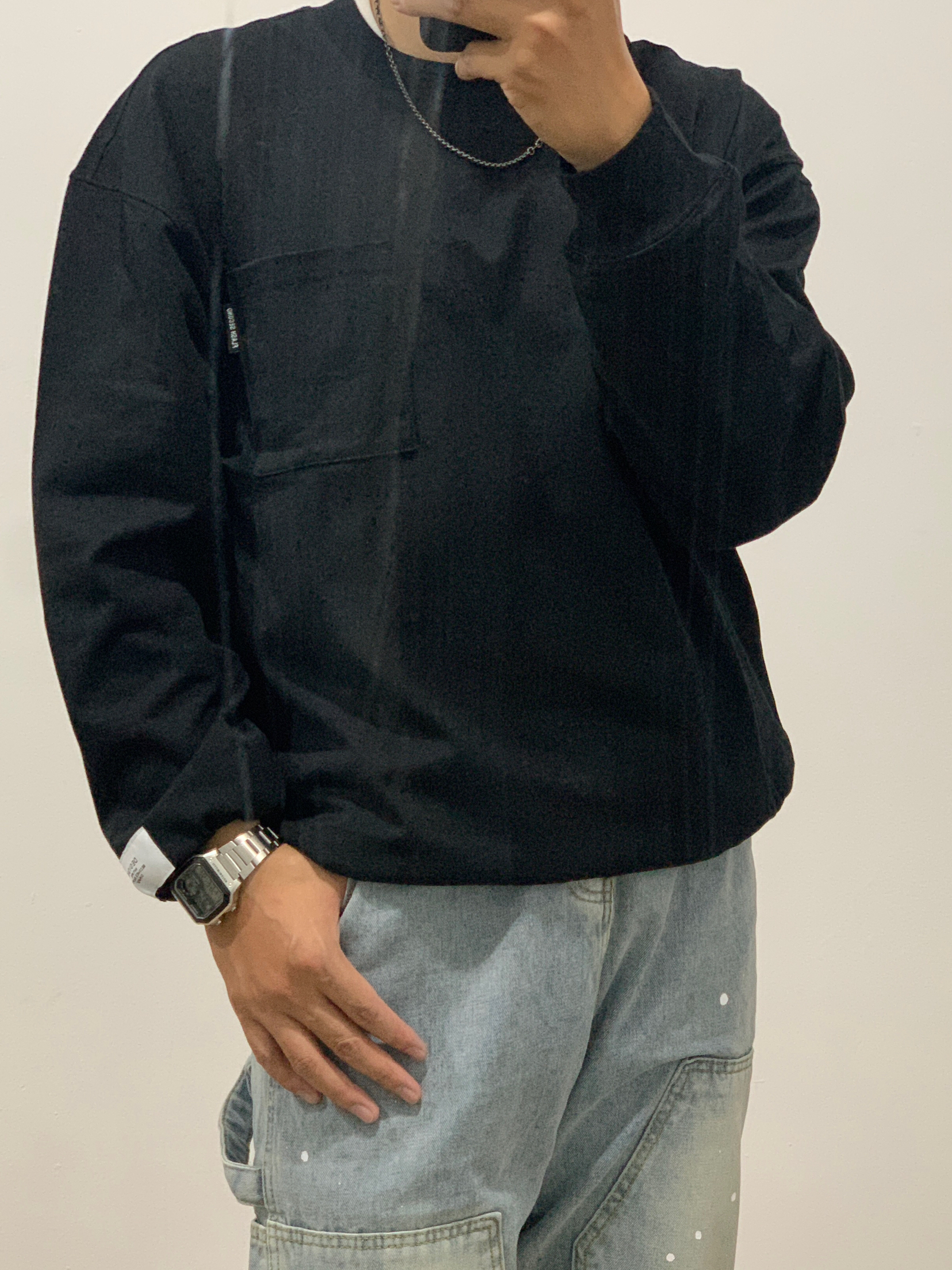 水洗黑长袖 泼墨浅色牛仔 nb410 今日份穿搭打卡,滴~~~