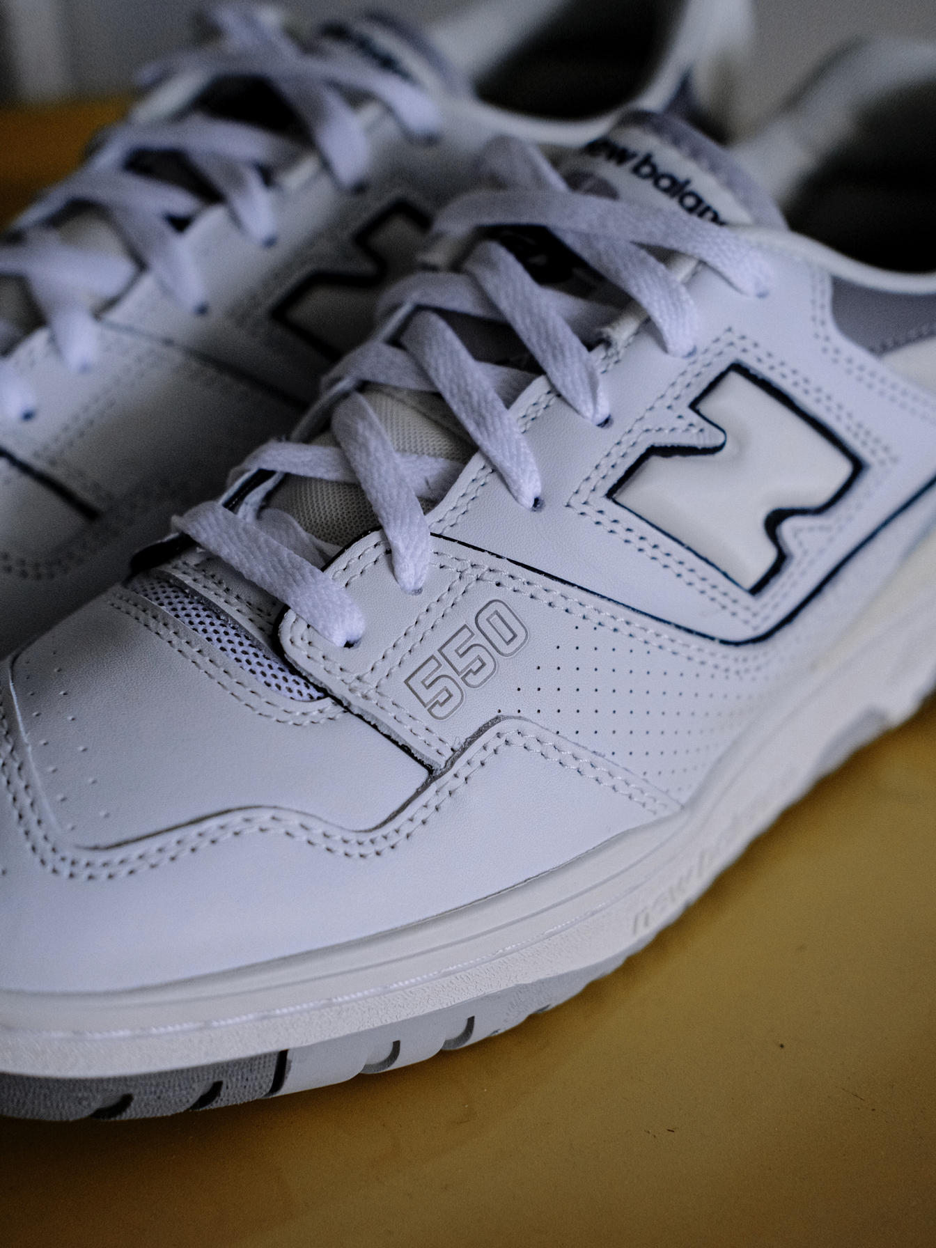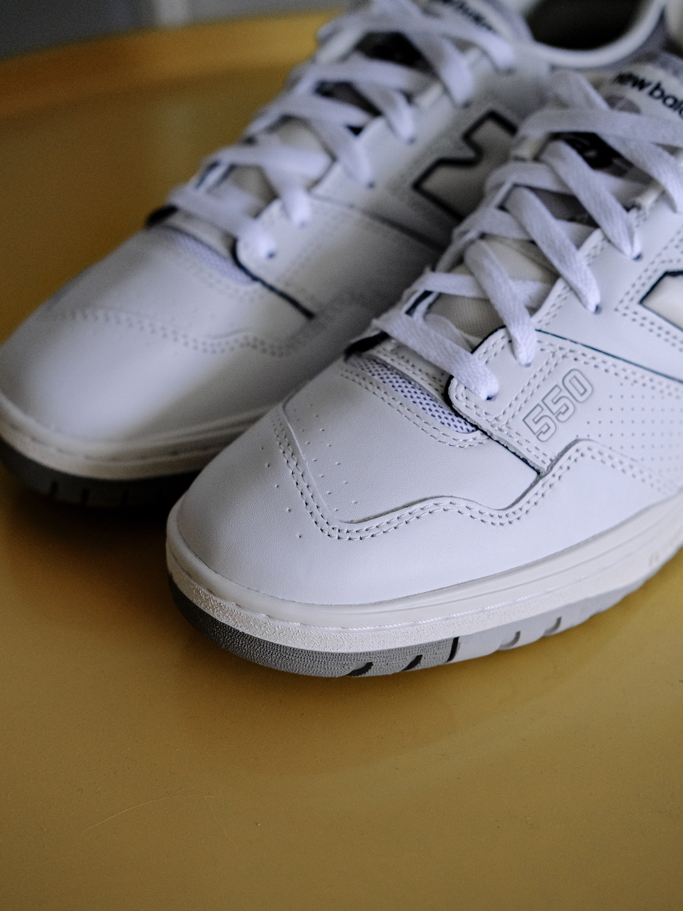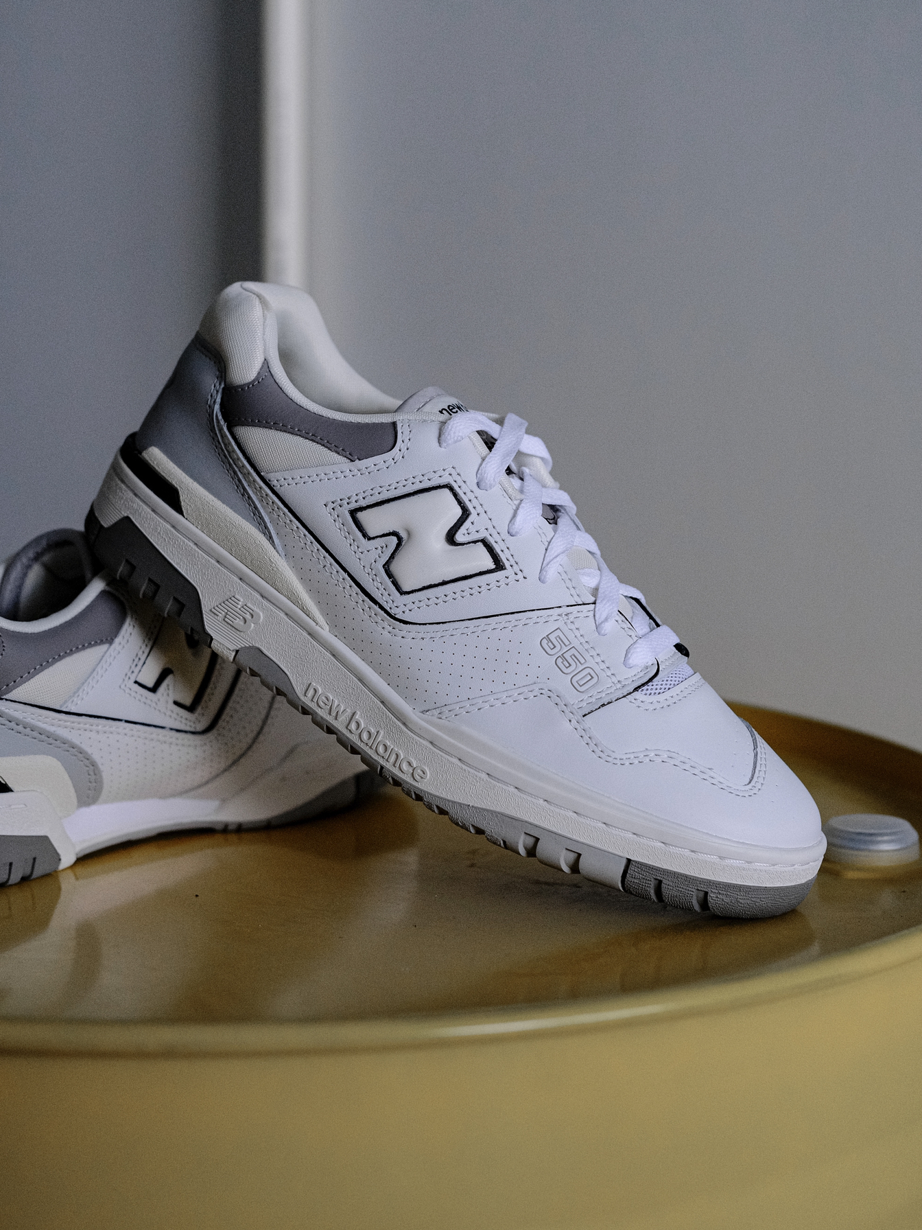 哟!wassup!大家好!今天分享一双秋季宝藏好鞋,就是这双来自New Balance的复古风格篮球鞋NB550的白灰配色。 该鞋款在配色方面还是相当低调的,大面积白色为主调,利用深浅灰色外加勾勒在鞋身的黑色线条丰富层次感,既不会过于低调,还不失细节,颜值和搭配性都令我非常满意! 皮质方面还是非常经典的牛皮革+织物拼接,质感和易打理程度都还很不错,而且高级感十足!这双NB550真的爱了!兄...