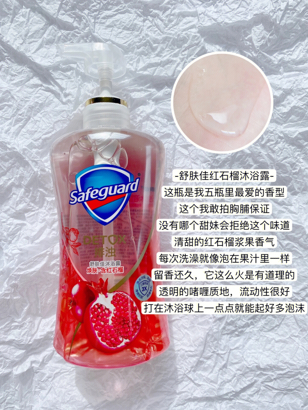 本篇笔记关联了【啫喱型】舒肤佳 净透沐浴露 果酸嫩肤清洁毛孔持久留香 红石榴、【啫喱型】舒肤佳 净透沐浴露 果酸嫩肤清洁毛孔持久留香 纯白清香、【啫喱型】舒肤佳 净透沐浴露 果酸嫩肤清洁毛孔持久留香 山茶花等商品,为用户提供真实的使用体验和购买参考。