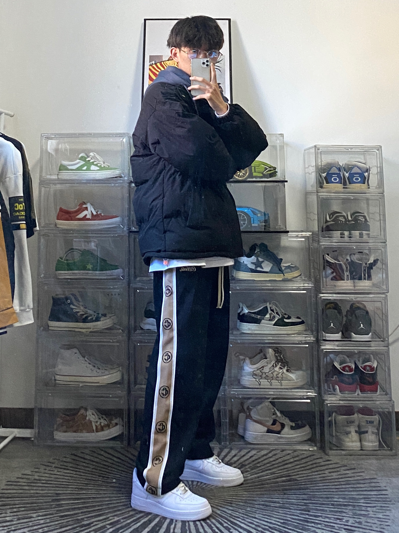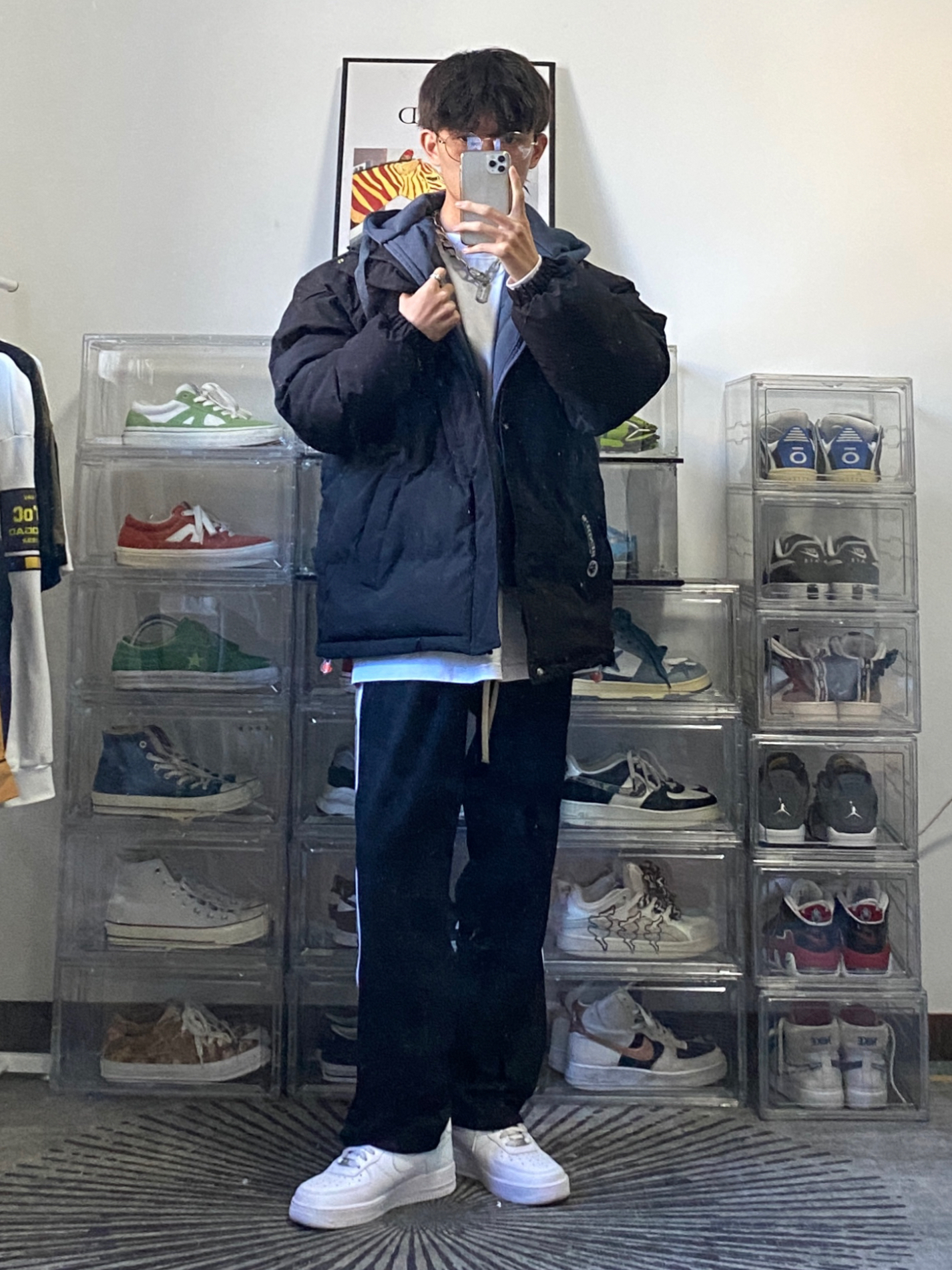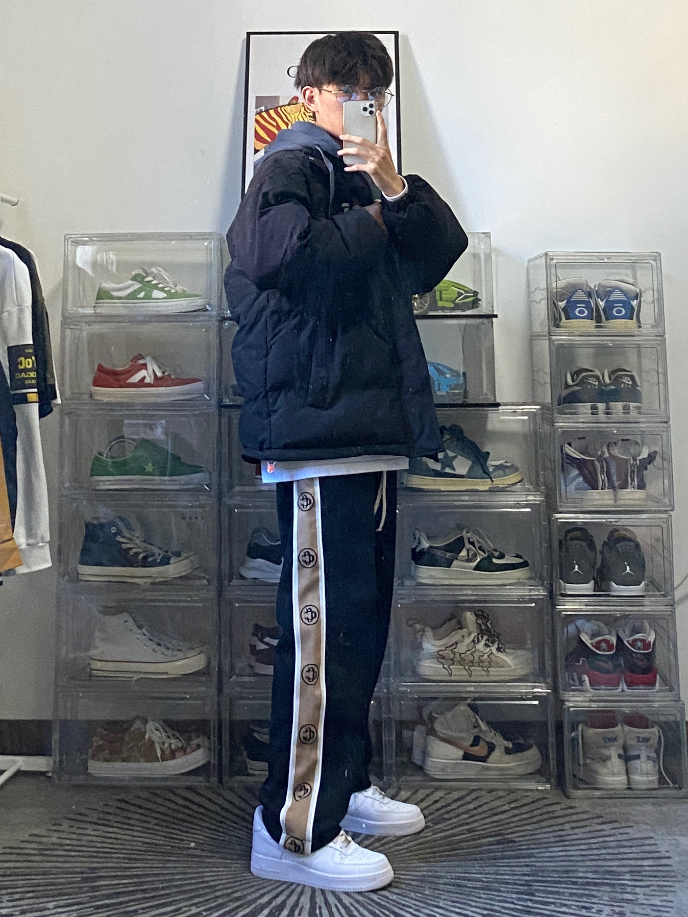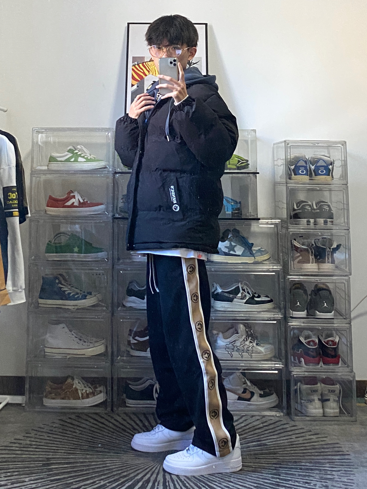 今日份的穿搭分享来啦🎉 最近这种有点冷但是还能接受的天气我还想叠穿怎么办❓ 来看看今天上身的这件棉服吧 这件BENDL’S家的假两件连帽棉服用料真的非常扎实 叠扣门襟设计更加保暖更加耐寒双拉链的设计也营造视觉效果无论是潮流还是实用性两者都能get💯 下身裤子我搭配了一条可口可乐的黑色长裤 侧边条纹拼接刺绣视觉上看起来更显腿长 微微在鞋子上有点堆积的感觉真的绝了✔️ 今天上脚的鞋子是火了两个年代的空...