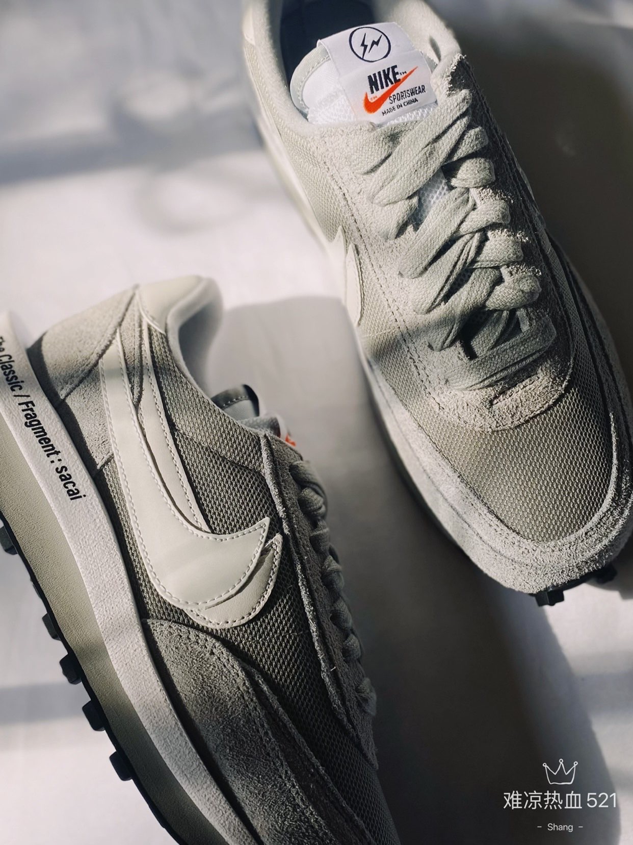 👟球鞋名称: Fragment Design × sacai × Nike LDWaffle 灰白 💥设计细节: LDWaffle鞋型是融合了Waffle和LDV两款Nike经典复古球鞋设计而成的,在这双鞋上还是保持了sacai联名的初代设计风格,把解构主义用到了极致。双swoosh、双鞋舌、双中底、双鞋带都彰显了sacai解构语言,同时这款鞋子融合了藤原浩极简的设计风格,采用烟灰色色调,搭配了翻...