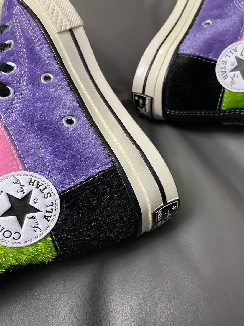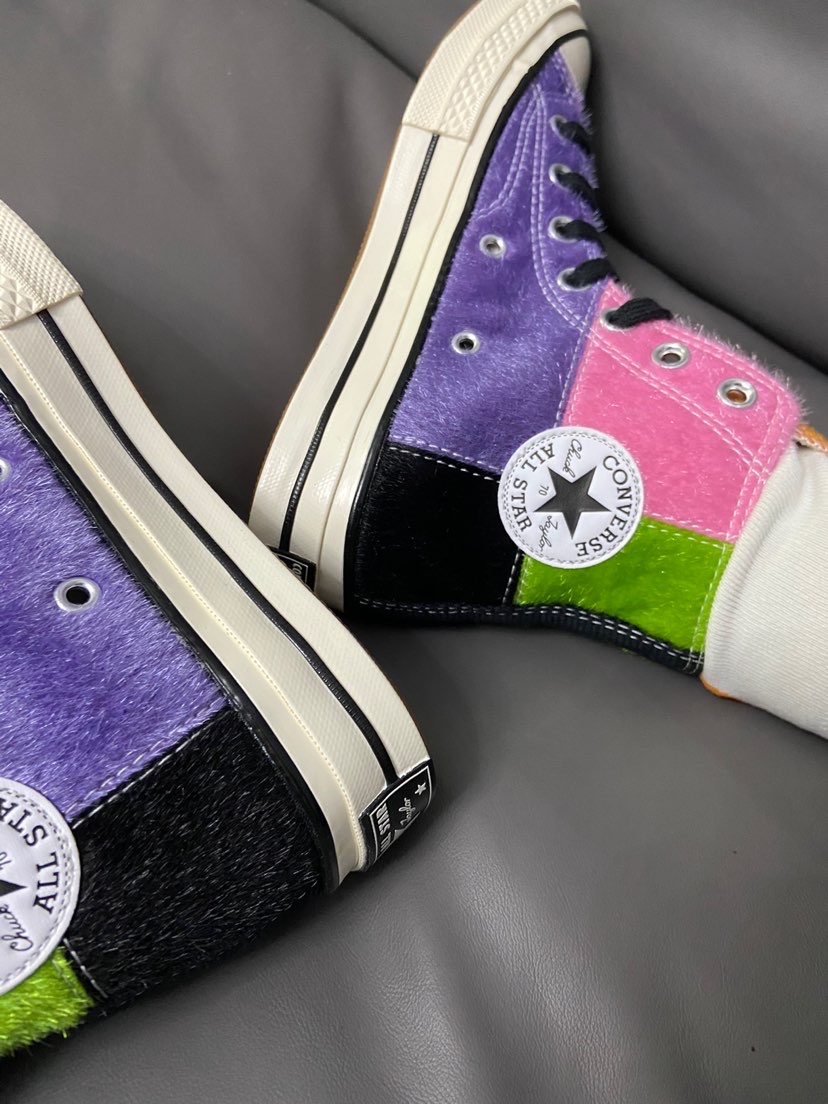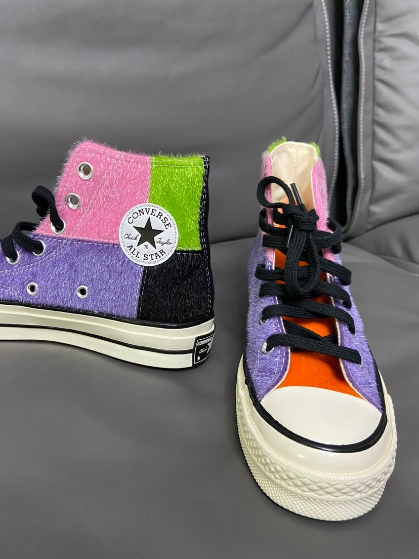 这个材质真的爱了 ✨ 比一般的匡威材质好太多了 鞋身全部采用海马毛拼接 五种颜色拼接撞色 粉紫橙绿黑 秋冬穿搭配衣服炒鸡靓眼哦 #这双鞋让我心动拉满 #心动女鞋穿搭合集