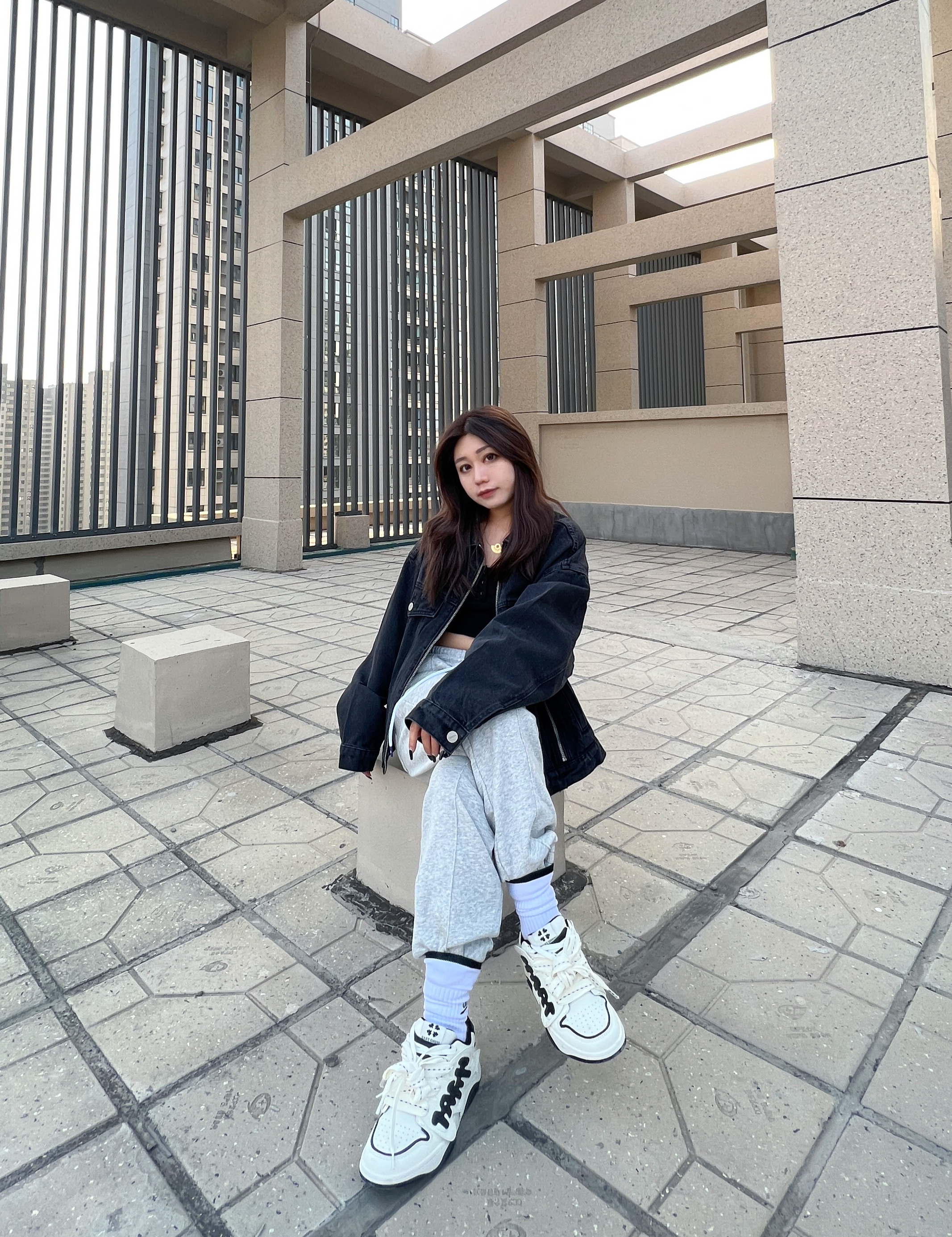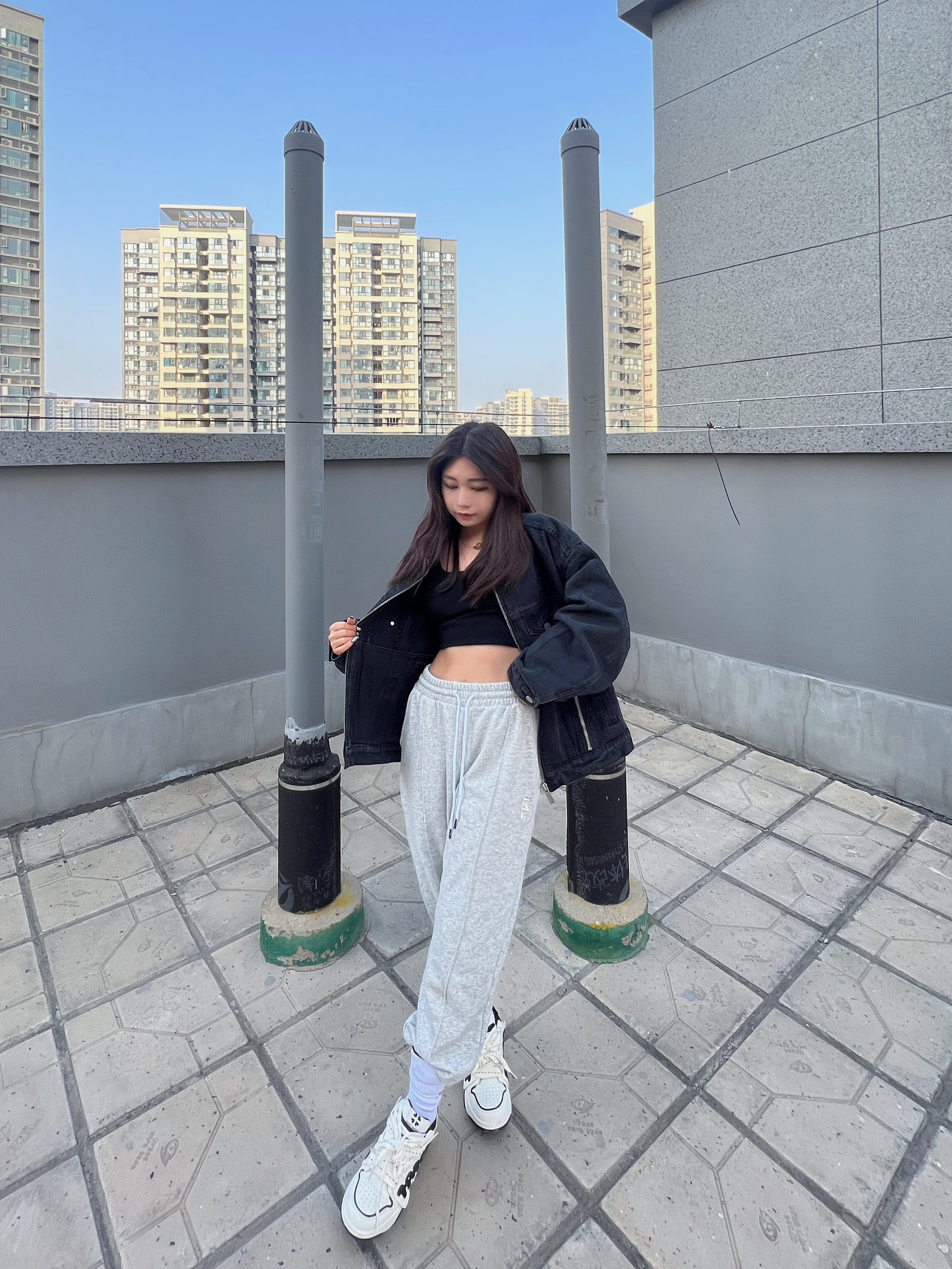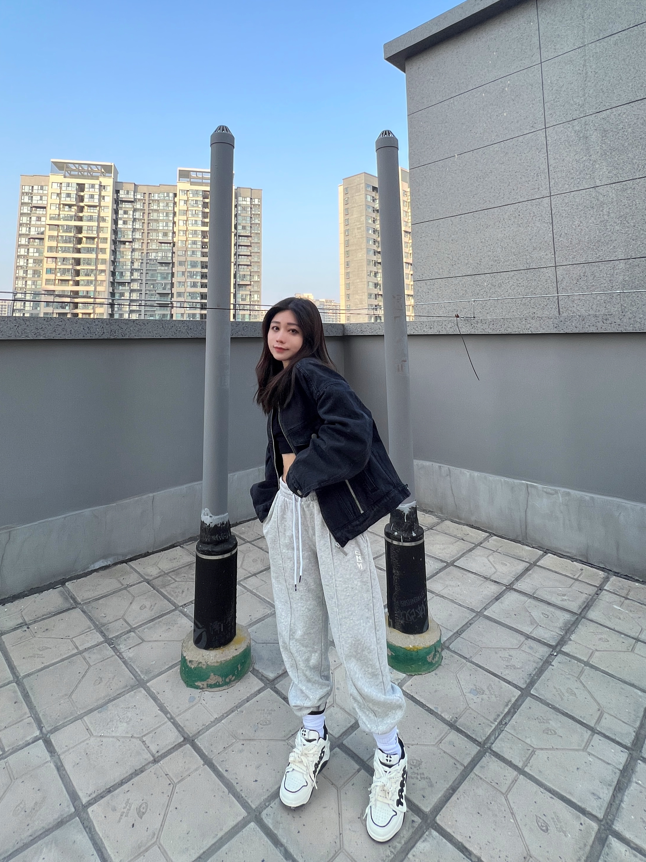 🌟没错!是你们的婷哥没错啦~ 嗨 bb们~到了秋冬就超级喜欢穿这种宽松又休闲的衣服 卫裤不止和卫衣穿搭,今天搭配了潮酷的牛仔拉链外套,黑牛仔我就很爱啦,搭配背心穿又辣又酷呢! 简约的穿搭我会选择一双百搭的球鞋👟叛逆者黑白配 秋冬的穿搭不用太繁琐哦!